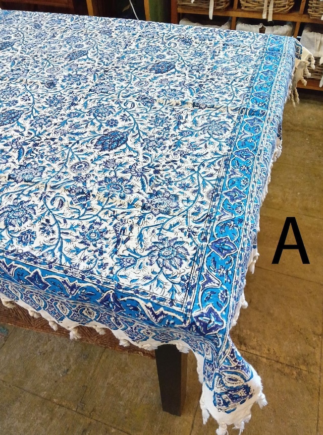 テーブルクロス ホワイト ブロックプリント インド綿 シーチング 手仕事 白 顔料 ワントーン ナチュラル 上品 爽やか マルチカバー エスニック アジアン 北欧 ボタニカル ペイズリー ブーティ インテリア