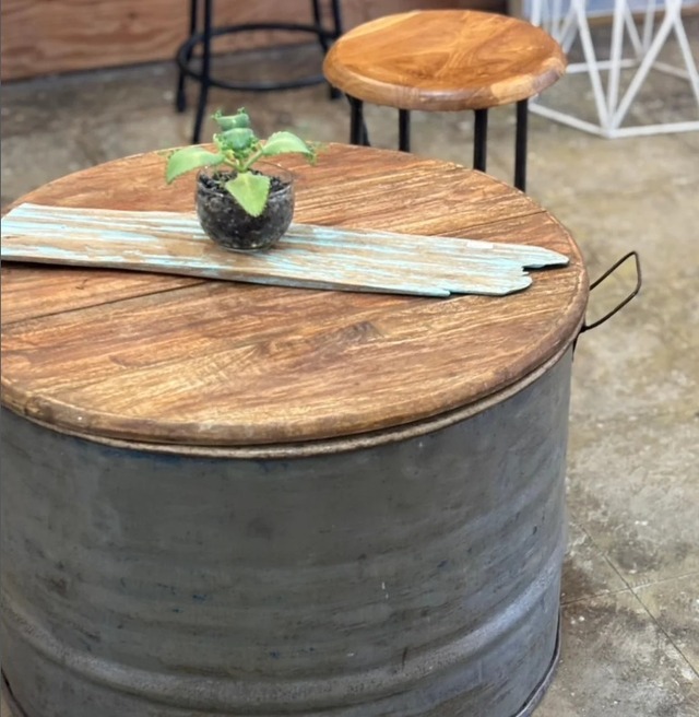 ドラム缶 リサイクルテーブル 60cm径|大容量収納 アイアン センターテーブル 無骨 工業系