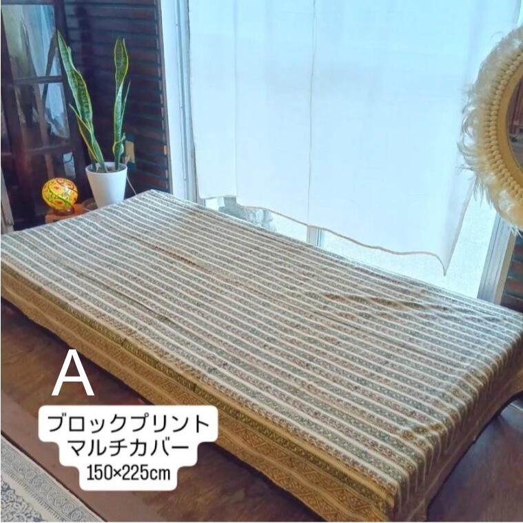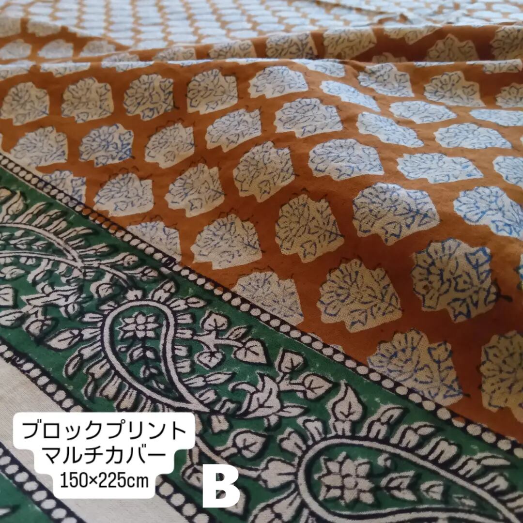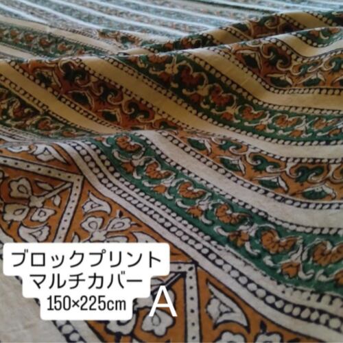 マルチカバー ベッドカバー ソファーカバー150 225cm インド綿 コットン100% カラムカリ ハンドプリント 木版 天然染料 草木染め