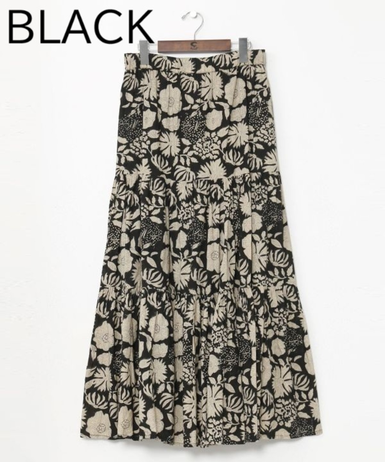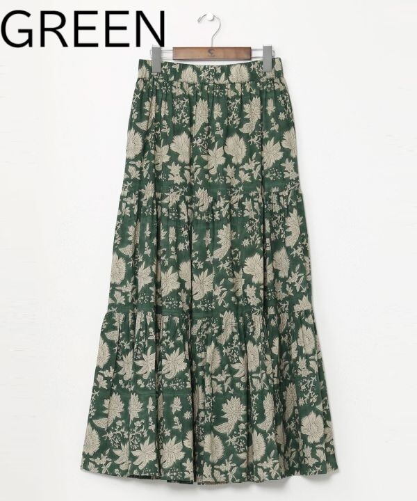 繊細なブロックプリントが目を引く、インド綿のティアードスカート。