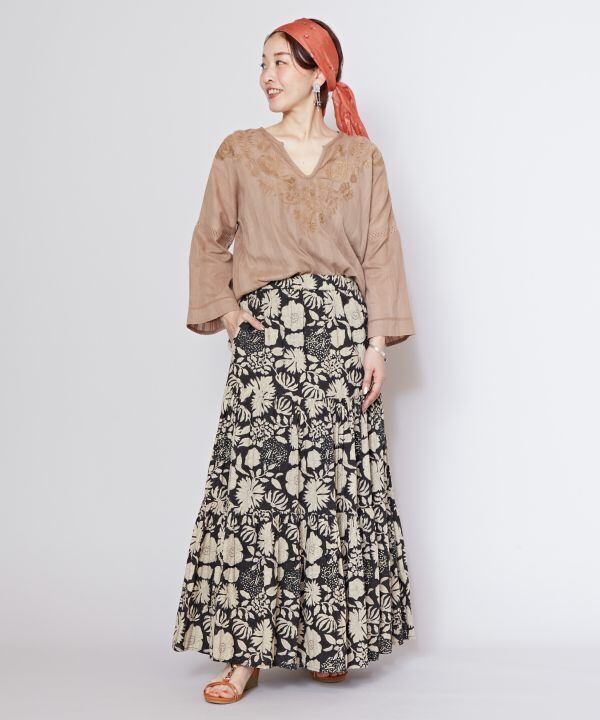 エスニックな雰囲気ながらも、様々なトップスと合わせやすいデザインです。