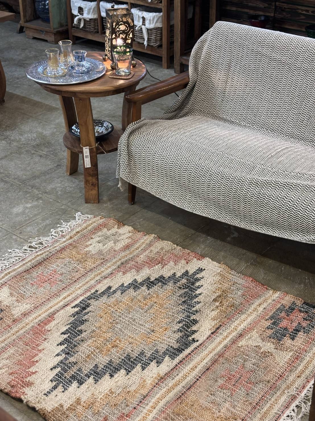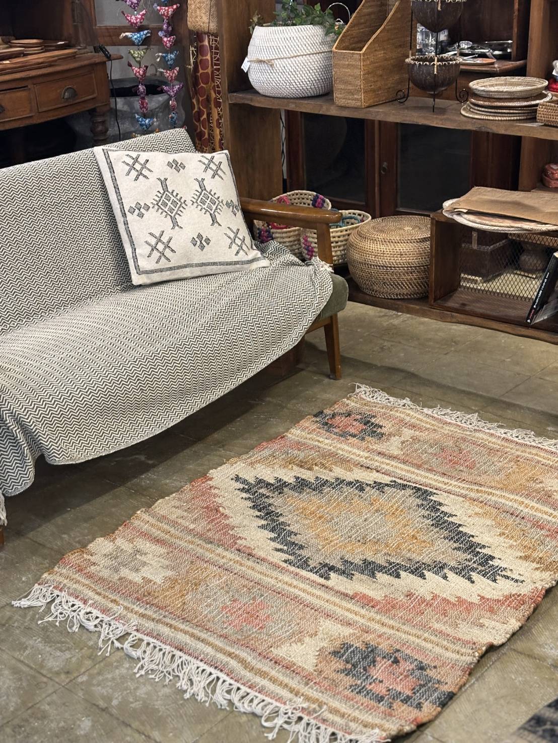 ジュートとコットンの天然素材で織り上げた、インドキリム。