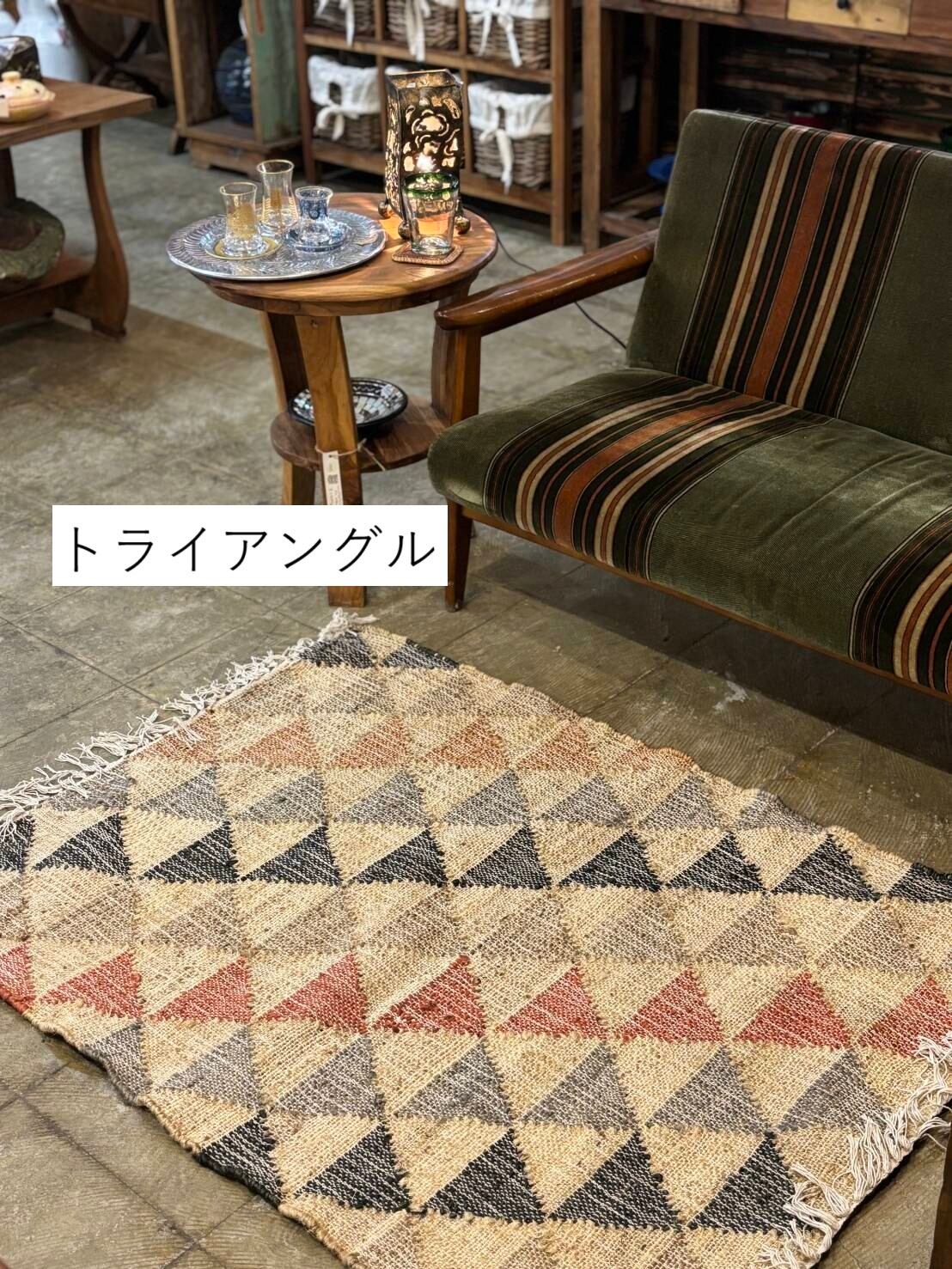キリム ラグ マット ジュート コットン インド製 手織り 通気性 エスニック トライアングル オルテガ インテリア 室内 屋外 玄関