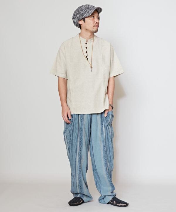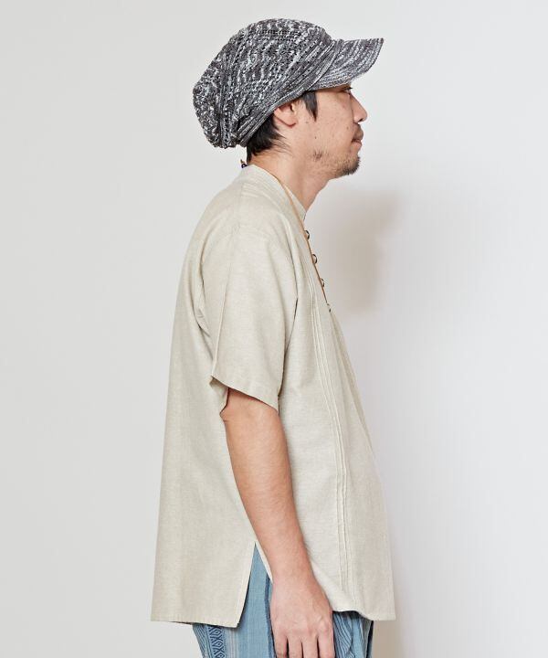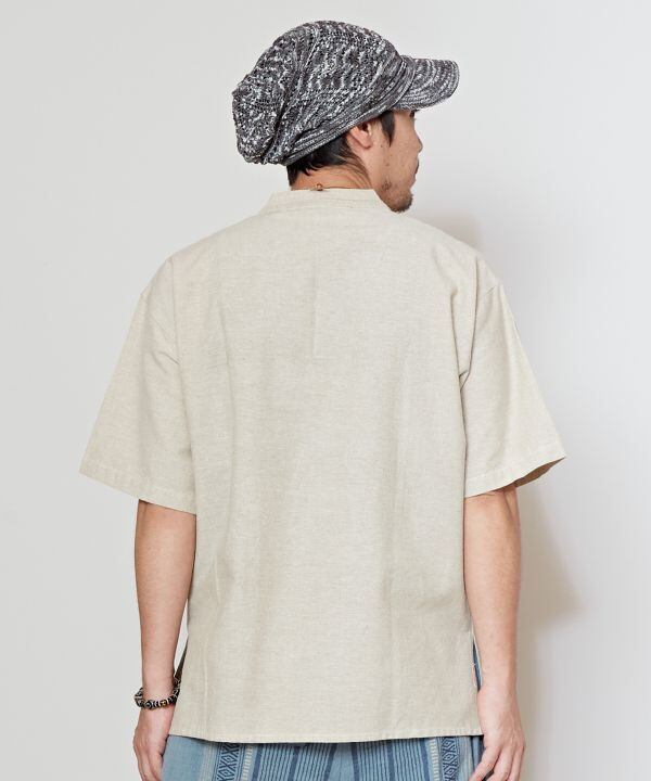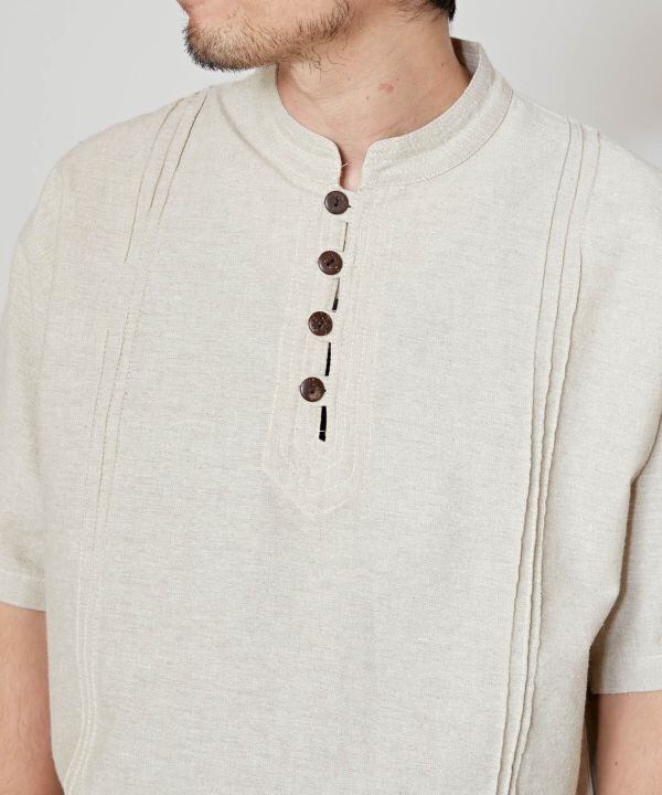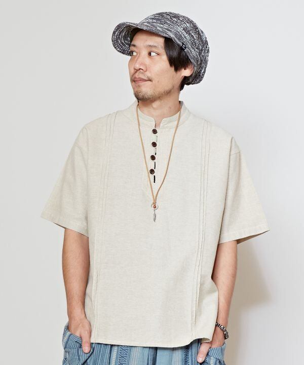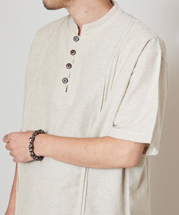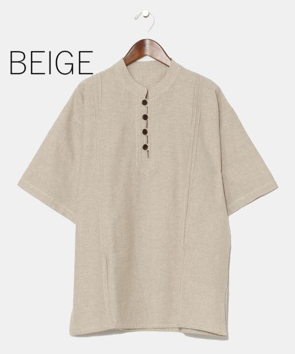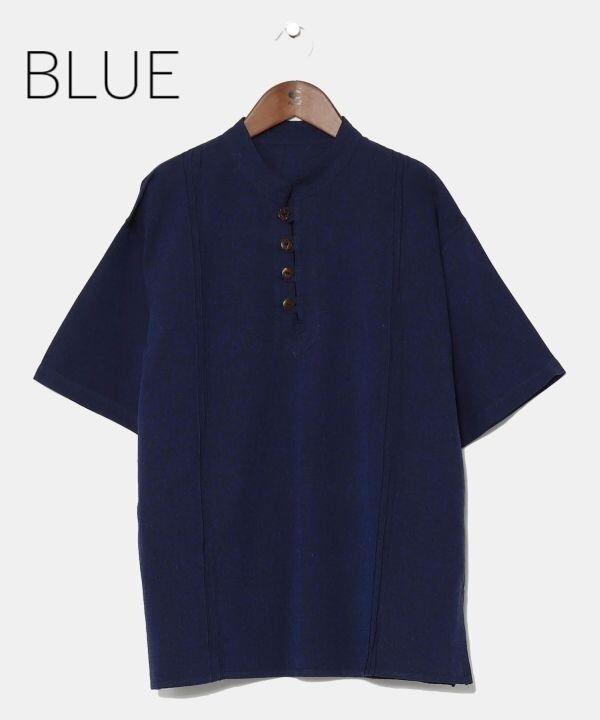 トップス メンズ ネパールコットン スタンドカラー くるたシャツ 無地 半袖 エスニック アジアン リラックス カジュアル 通気性 Mサイズ インド