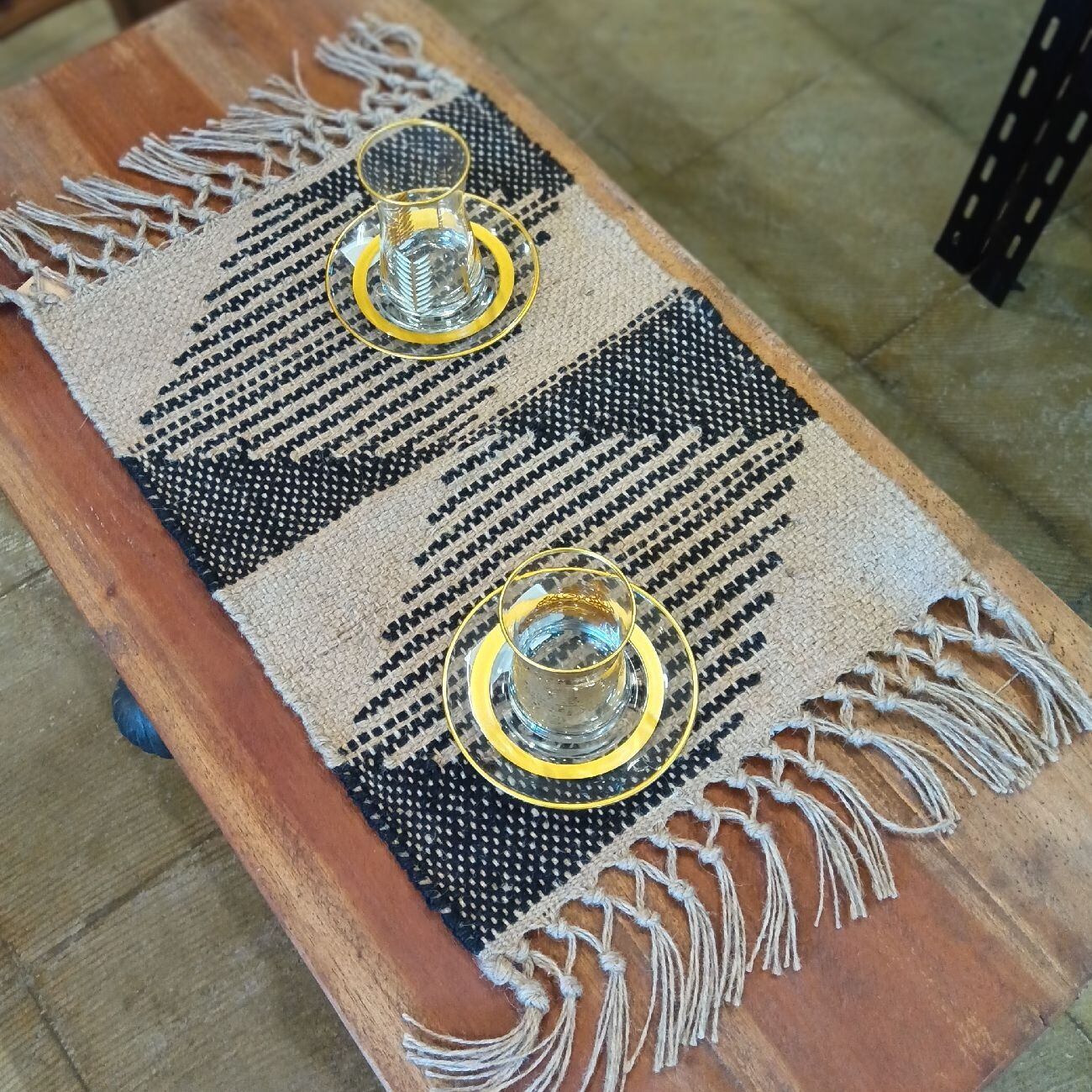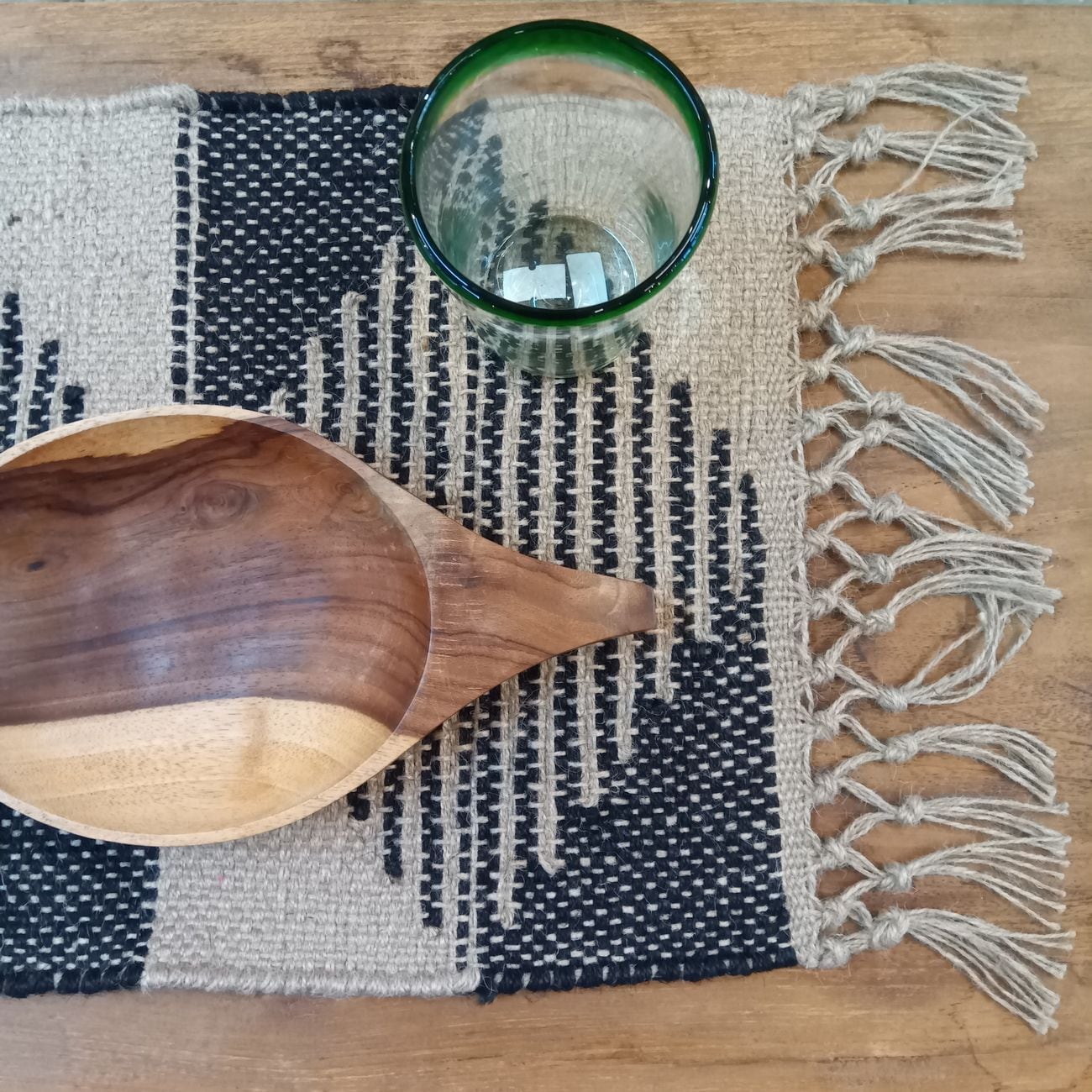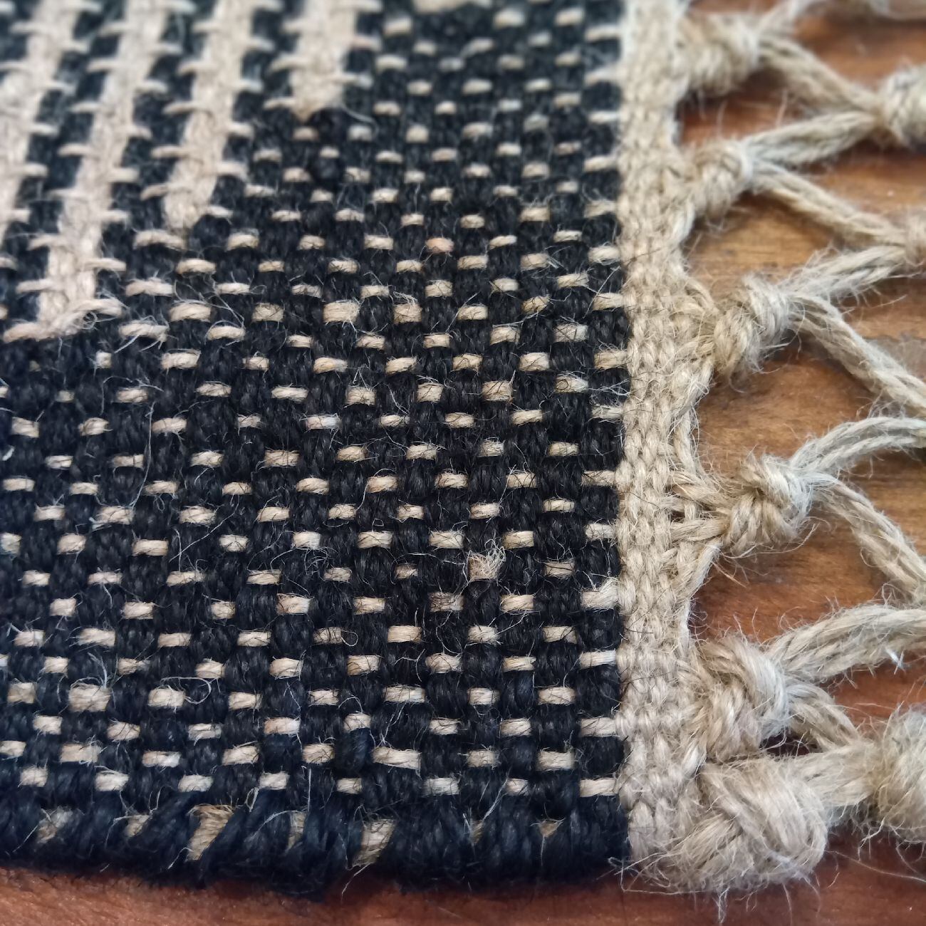 プレイスマット ランチョンマット ジュート ヘンプ 天然素材 手織り ブラック フリンジ 幾何学模様 エスニック モダン アジアン 北欧 インテリア テーブルマット おしゃれ ギフト プレゼント