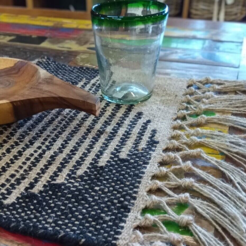 ジュートとヘンプを丁寧に手織りした、フリンジ付きのプレイスマットです。