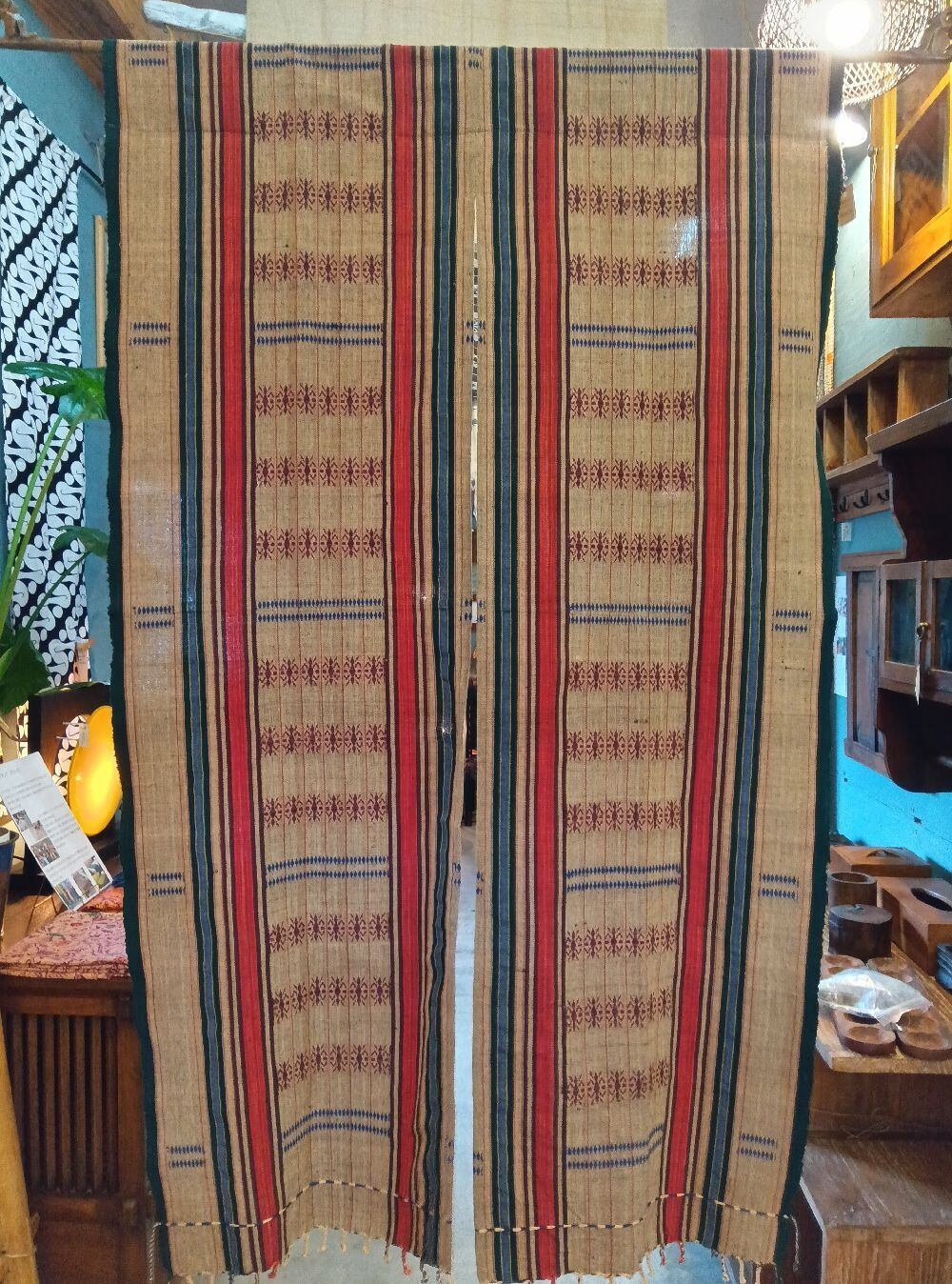 タイのナガ族の民族布で作られた、存在感のあるのれんです。