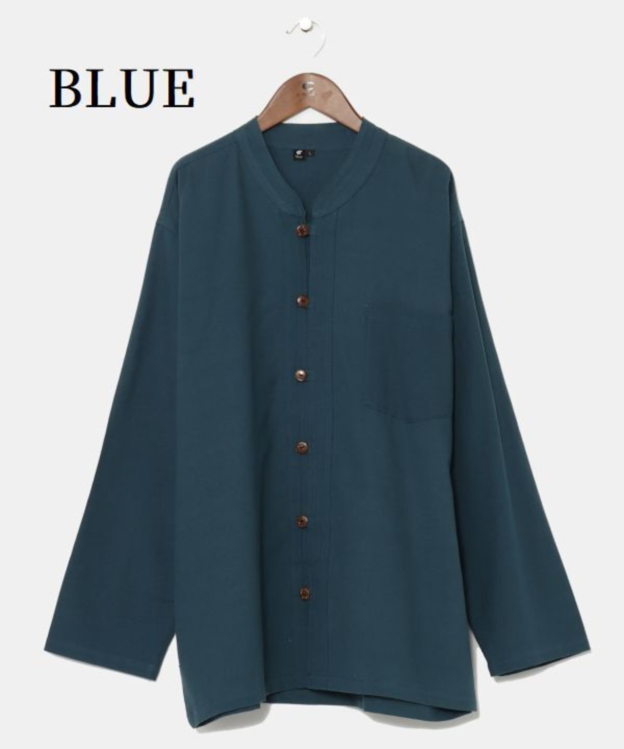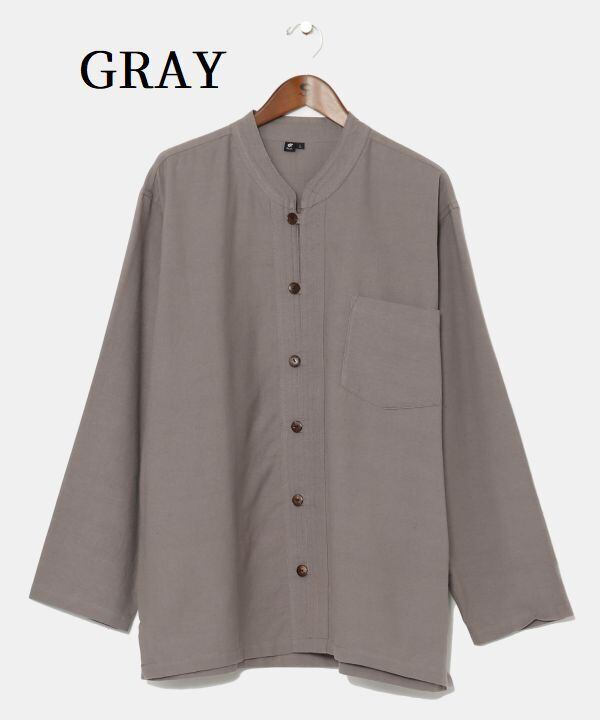 ジャケット メンズシャツ スタンドカラーシャツ バンドカラー コットン ネパール カジュアル 無地 シンプル ナチュラル ベーシック ゆったり ビッグシルエット 春夏秋冬 オールシーズン