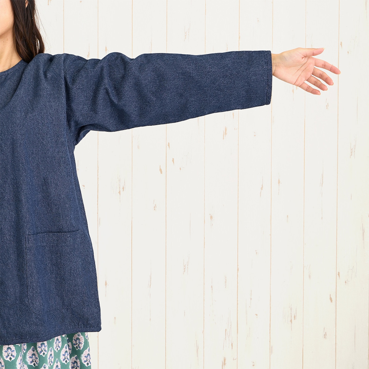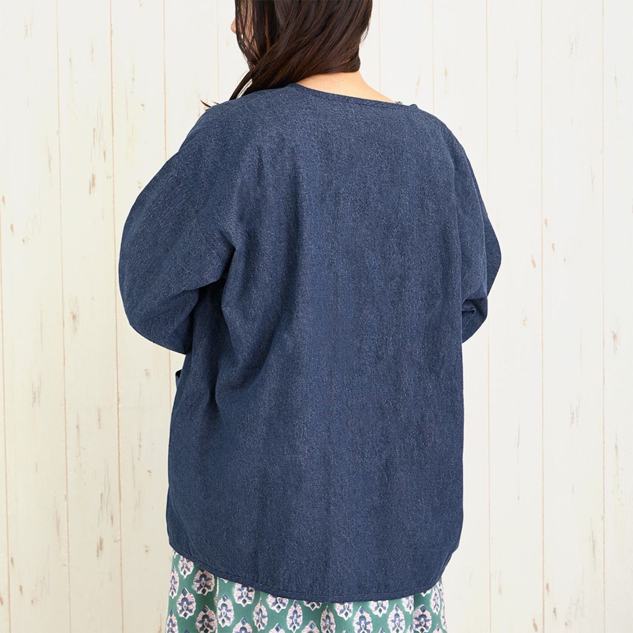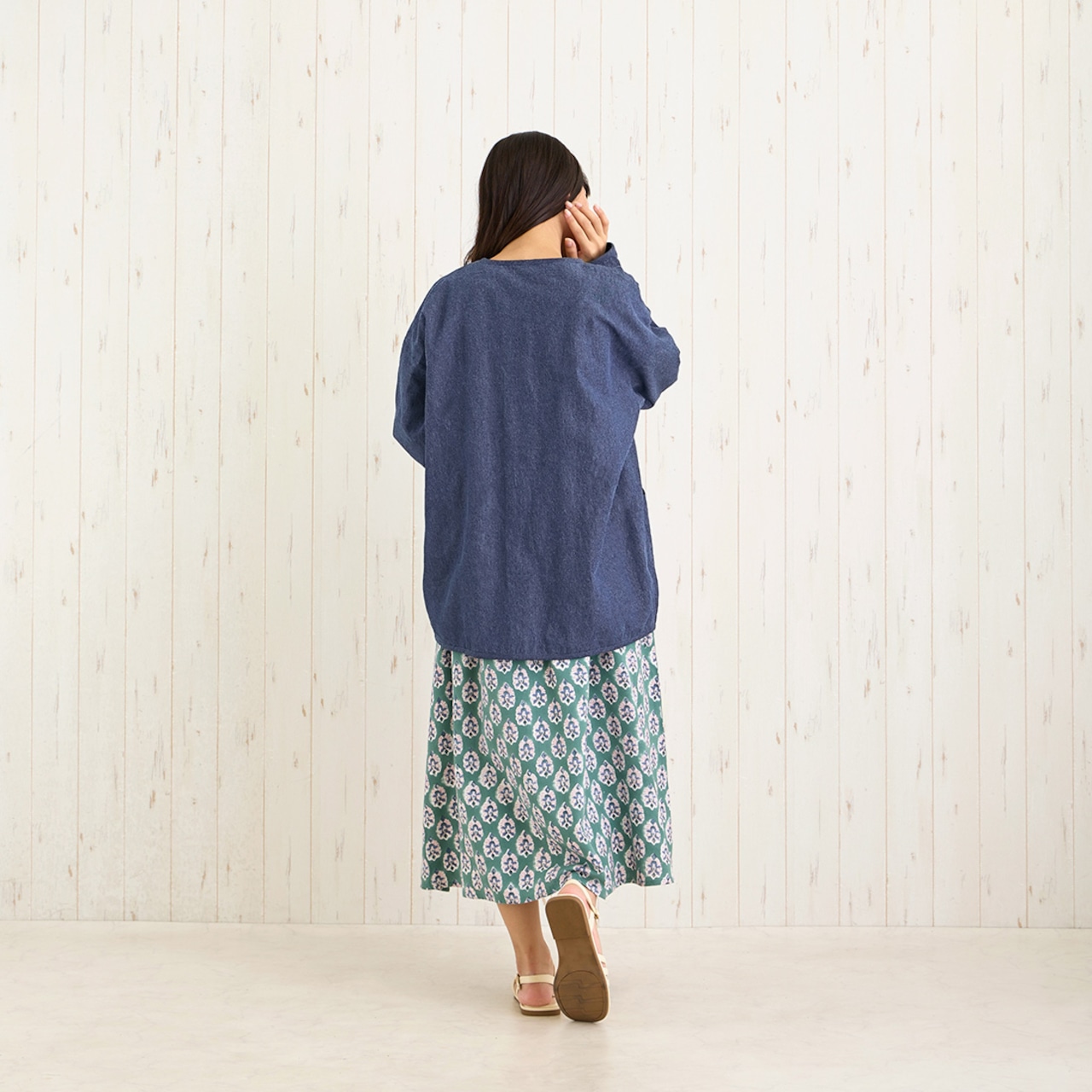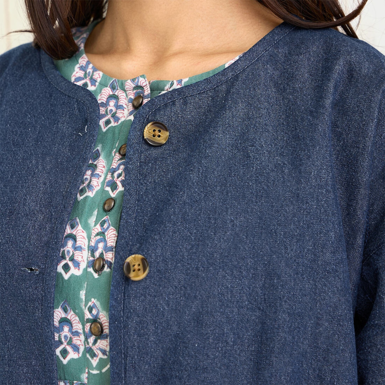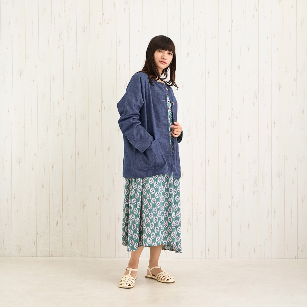 デニムジャケット コットン リラックス ゆったり ナチュラル カジュアル 羽織り 綿100% 裏地付き デニム インド 職人技 繊細 ブロックプリント 7.75oz コットンレーヨン