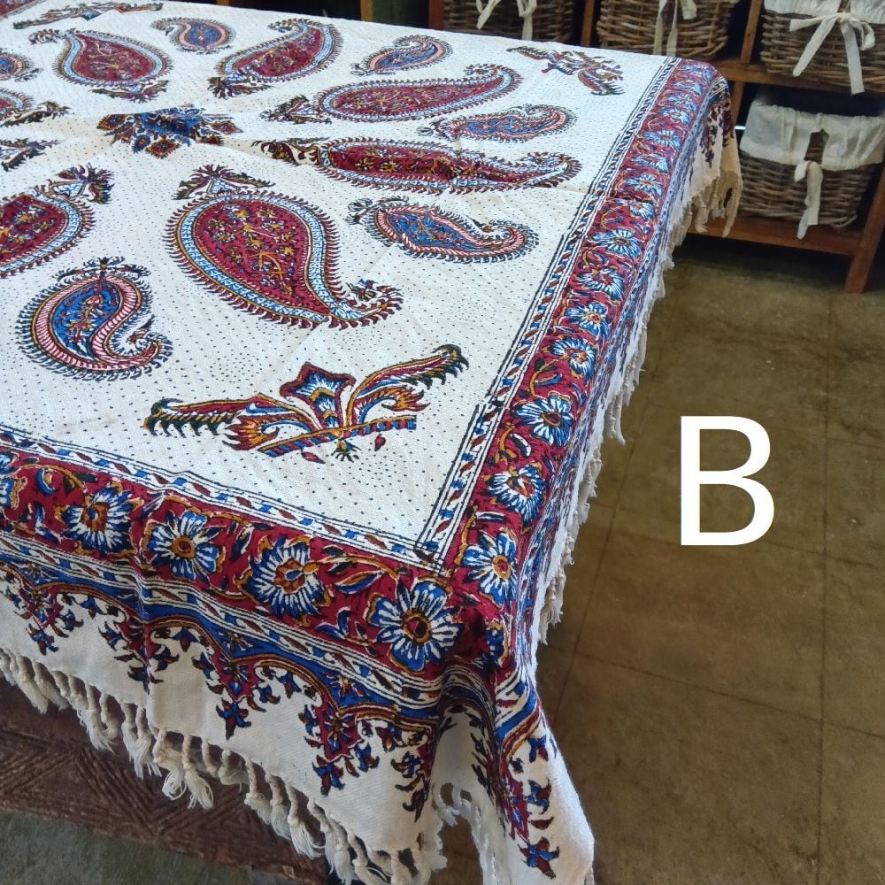 イスファハンの職人が木版を使ってひとつひとつ丁寧に染め上げた「ペルシャ更紗」のテーブルクロス。