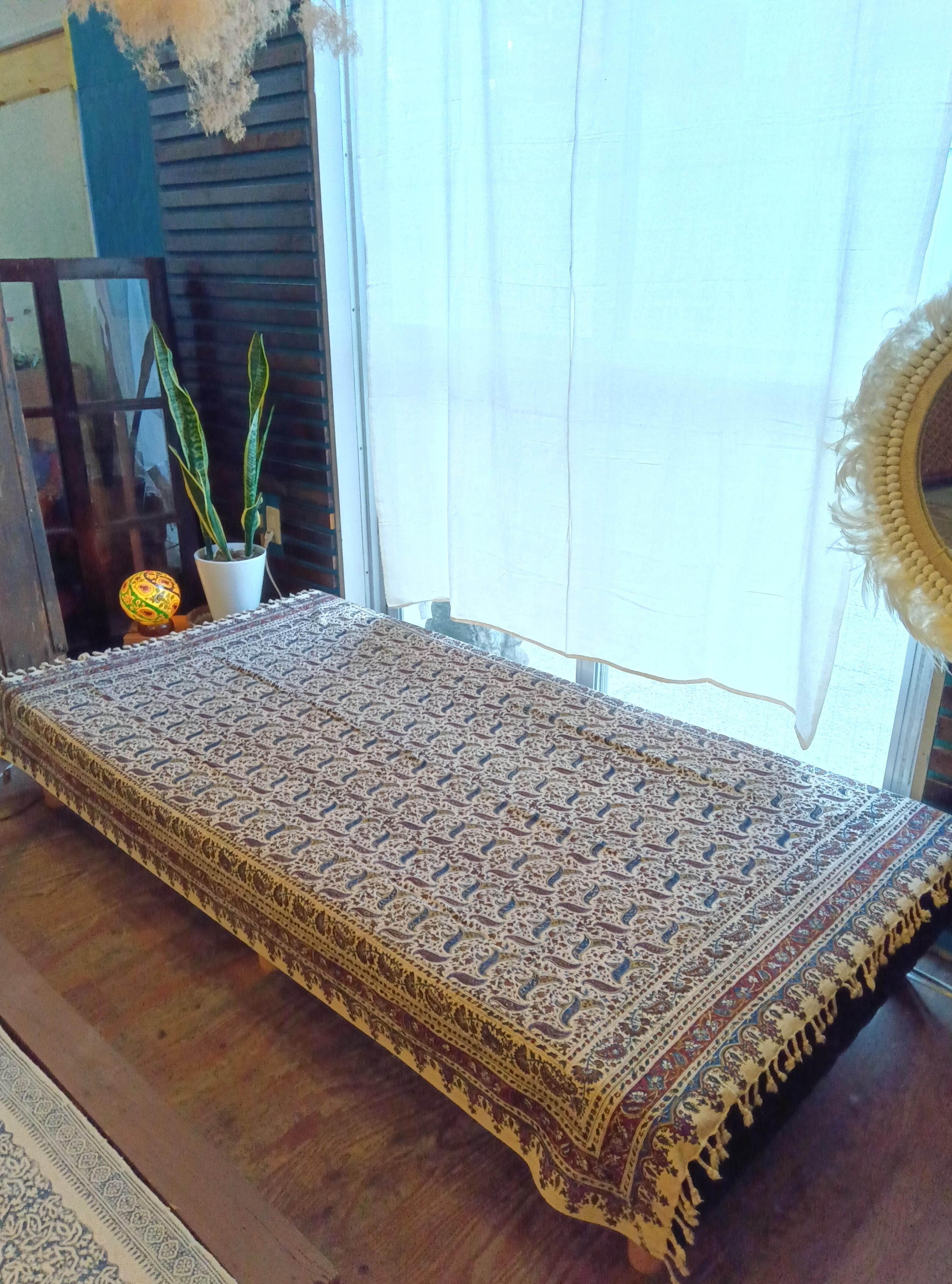 イスファハンの職人が木製のスタンプを使ってひとつひとつ丁寧に染め上げた「ペルシャ更紗」のマルチカバー。