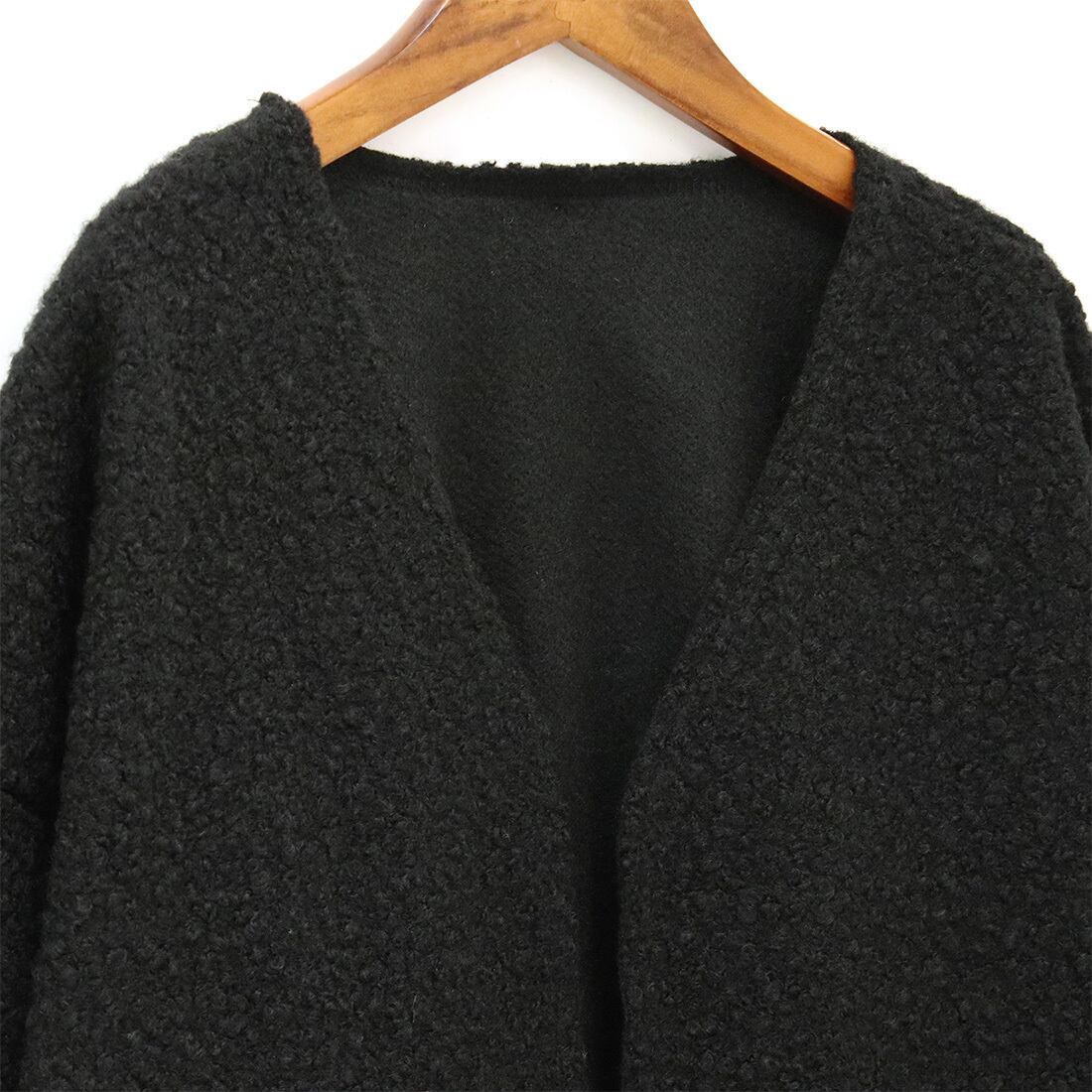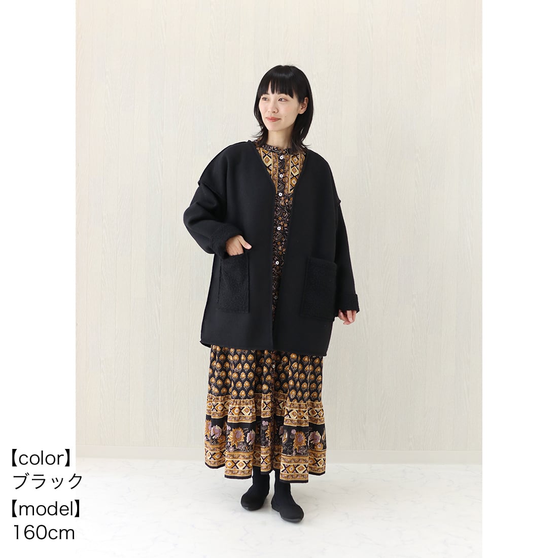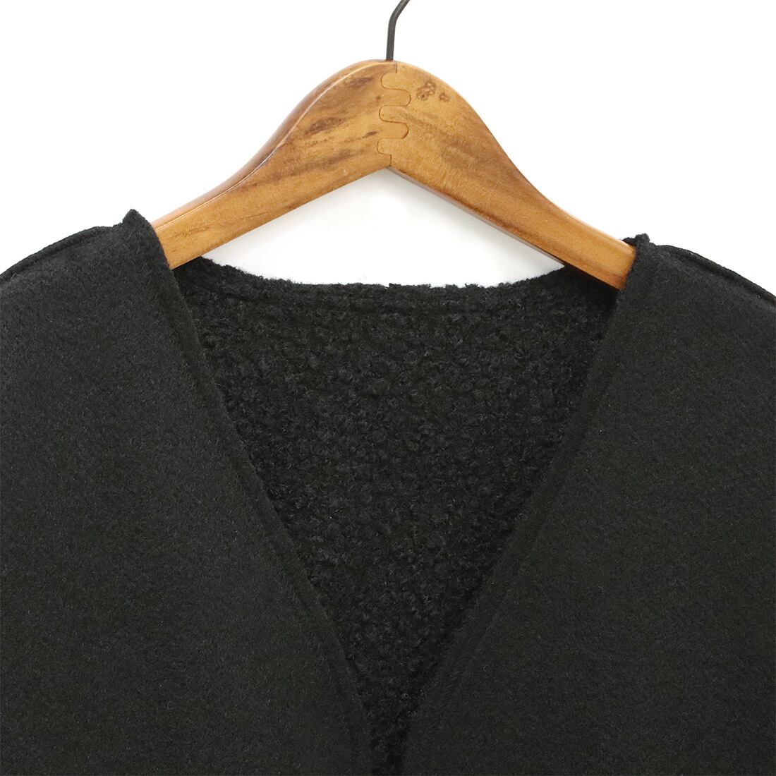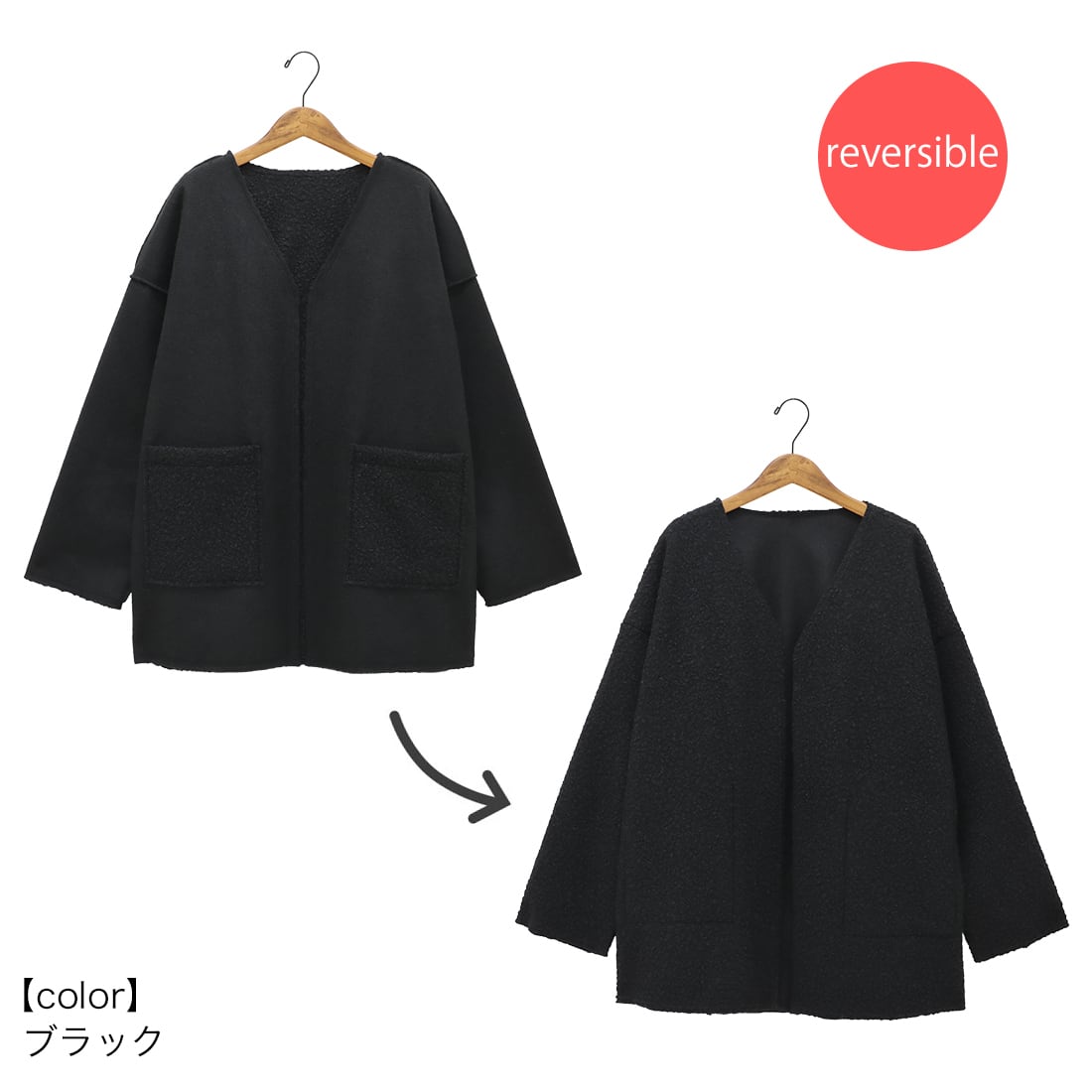 リバーシブル コート レディース ノーカラー ブークレー モコモコ 軽量 アウター ブラック 黒 2WAY カジュアル きれいめ 秋 冬 ドロップショルダー ゆったり ビッグシルエット