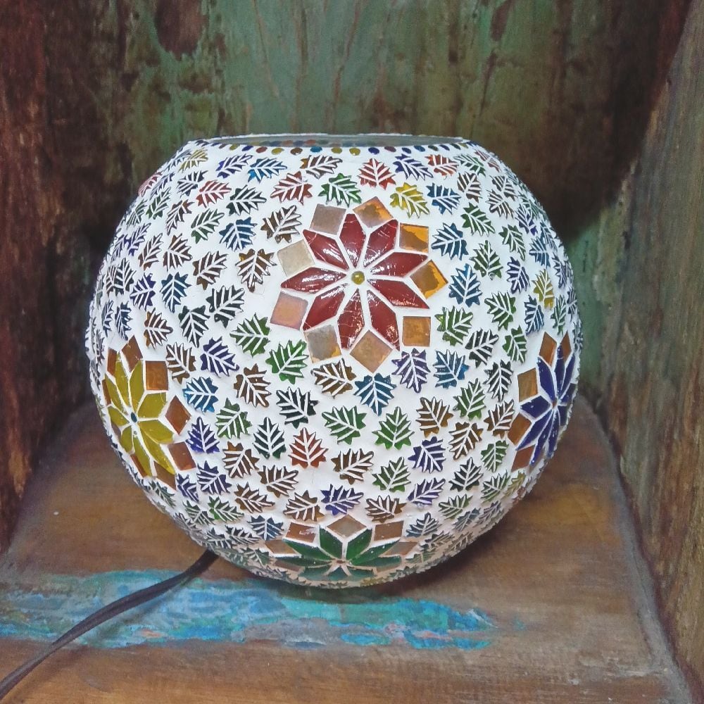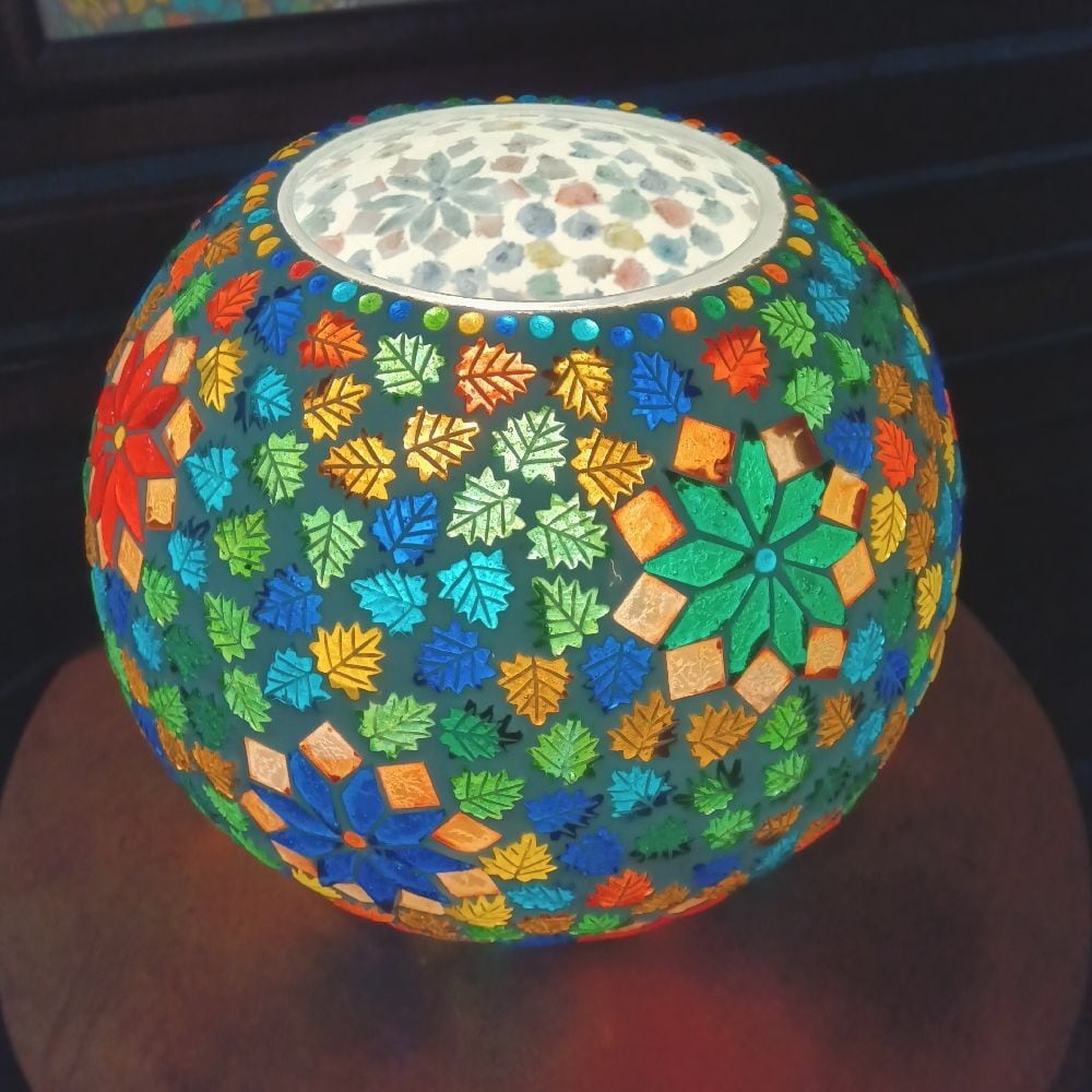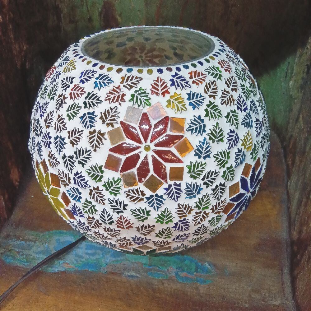 モザイクランプ 置き型 リーフ柄 ステンドグラス風 テーブルランプ フロアライト 間接照明 トルコランプ 職人手作り ハンドメイド インテリア 雑貨 ガラス 工芸 おしゃれ 可愛い 癒やし 幻想的 照明