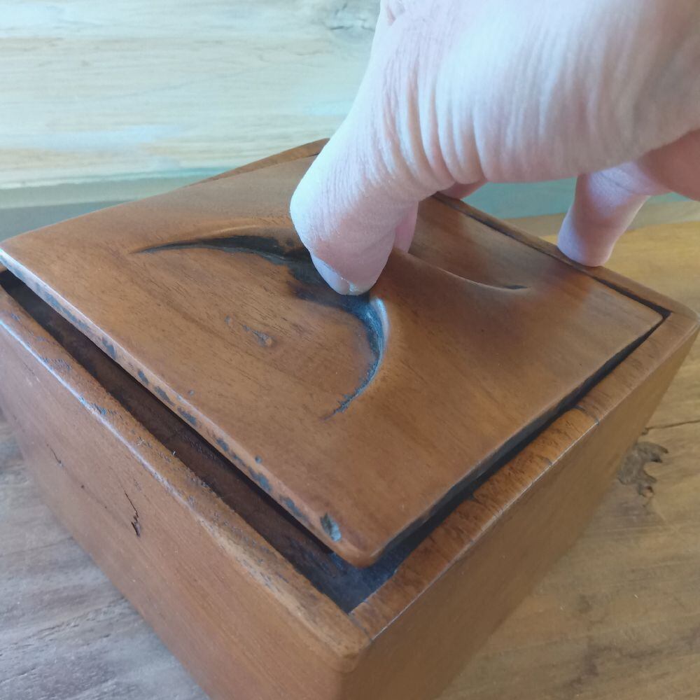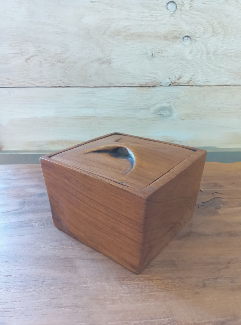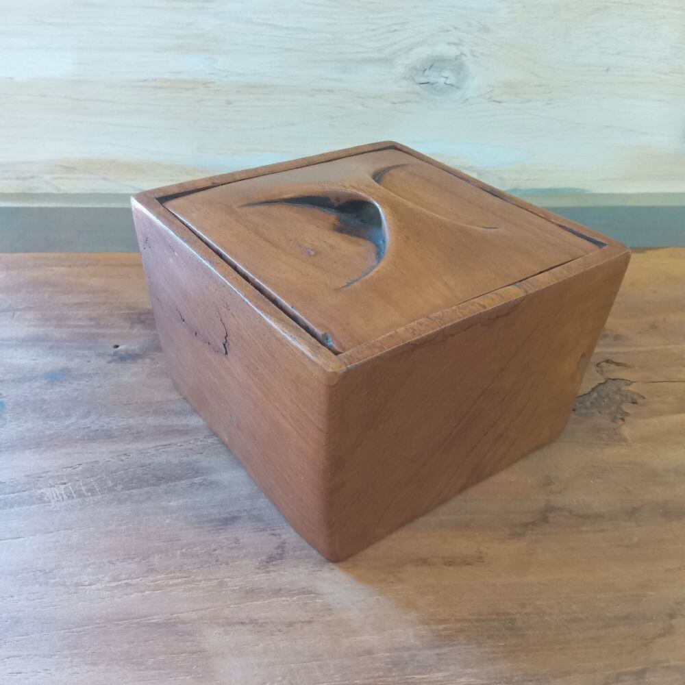 最大の魅力は、手に取った瞬間に感じるチーク材特有のしっとりとした質感と、驚くほど滑らかな蓋の開け閉め。精密な手仕事だからこそ実現できた、心地よい使用感をお楽しみいただけます。