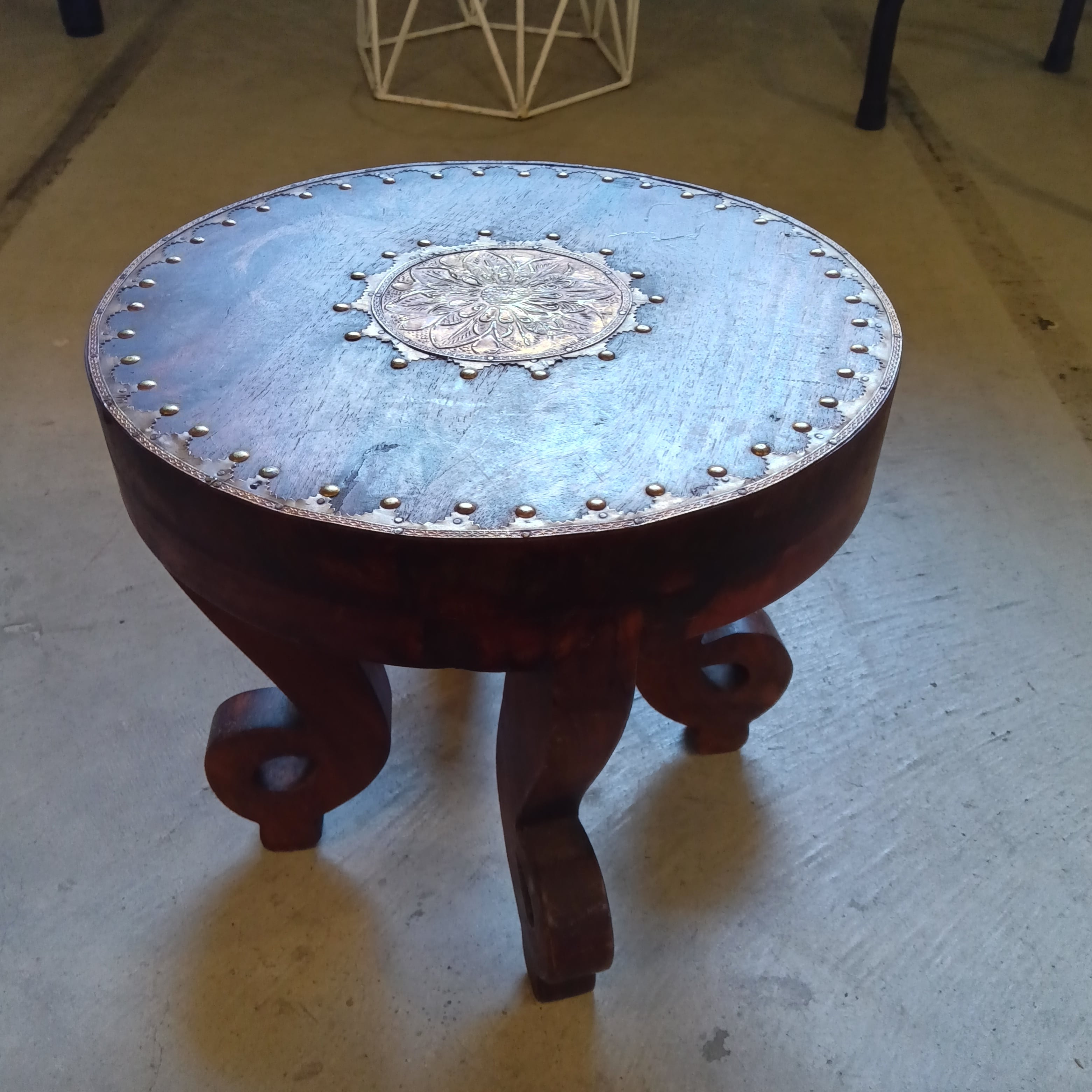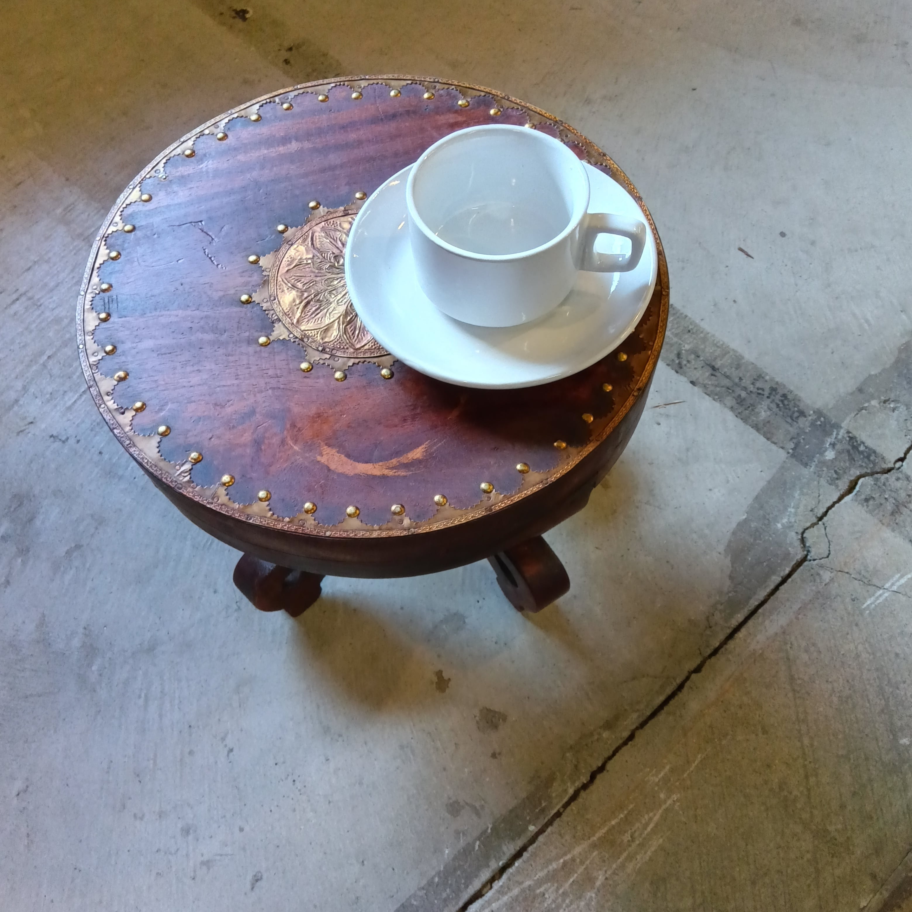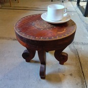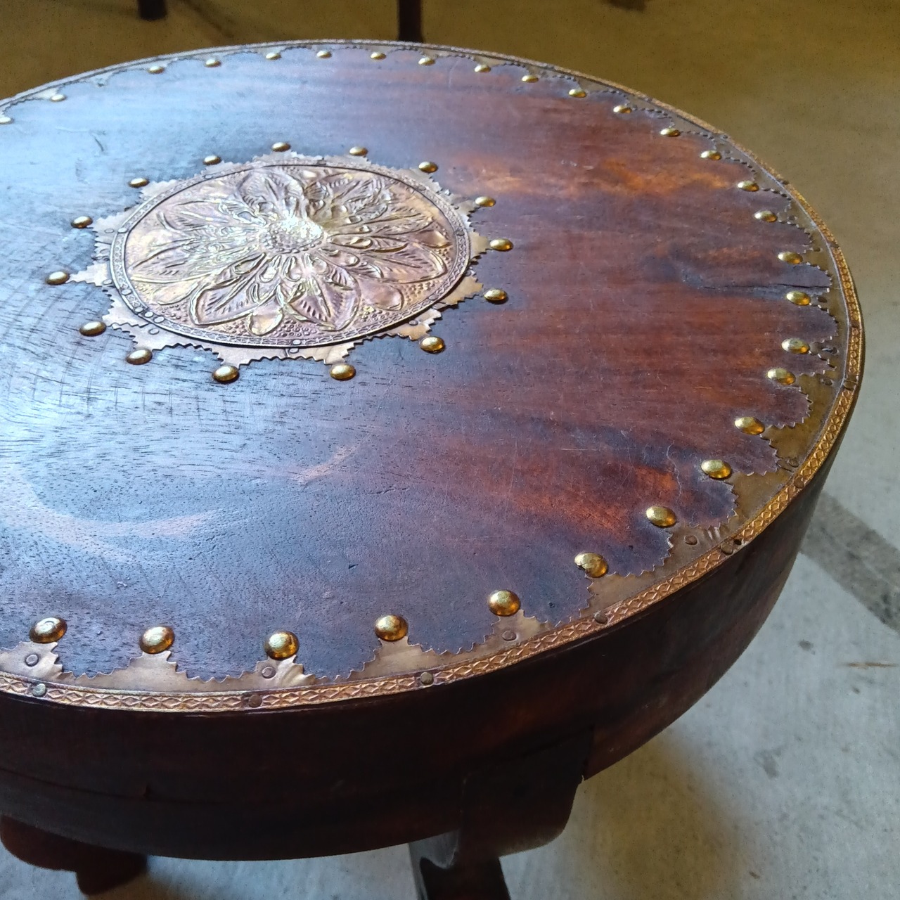【インド直輸入】ヴィンテージ風 ミニテーブル / 銅板エンボス細工のアクセント