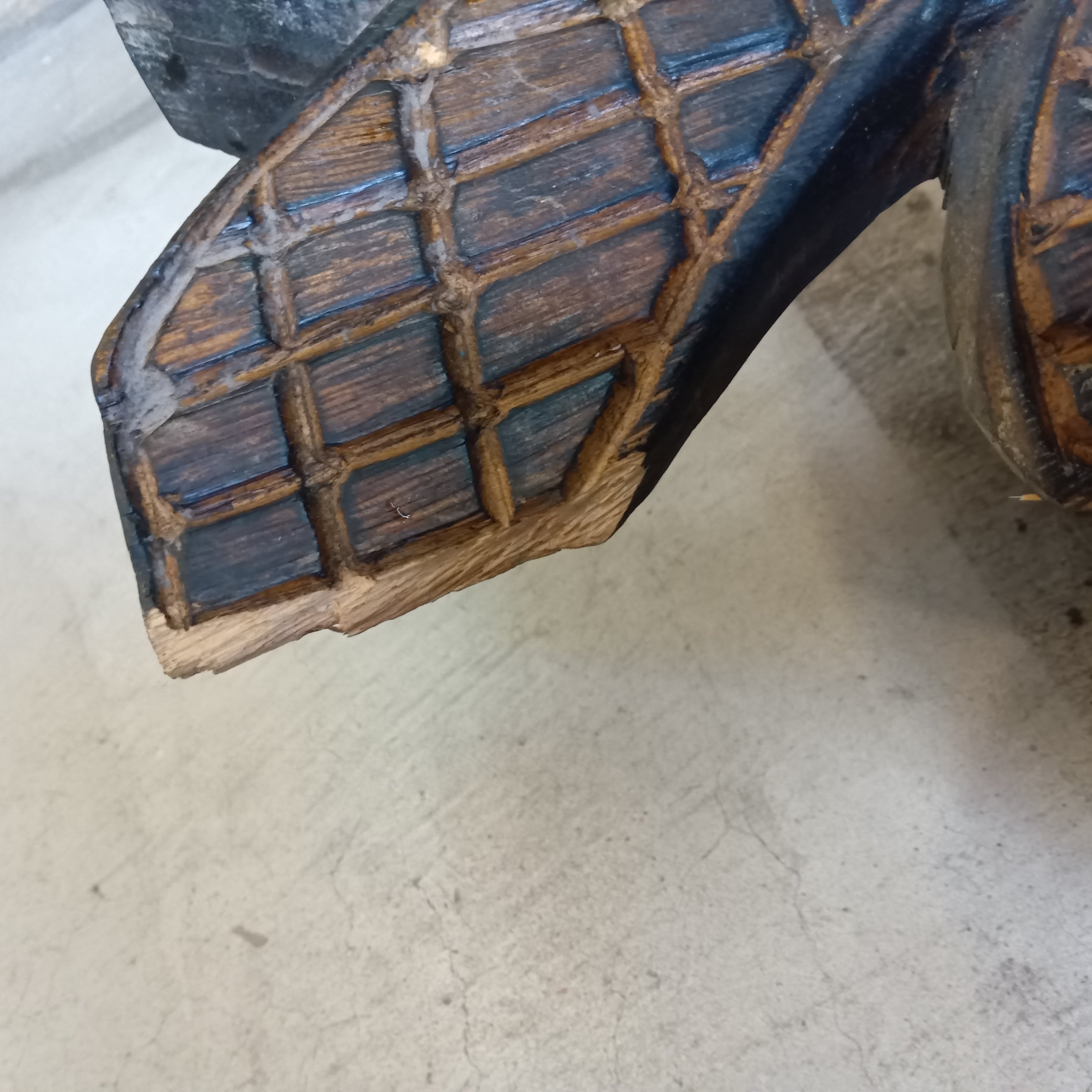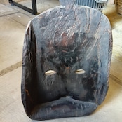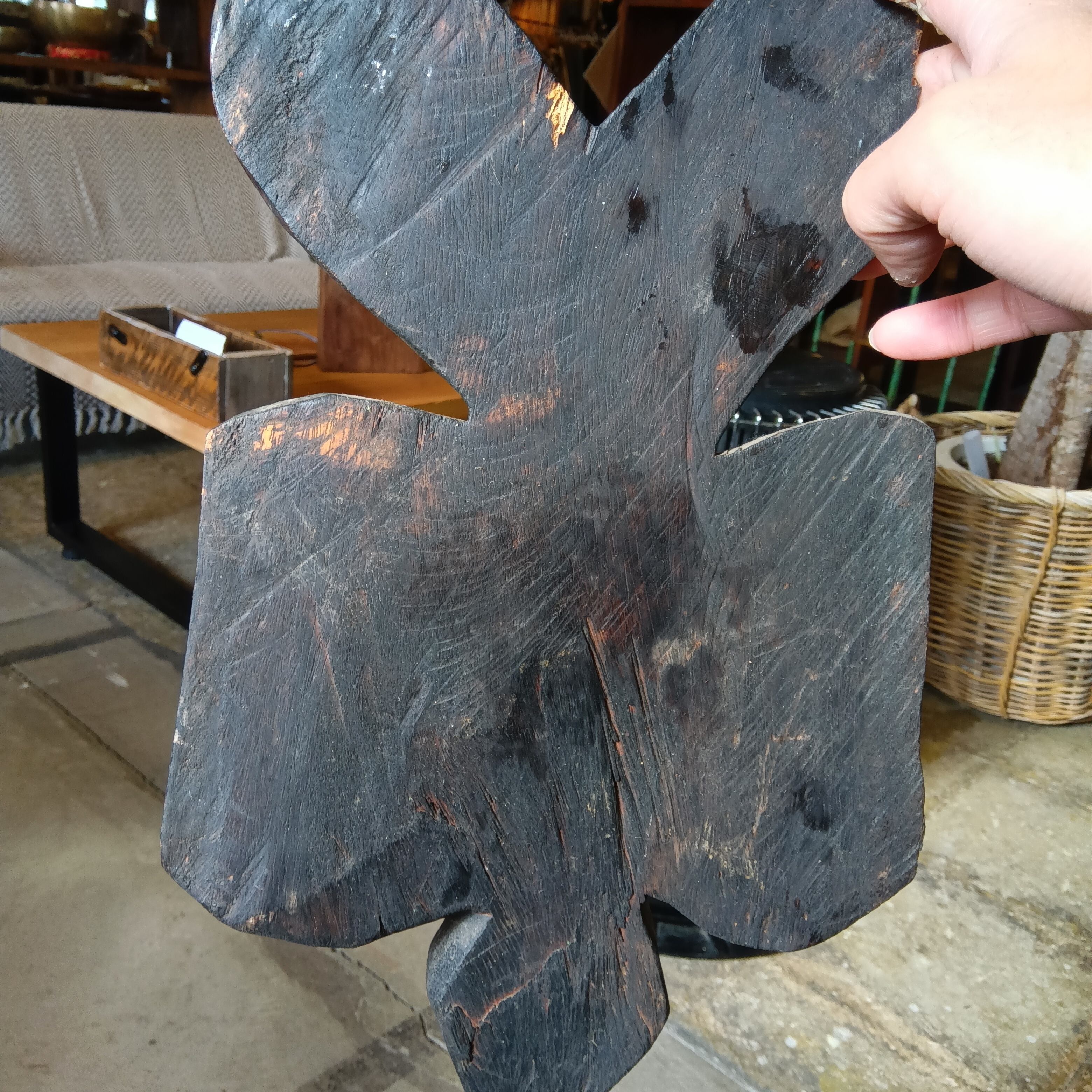 素材は、高級家具にも使われる「スアールウッド(モンキーポッド)」の無垢材。高さ約87cmという超大型サイズで、天然木ならではの重厚な質感と、職人の手仕事による力強い造形が融合した逸品です。