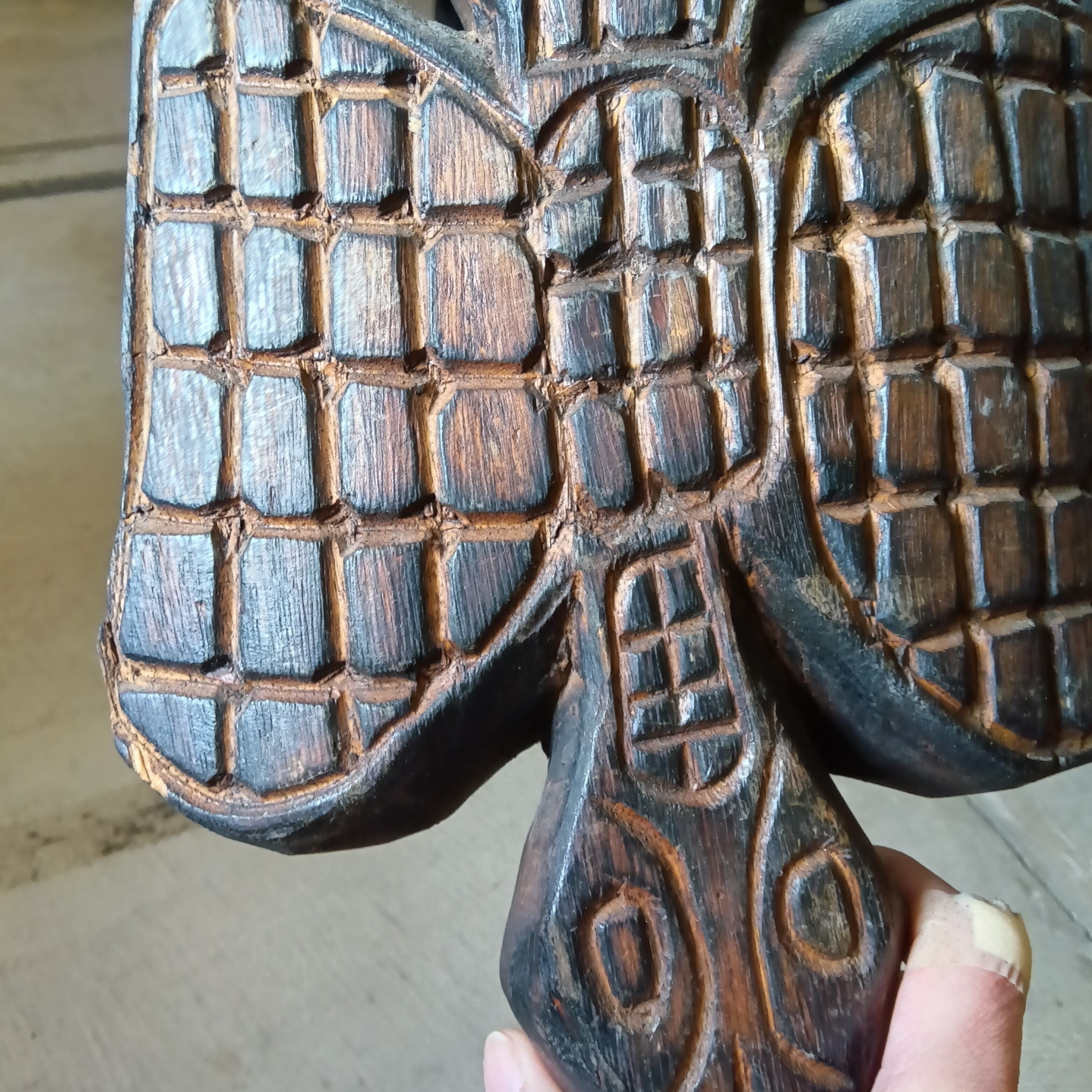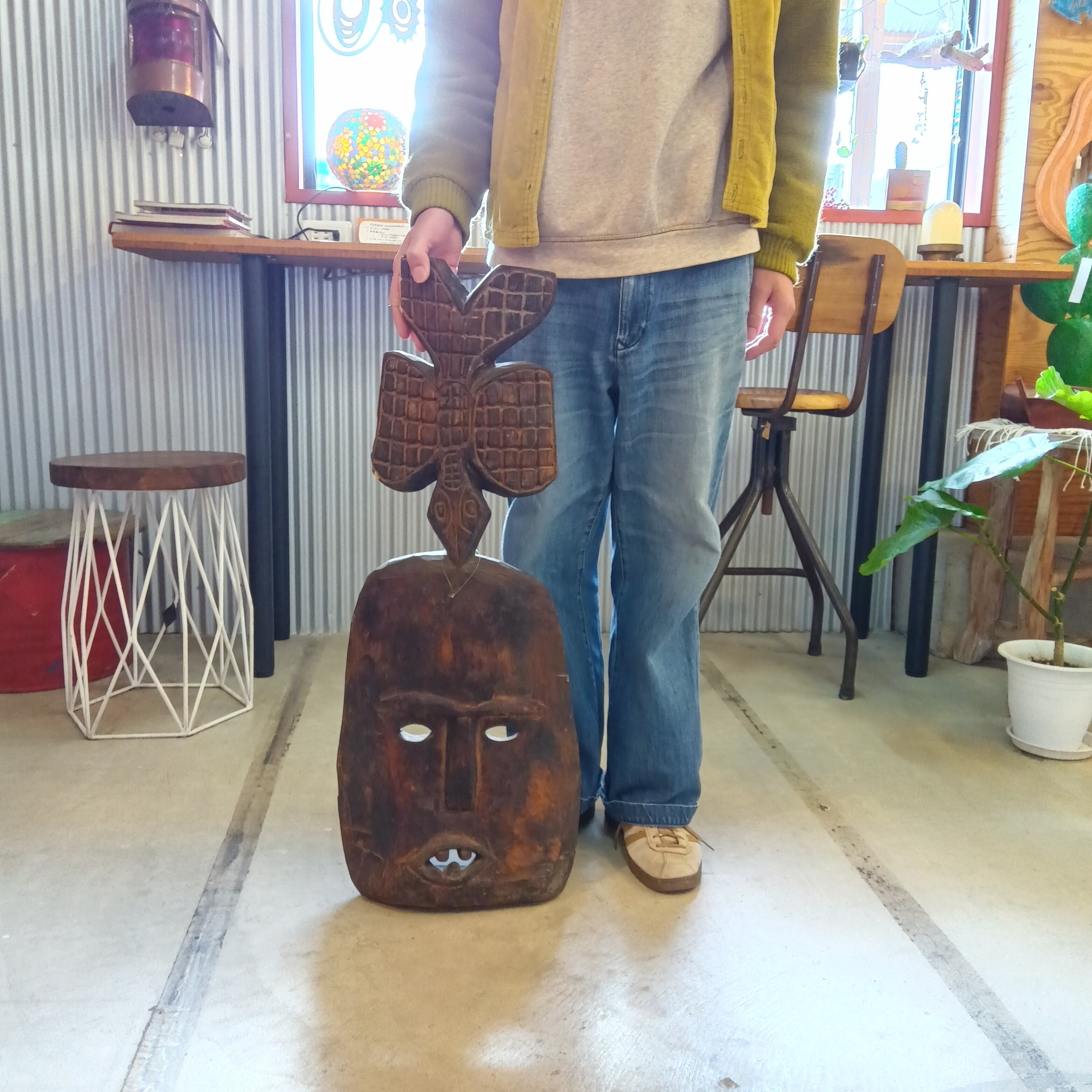 木彫り マスク お面 特大 87cm オブジェ 置物 インドネシア バリ島 エスニック アジアン プリミティブ 彫刻 スアールウッド 髪飾り 幾何学模様 店舗什器 シャビー 骨董風