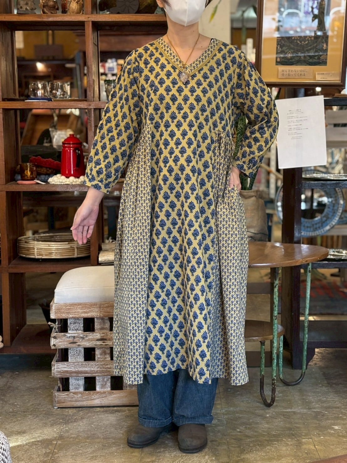 心ときめく、手仕事のぬくもり。ブロックプリント風コットンワンピース