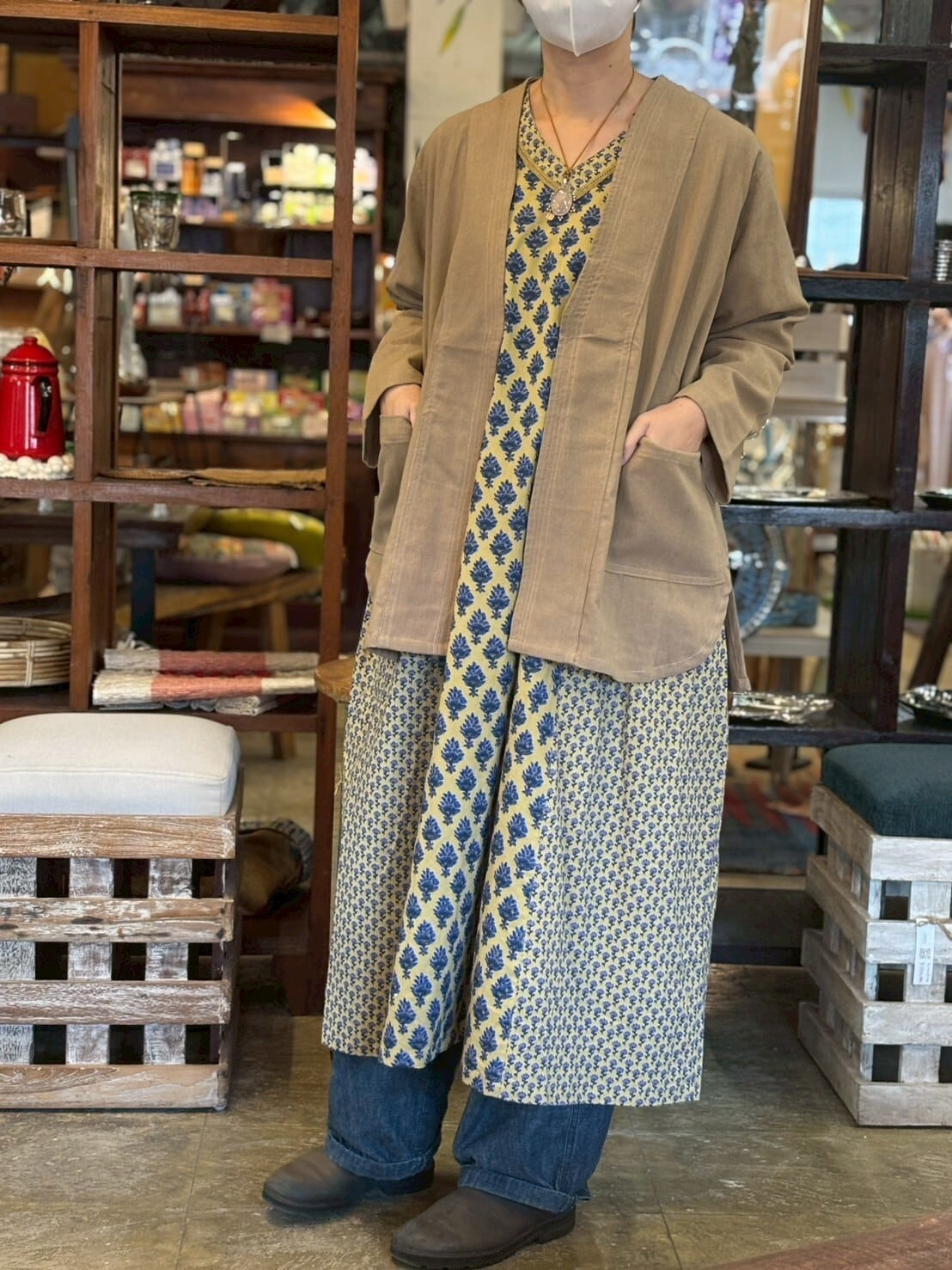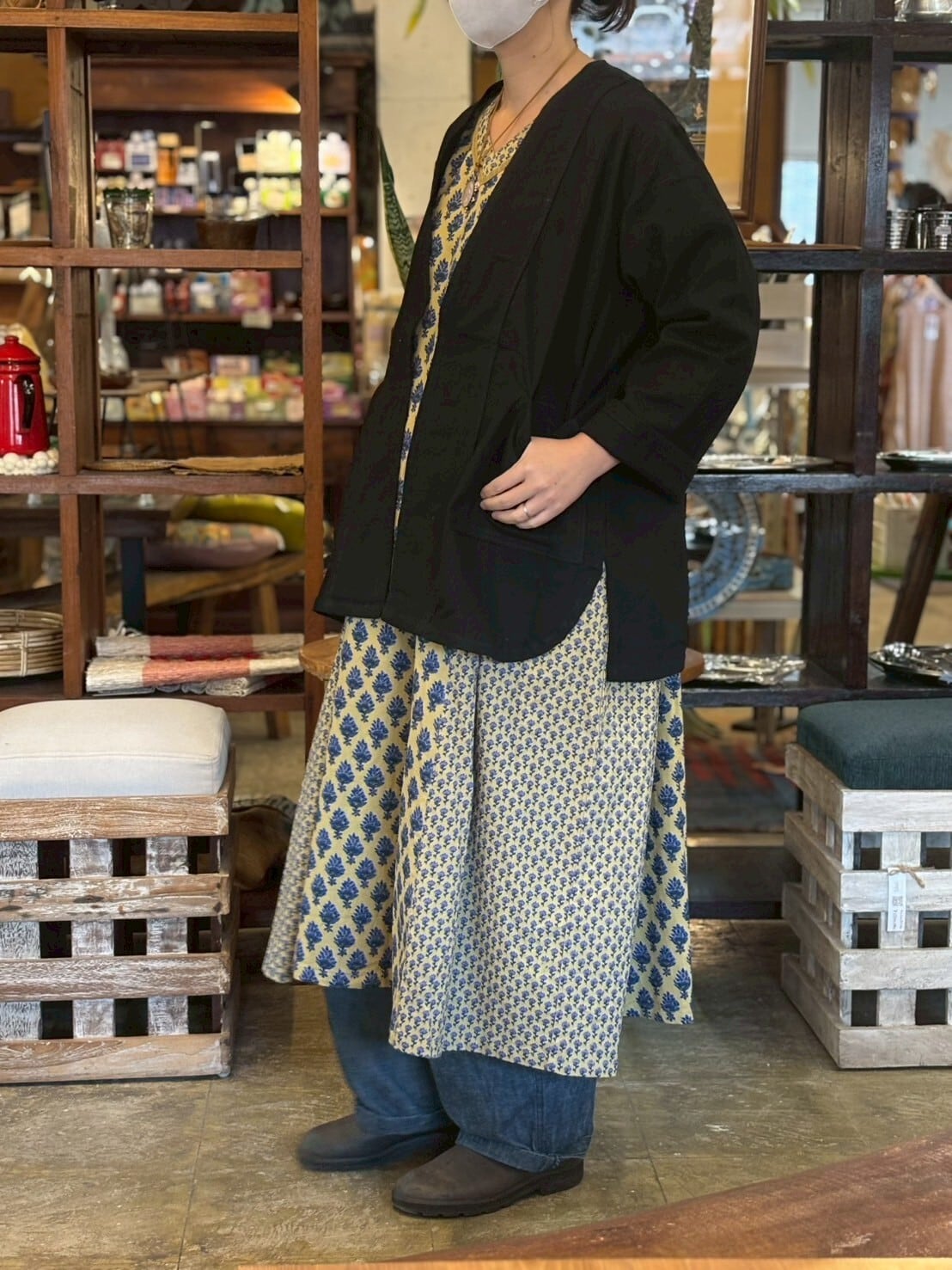 落ち着いたトーンの花柄が大人可愛い、エスニックのエッセンスをぎゅっと詰め込んだ一着です。