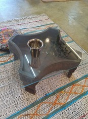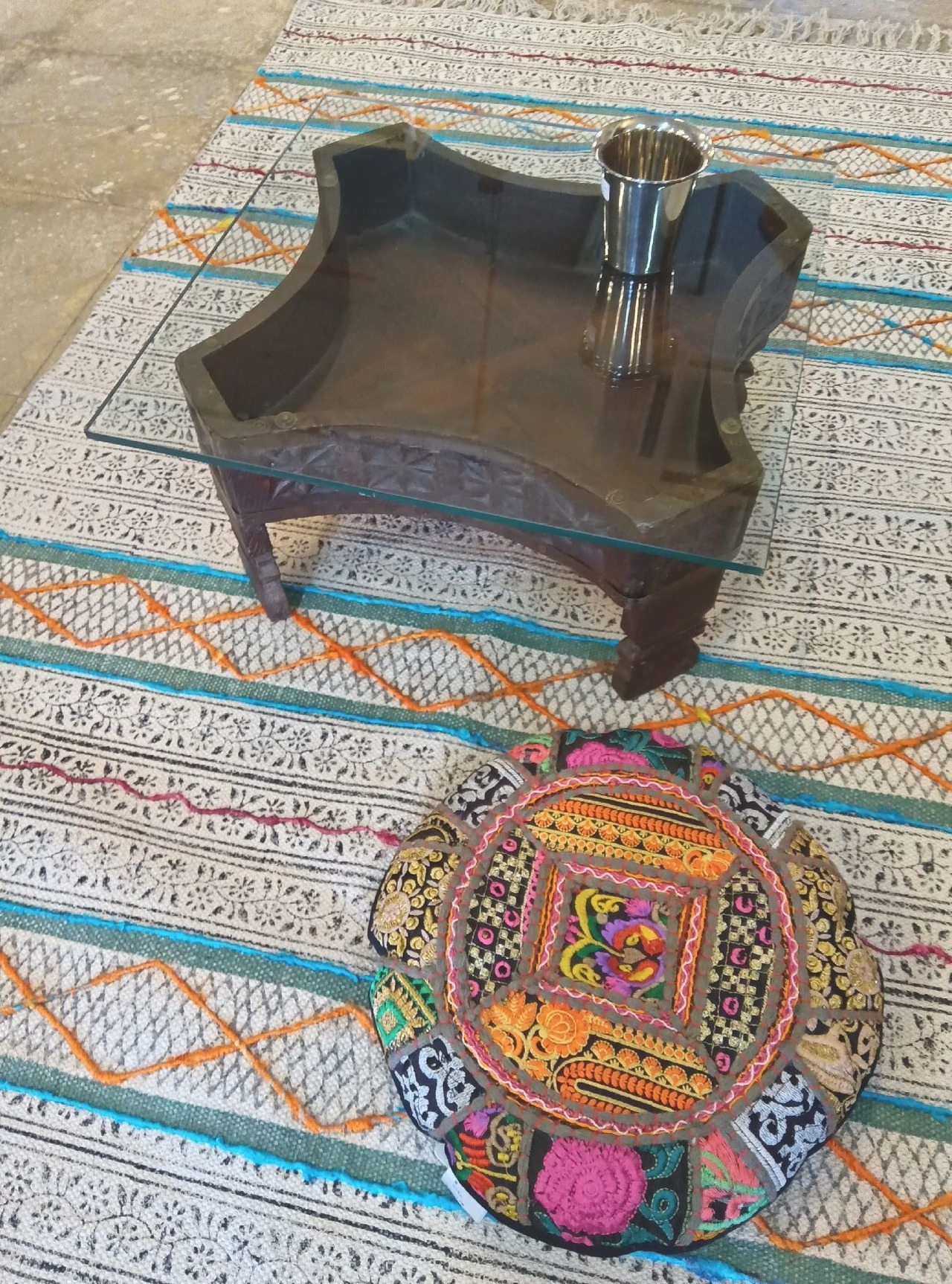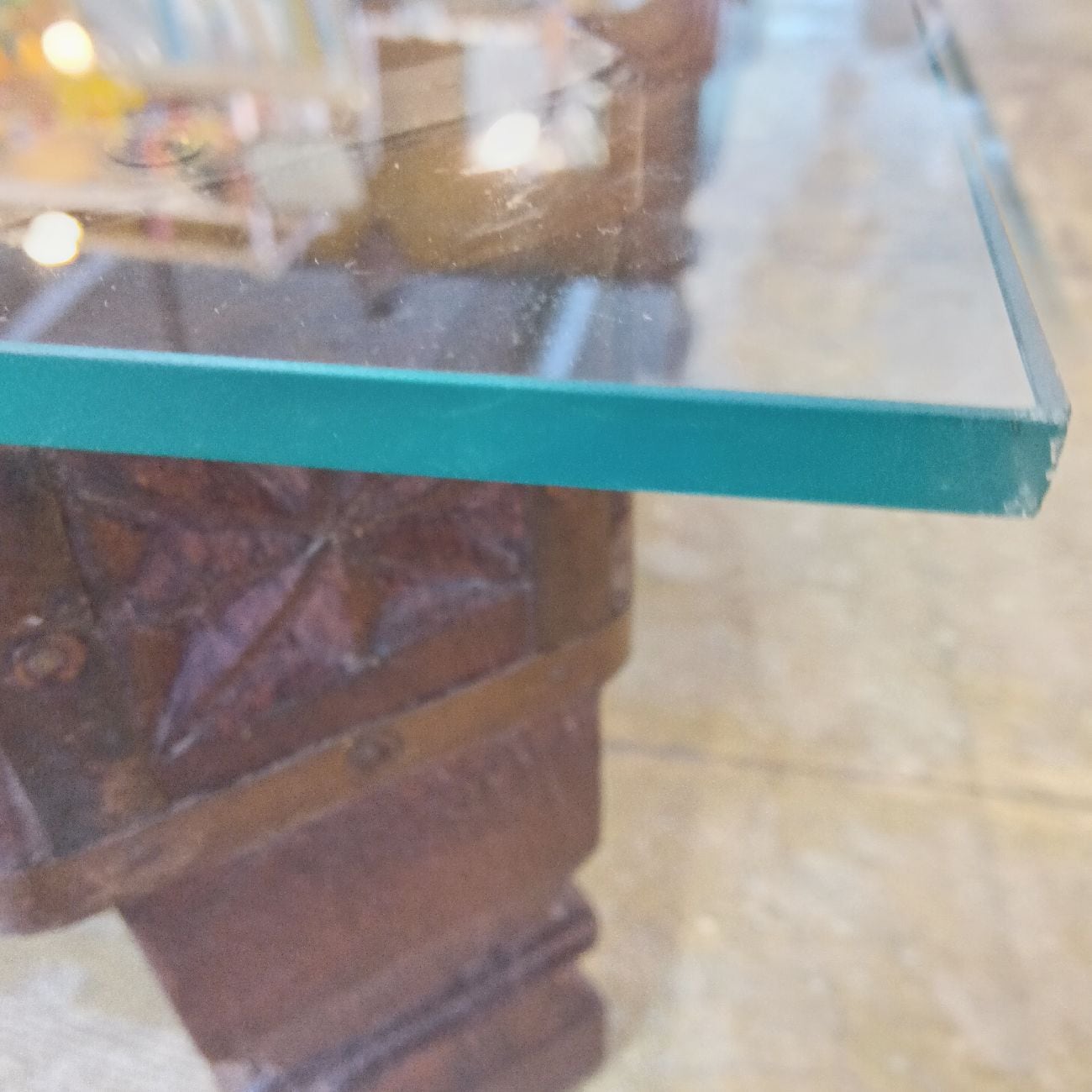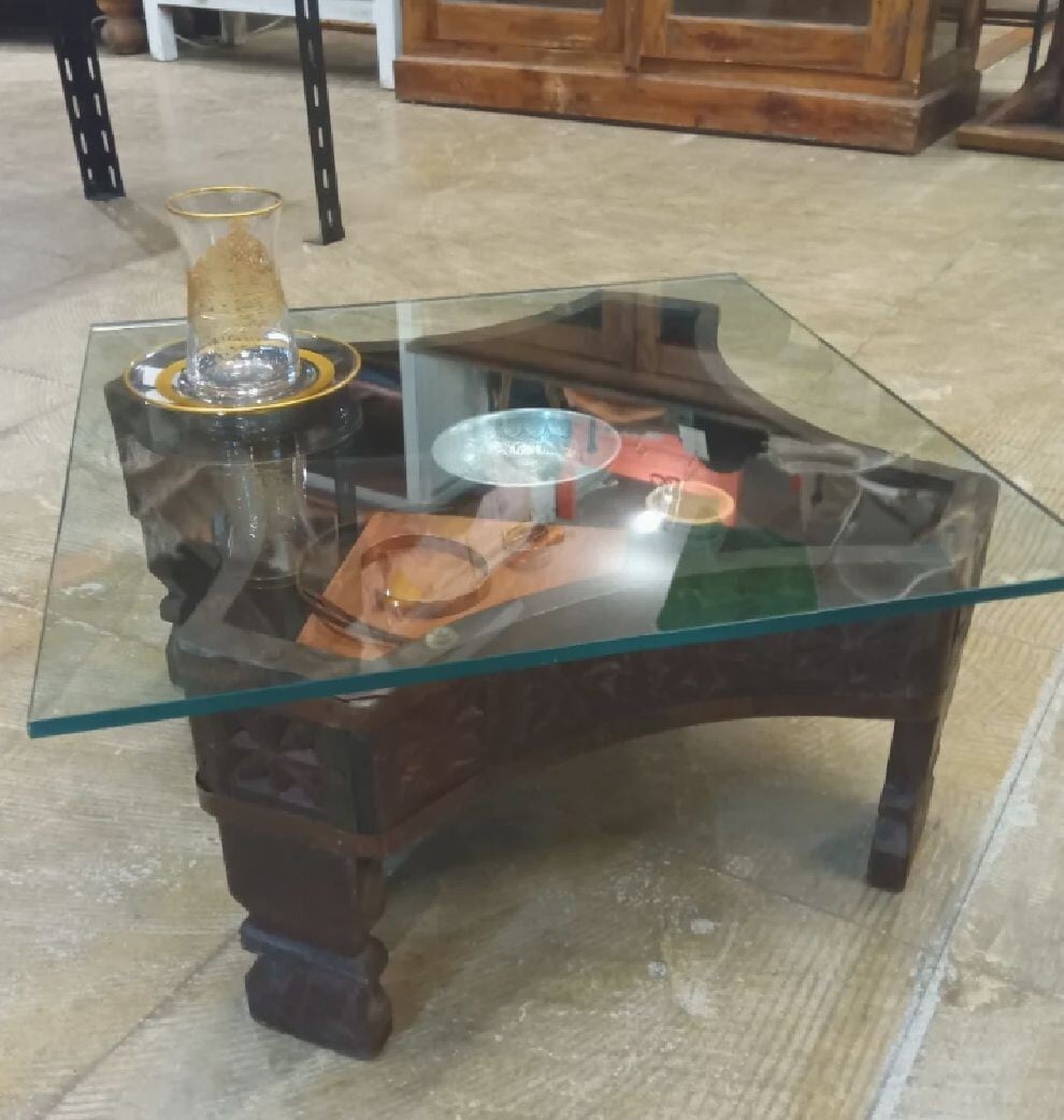 アンティーク ヴィンテージ 古道具 木彫り 彫刻 ガラス ローテーブル 座卓 サイドテーブル 飾り台 陳列棚 小ぶり コンパクト エスニック コロニアル アジアン プリミティブ インテリア 一点物