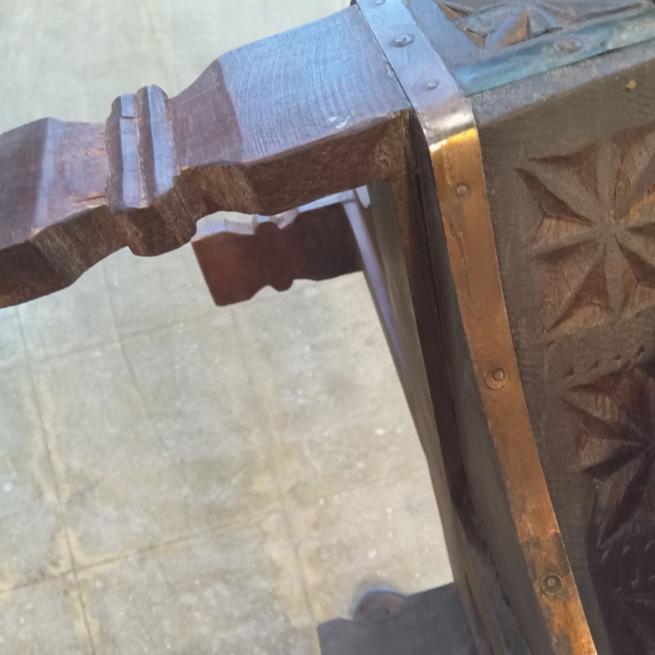 職人技が光る彫刻: 側面には幾何学的な星形の彫刻が施され、アンティーク調の金属フレームが全体の印象をキリリと引き締めます。