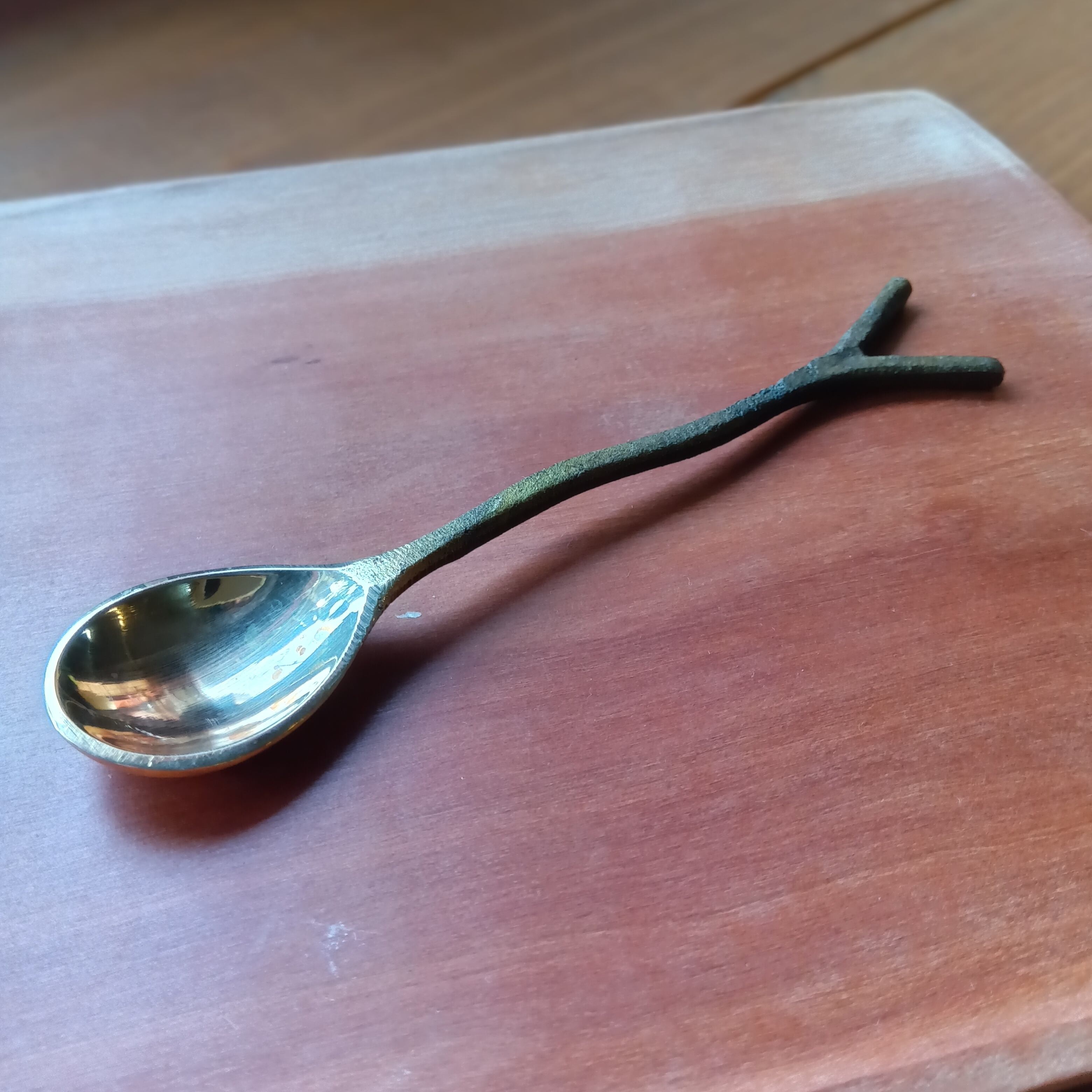 木の枝のフォルムが特徴の真鍮製スプーンです。