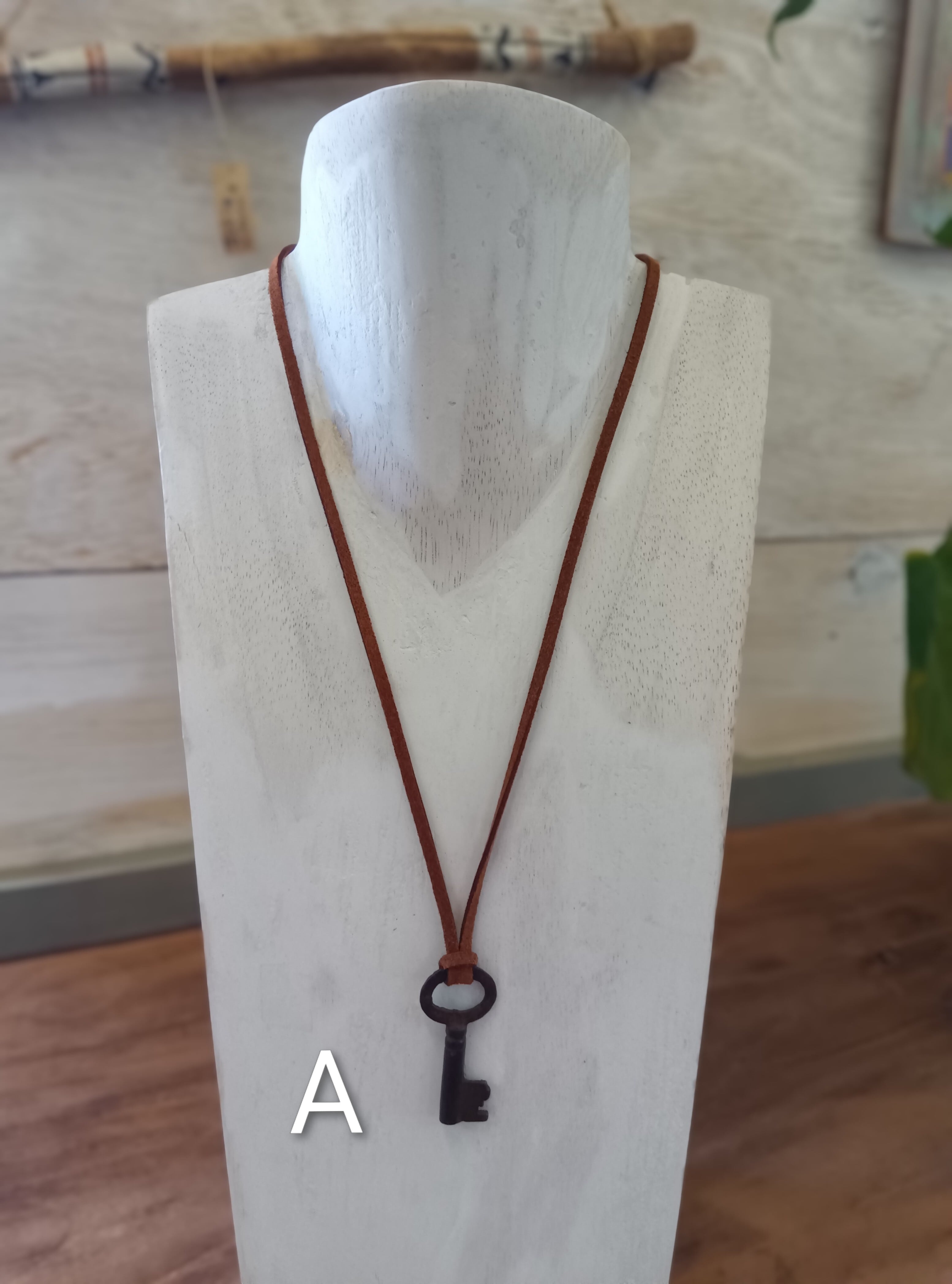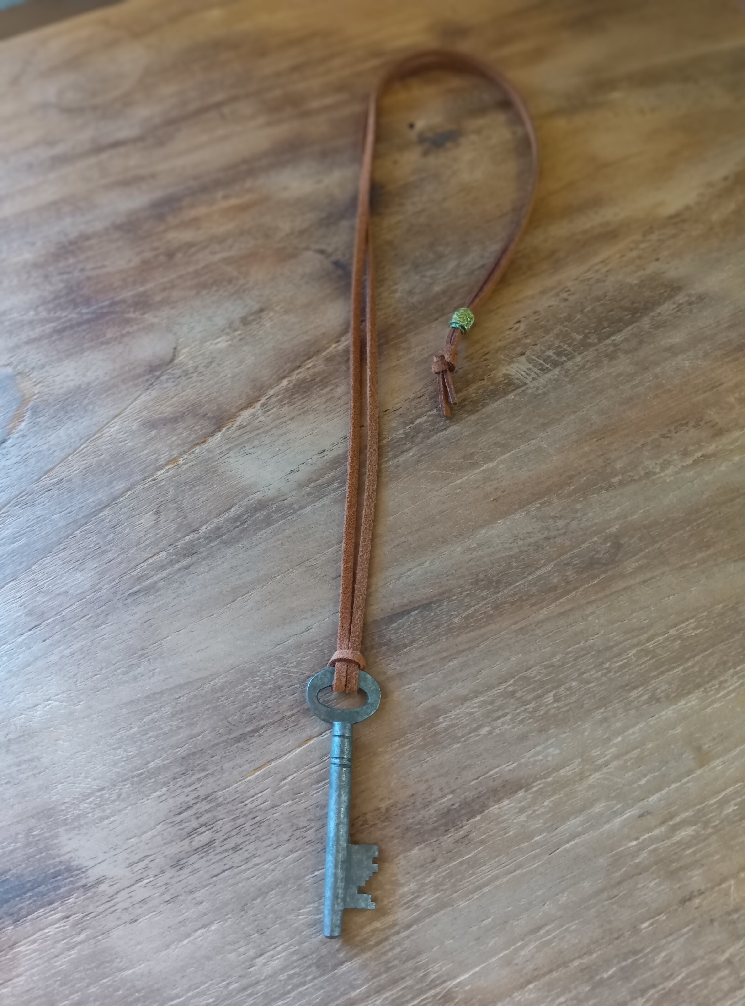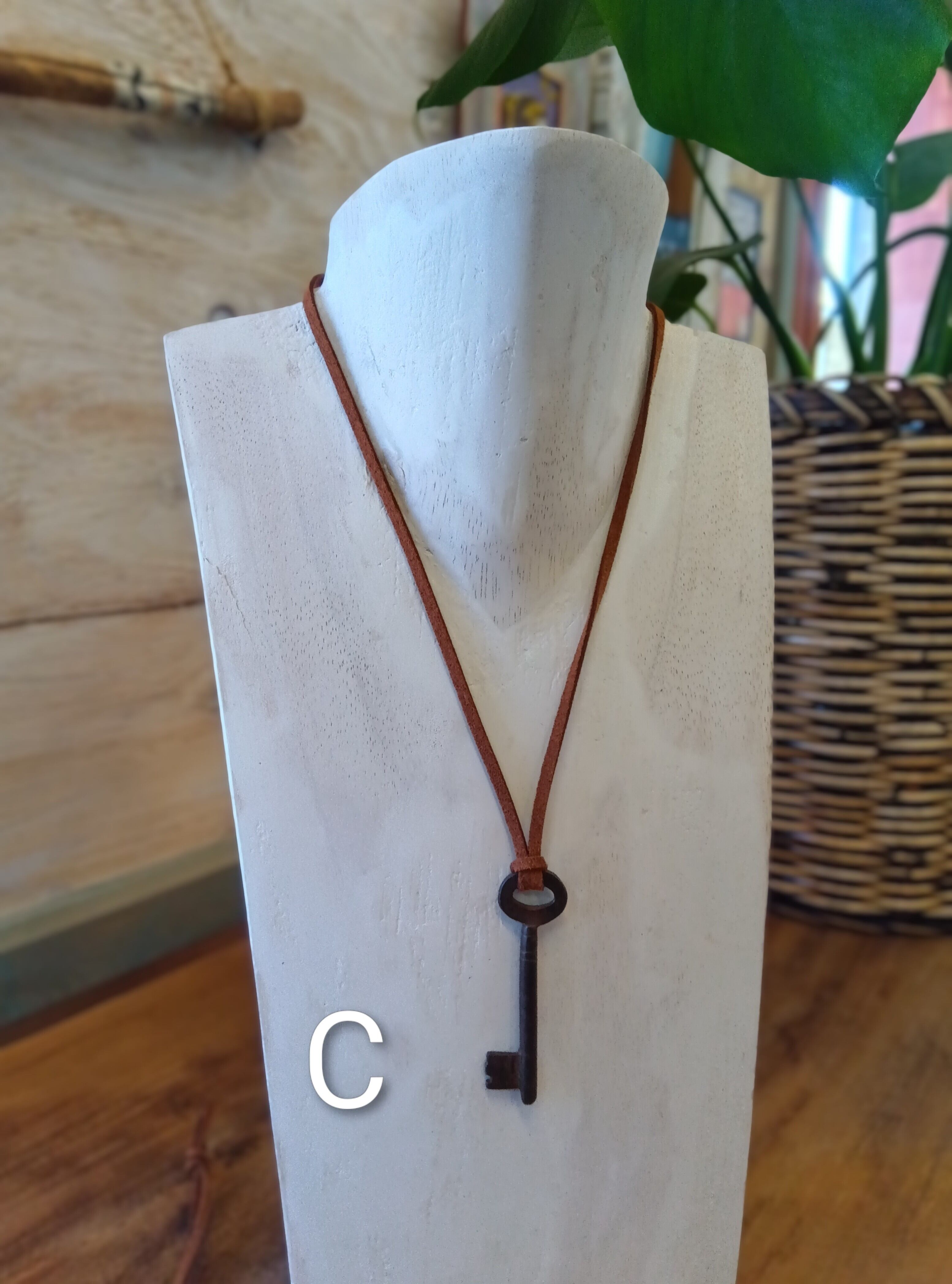 インドの古い鍵ペンダント ヴィンテージキー ネックレス インドの古鍵 ネックレス フェイクレザー紐 40cm