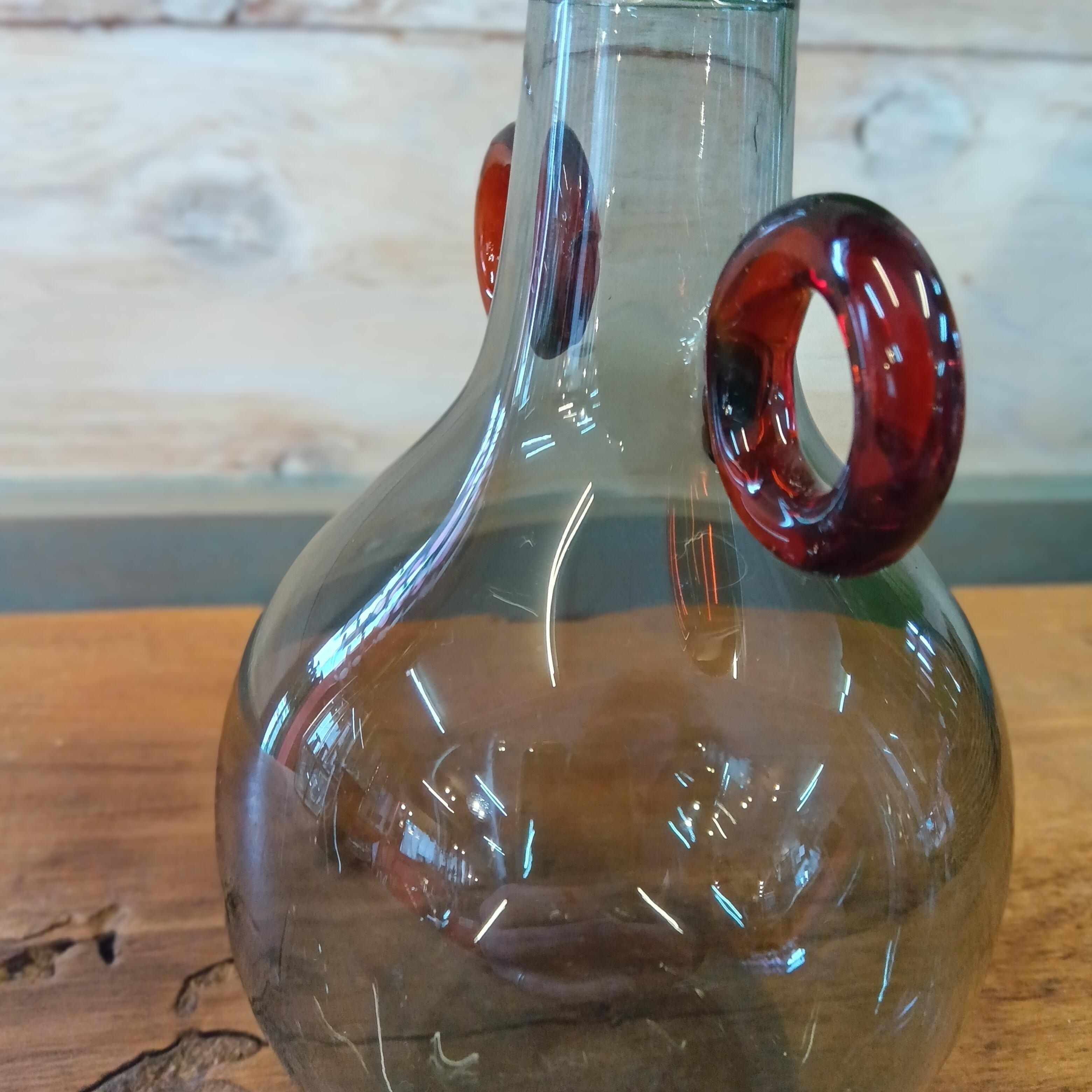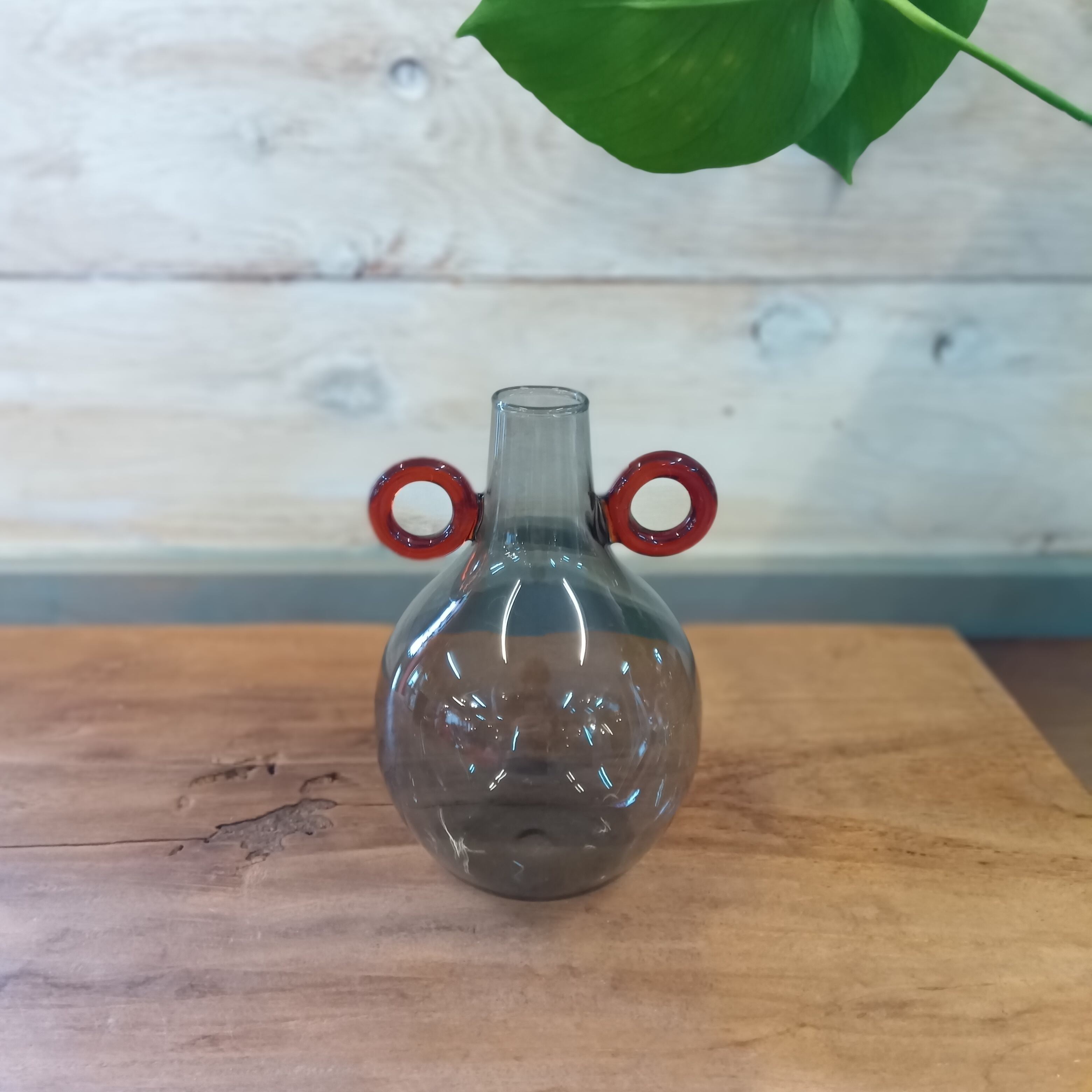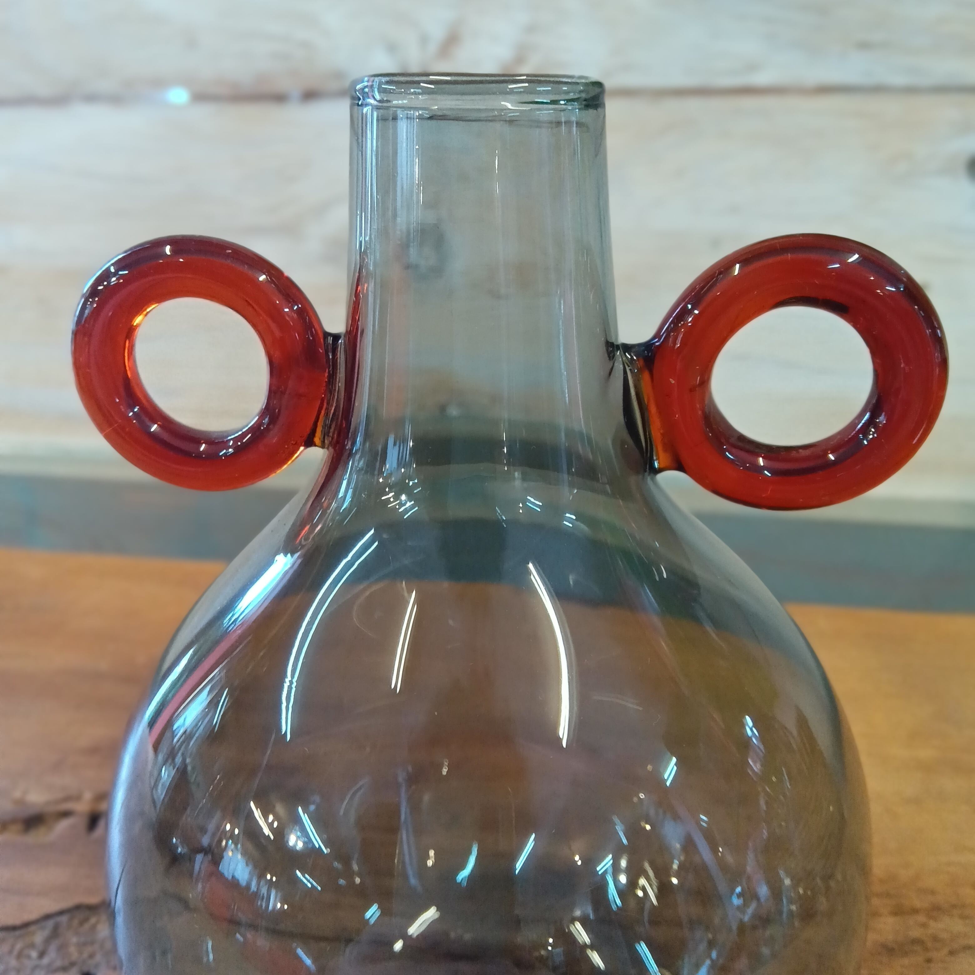 北欧モダン風 ガラスベース スモーキーグレー × アンバー ハンドル花瓶 [高さ15cm]