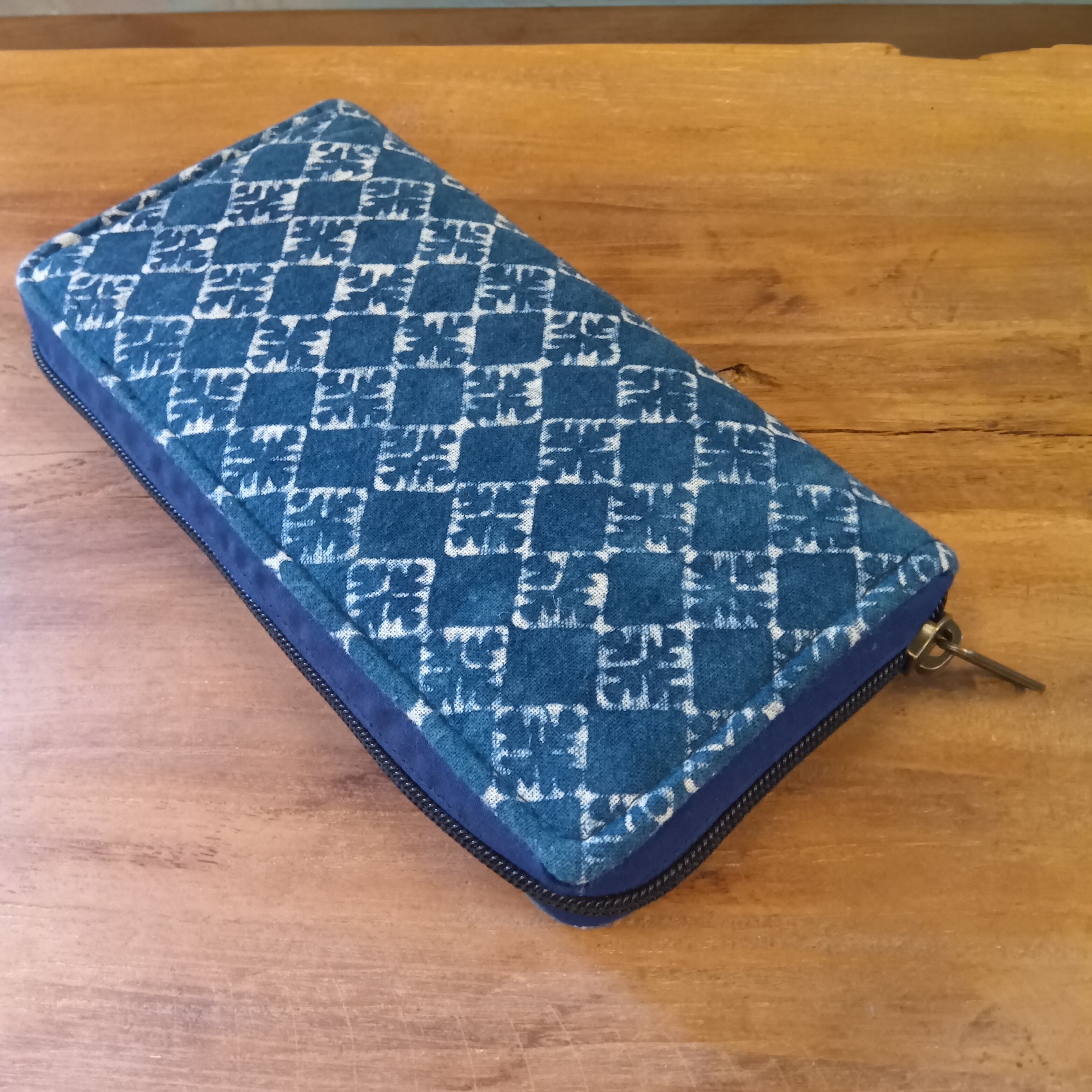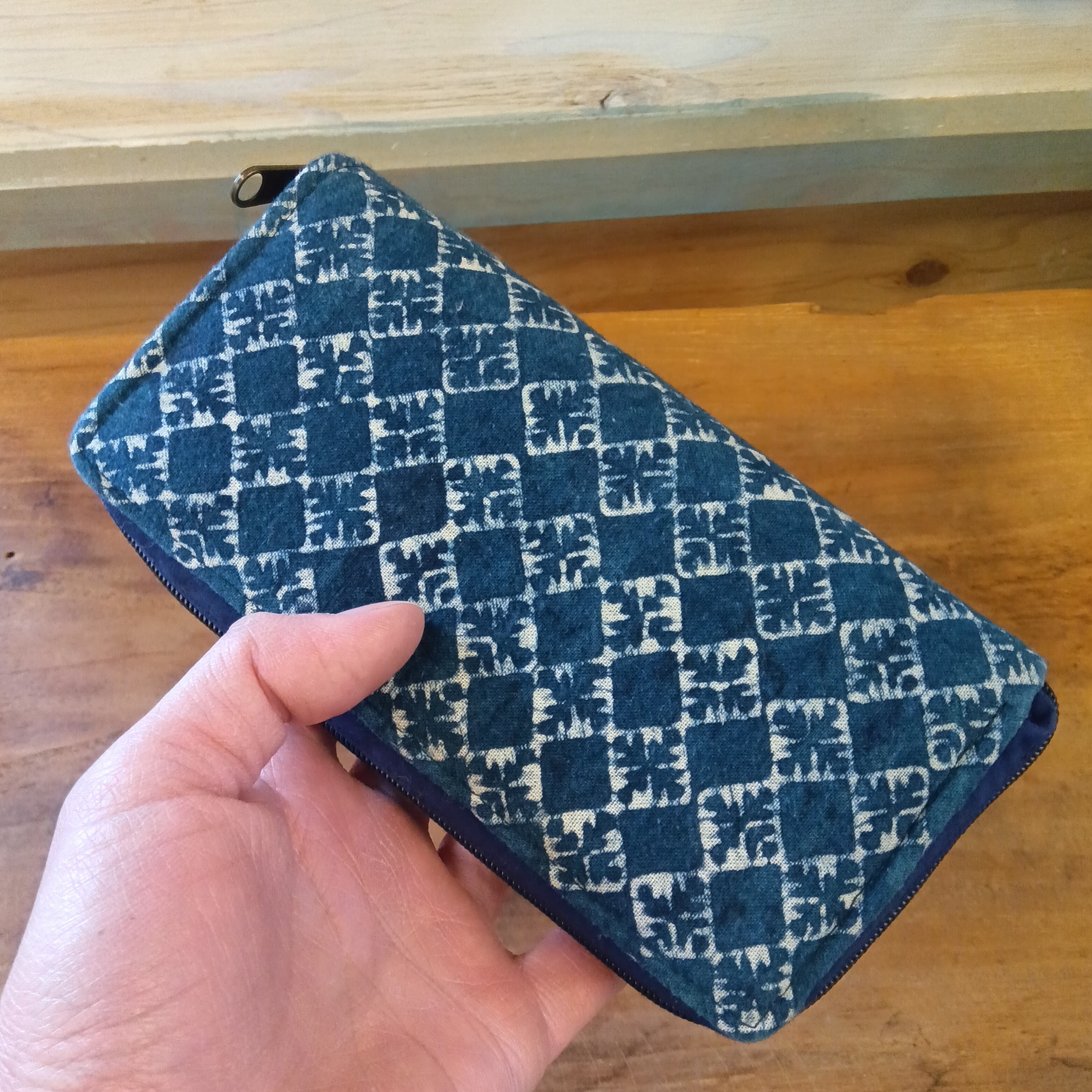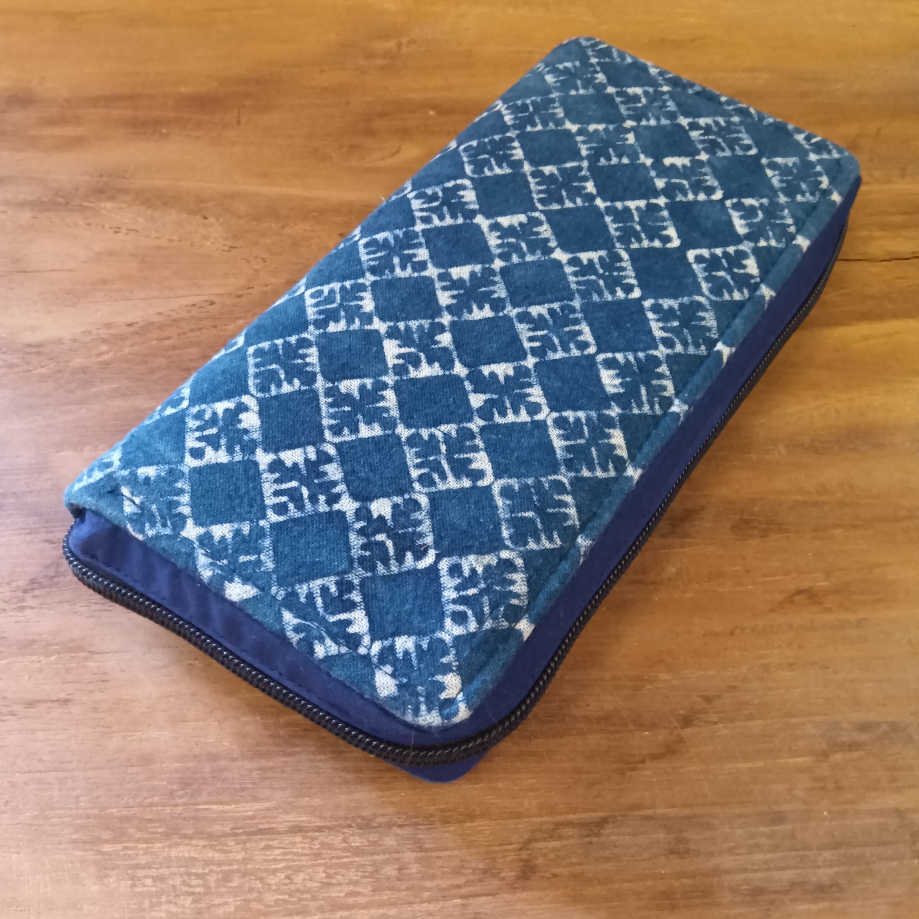 タイの藍染めコットン生地を使用したロングウォレットです。