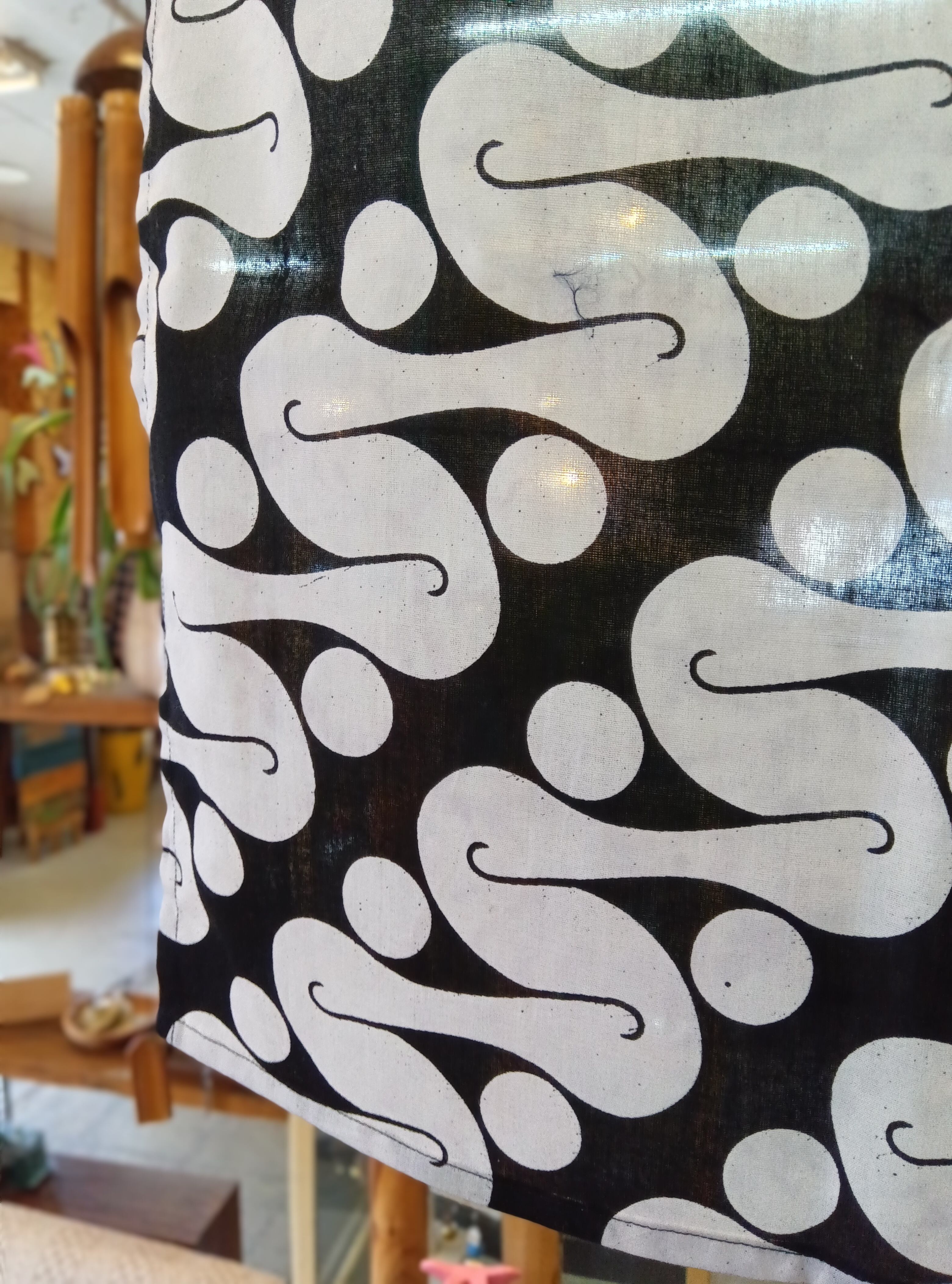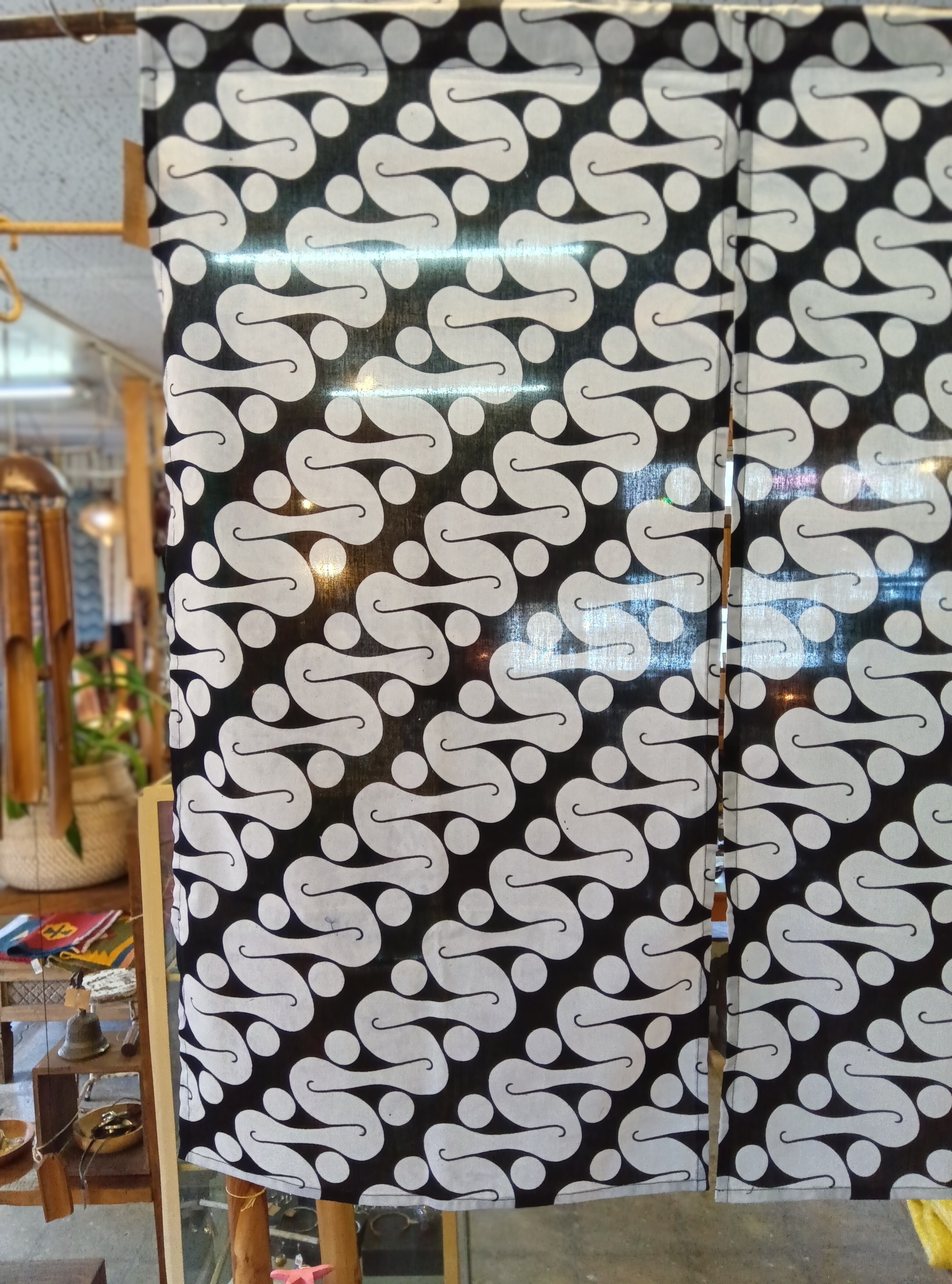 アジアンテキスタイルの王道、バティックのなかでも、最も格式高いとされる「パラン(Parang)文様」を施したのれんです。