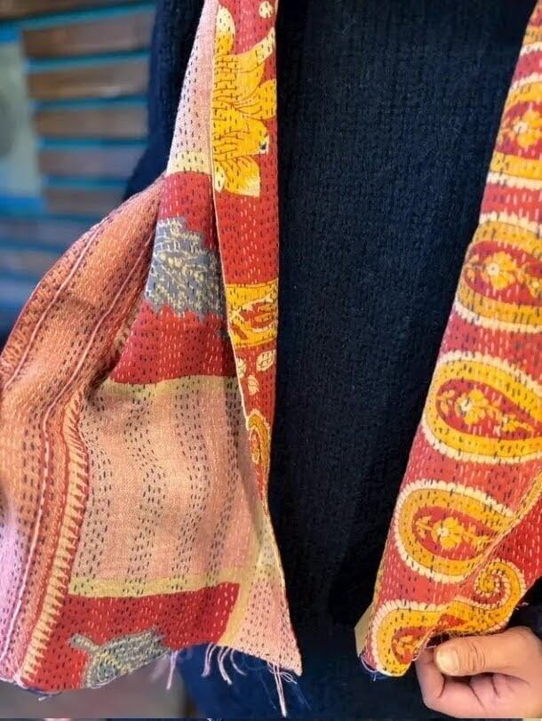 #グドゥリー #ラリーキルト #刺し子 #カンタ刺繍 #ヴィンテージストール #インド綿 #一点もの #サステナブル #エシカルファッション #古布リメルク #手仕事 #アジアン雑貨 #エスニックファッション #ハンドメイド #伝統工芸 #ロングストール #大人エスニック #世界の布