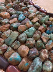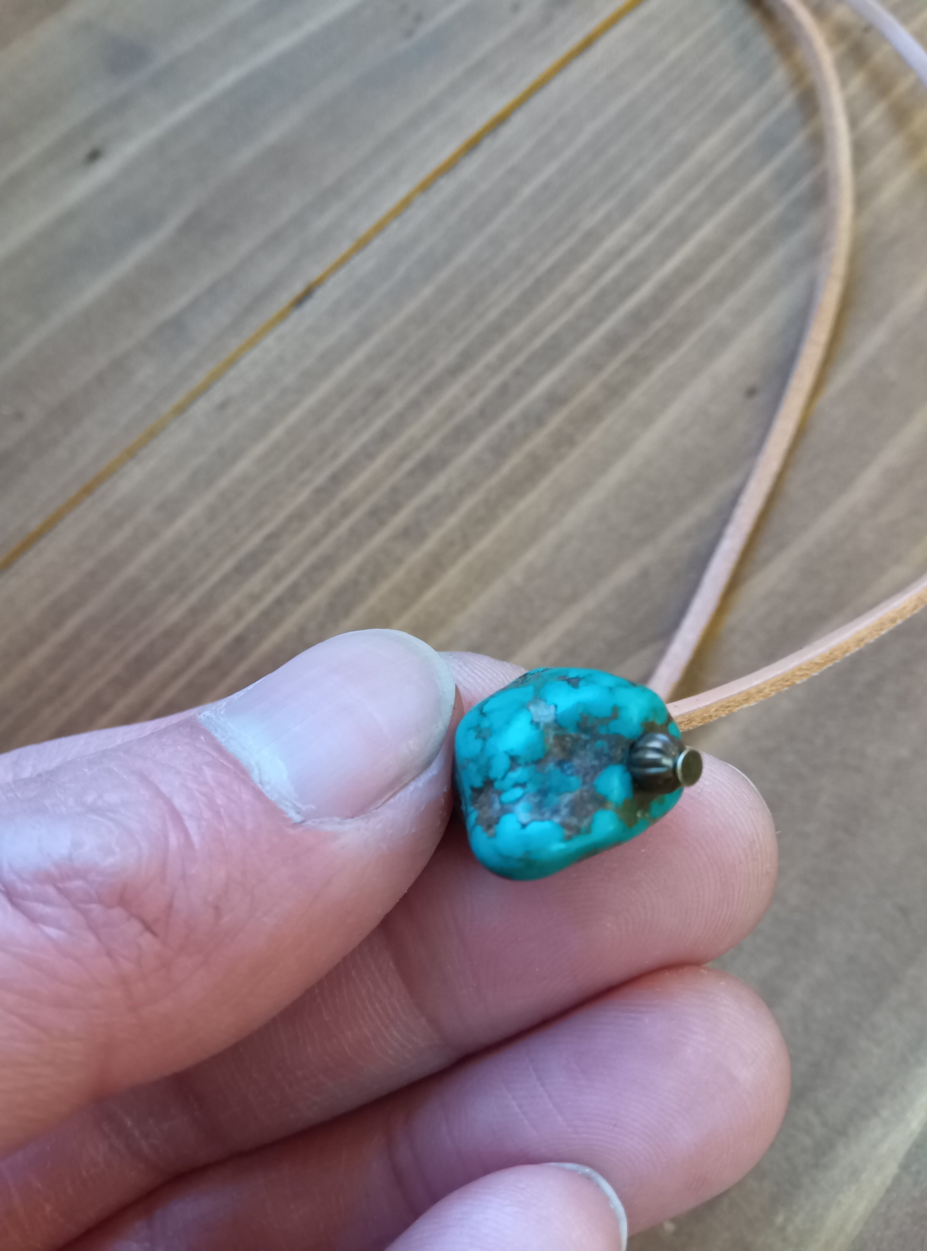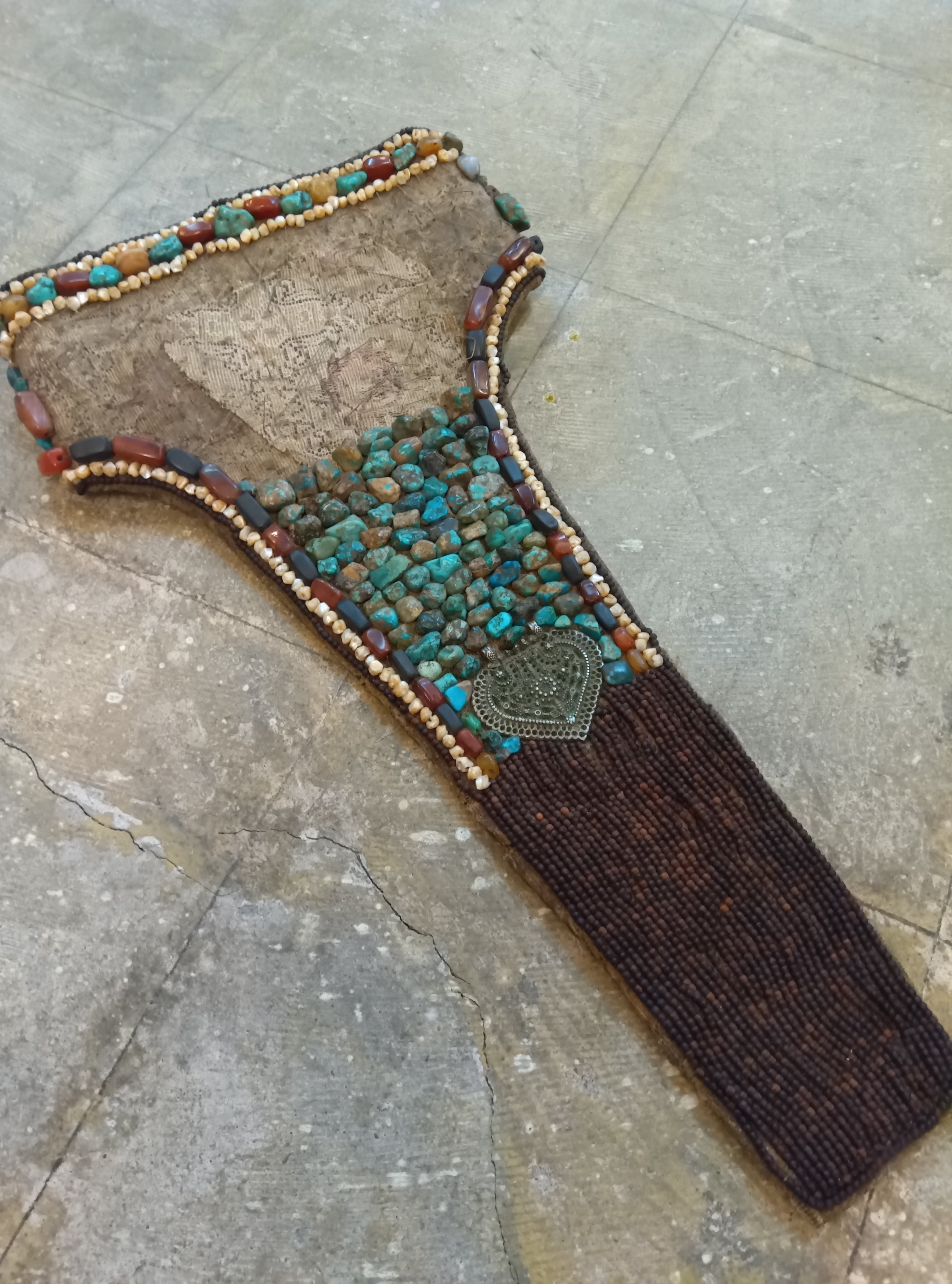 多数の石が敷き詰められた重厚なペラクの中の約5g(25ct)の贅沢なボリュームのターコイズ。祈りや暮らしに触れてきた石だけが持つ、深く艶やかな質感をお楽しみください。