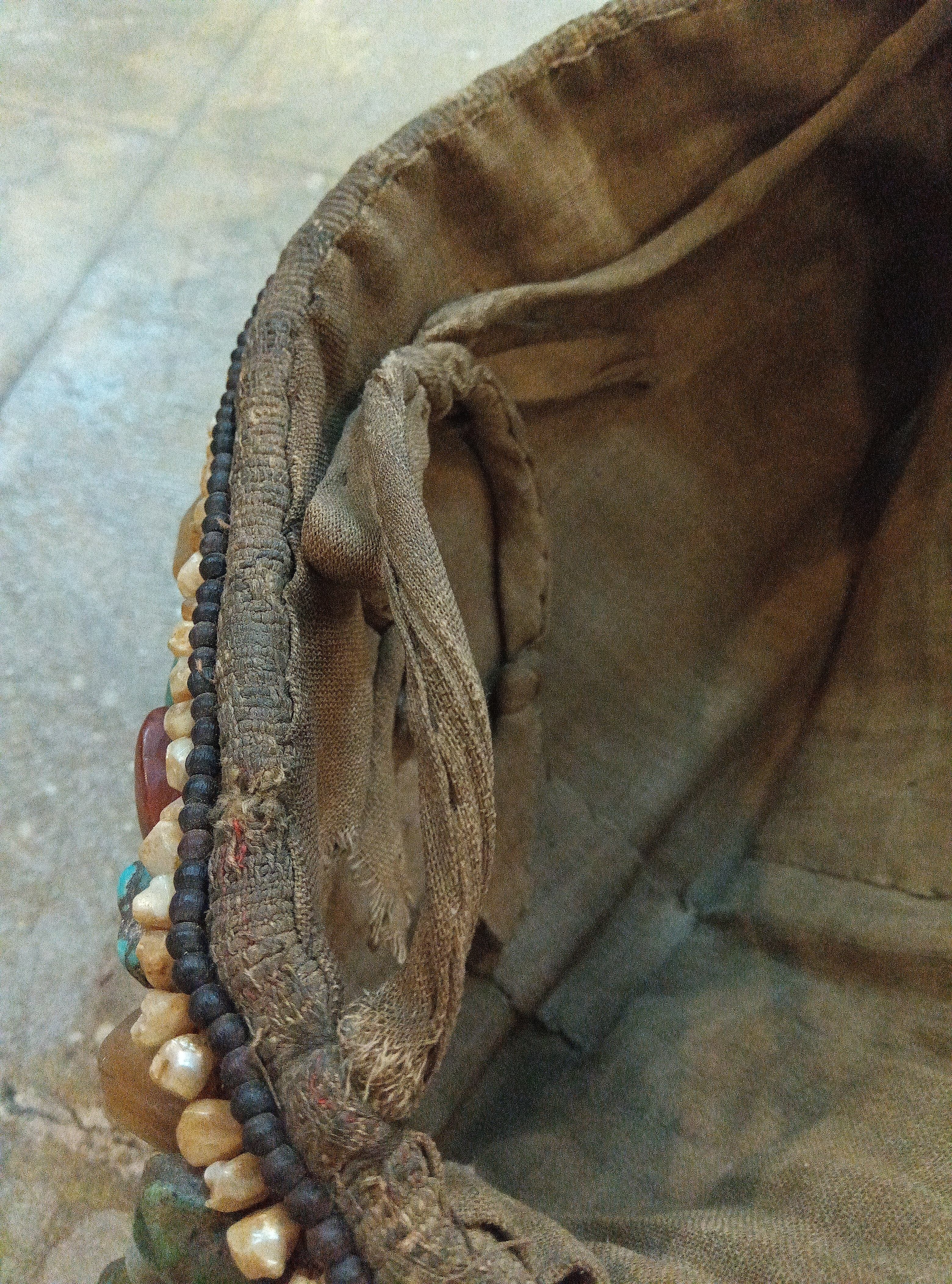 商品写真の後半には、解体前のペラクの姿を掲載しています。布地に直接縫い付けられた石や、当時の管理タグなど、ご参照ください。