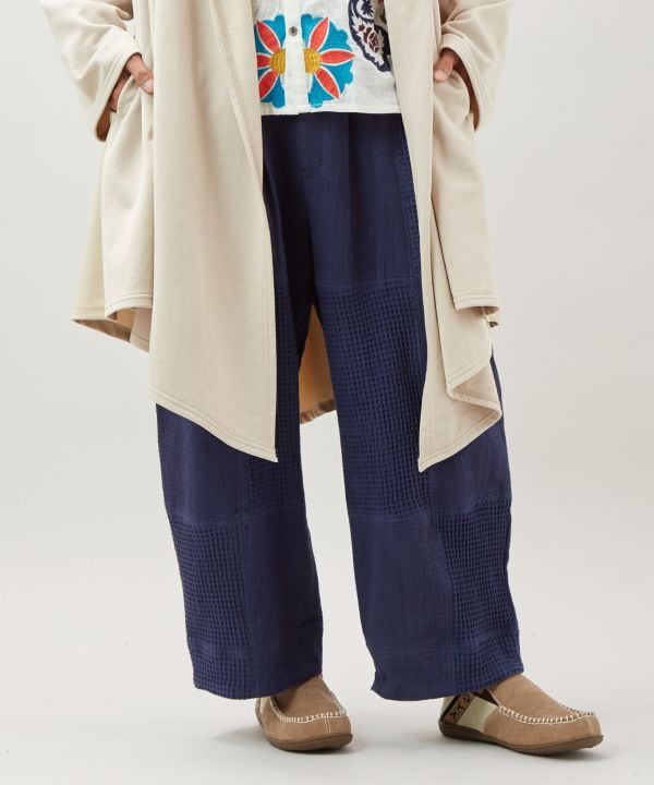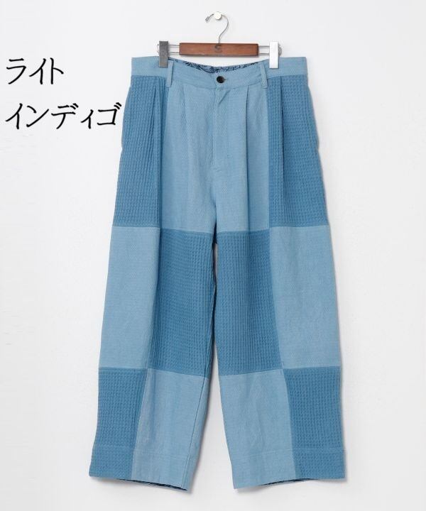 インディゴ 刺し子風 パッチワーク 隠れ柄 ワイドパンツ ラヴィリアM-PT