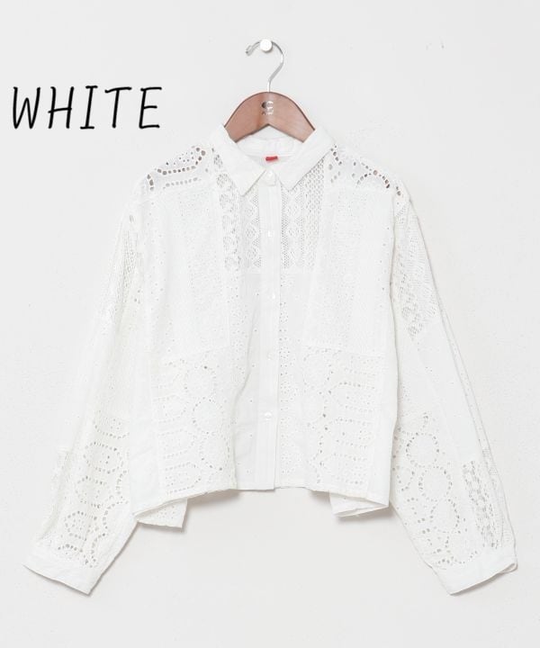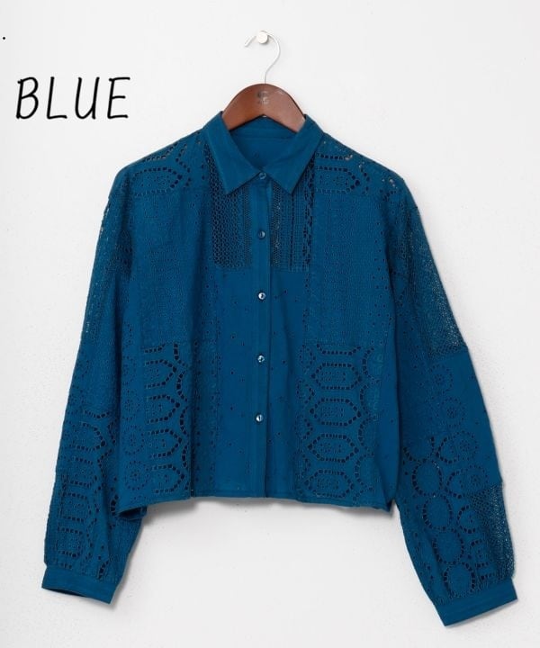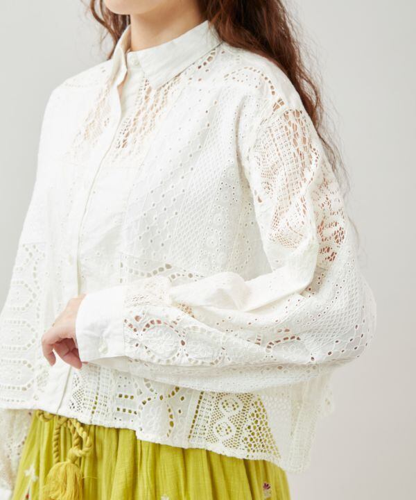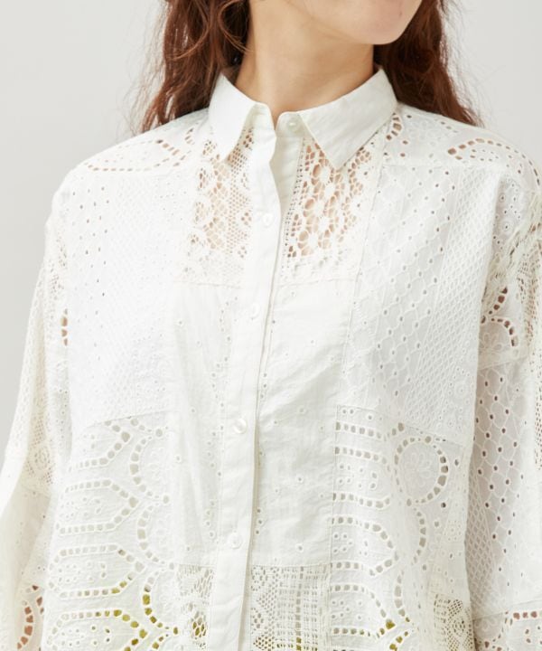3種レースパッチワーク ショート丈ドビーシャツ シフレーSH