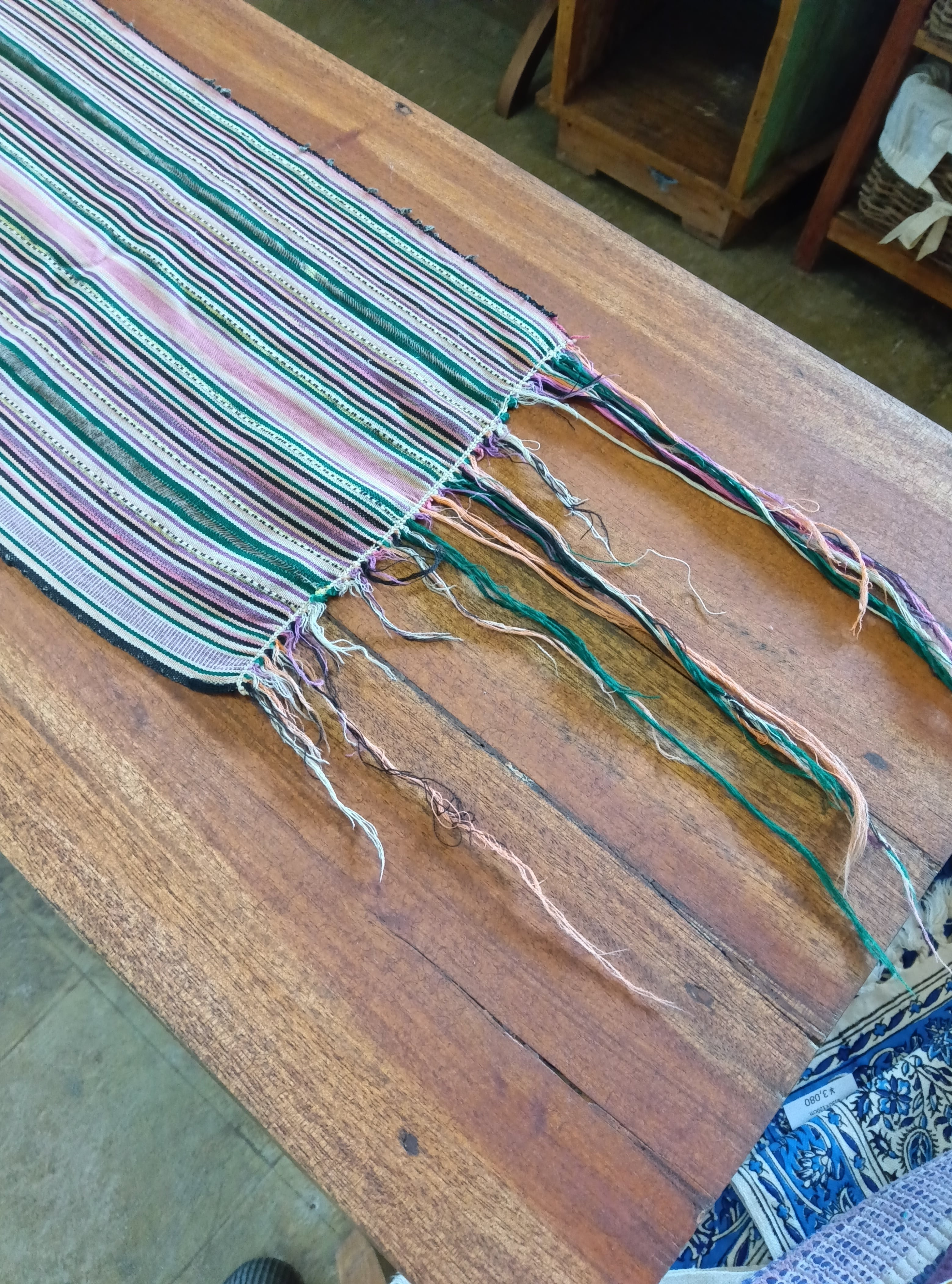 仕様:サイズ 約25×170cm(フリンジ含む、個体差があります)、素材 コットン(綿)100%、生産地 インドネシア、状態 ヴィンテージ(色褪せ、穴、ほつれあり) #イカット #絣織り #インドネシア #伝統工芸 #手織り #アジアン雑貨 #エスニックインテリア #テーブルランナー #タペストリー #壁飾り #ファブリック #和モダン #模様替え #ハンドメイド #世界の布 #インテリア雑貨 #丁寧な暮らし #エキゾチック #ヴィンテージ #アンティークファブリック #古布 #味のある暮らし