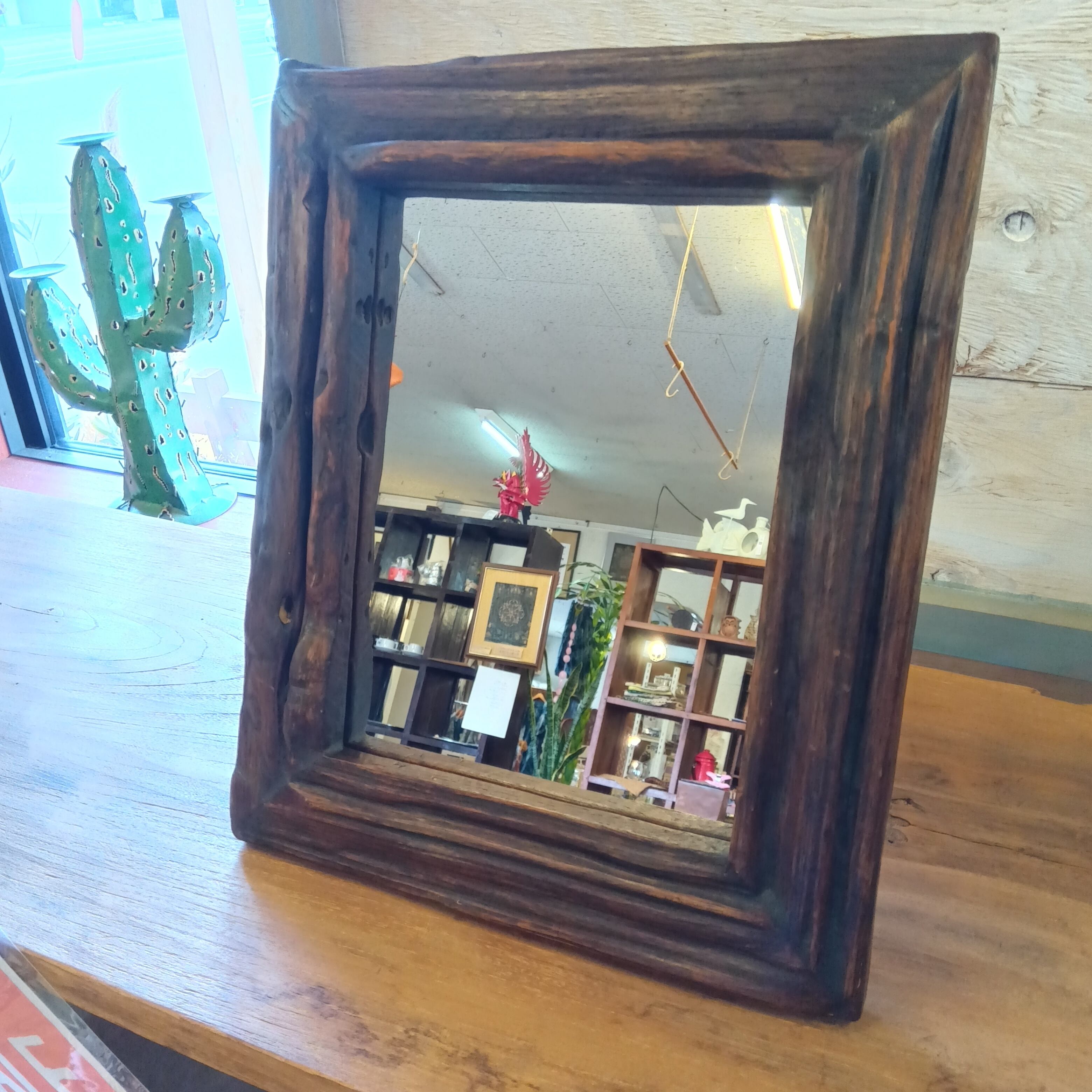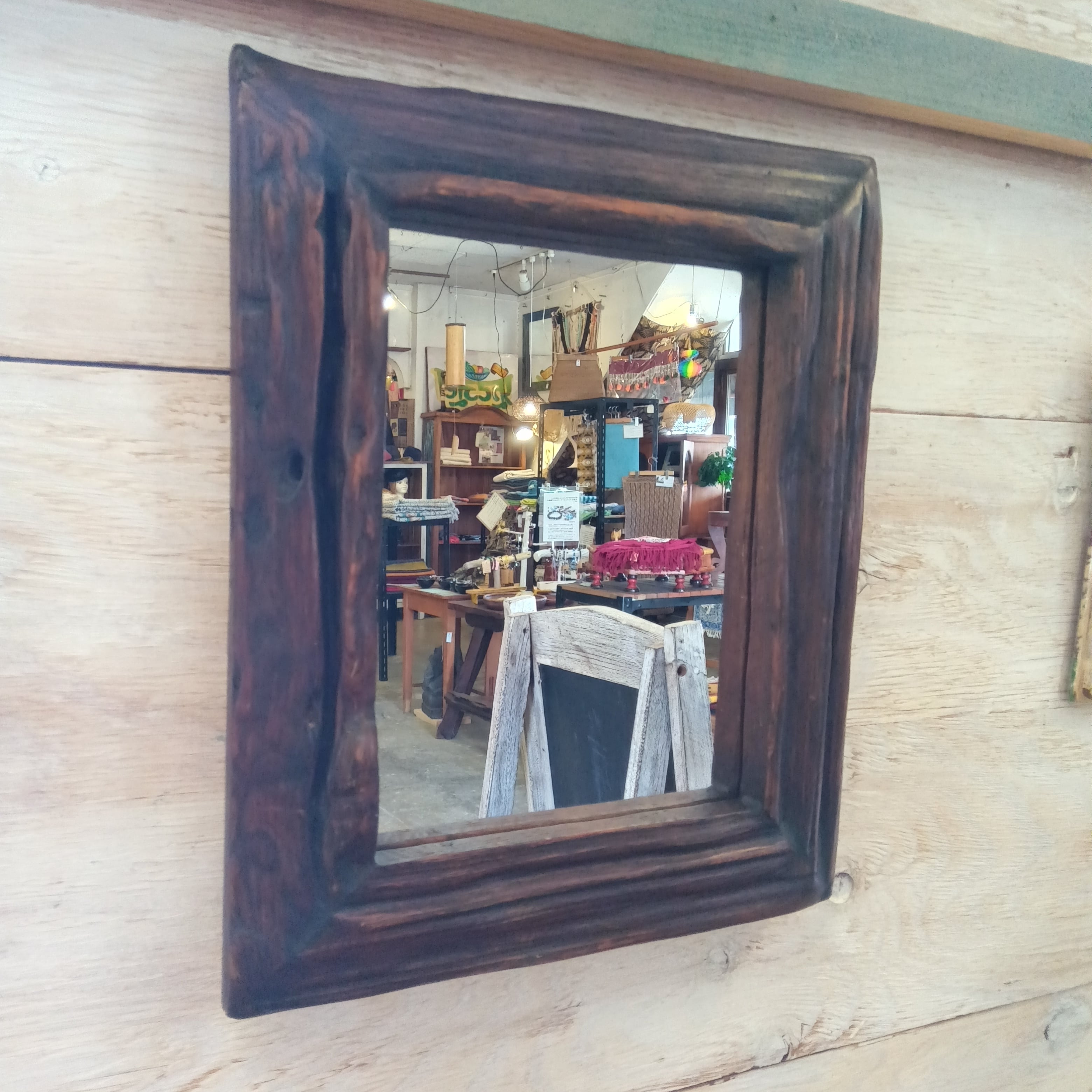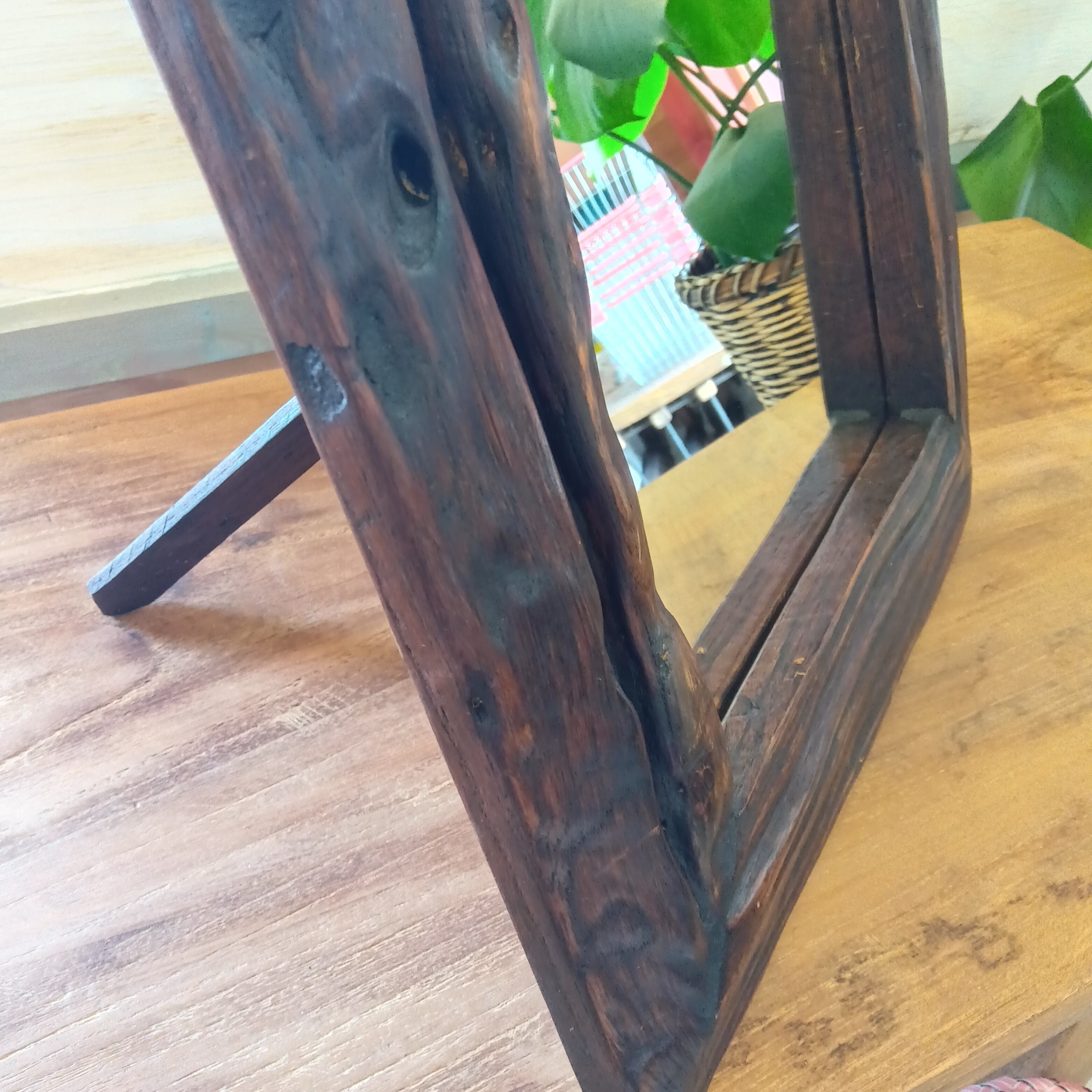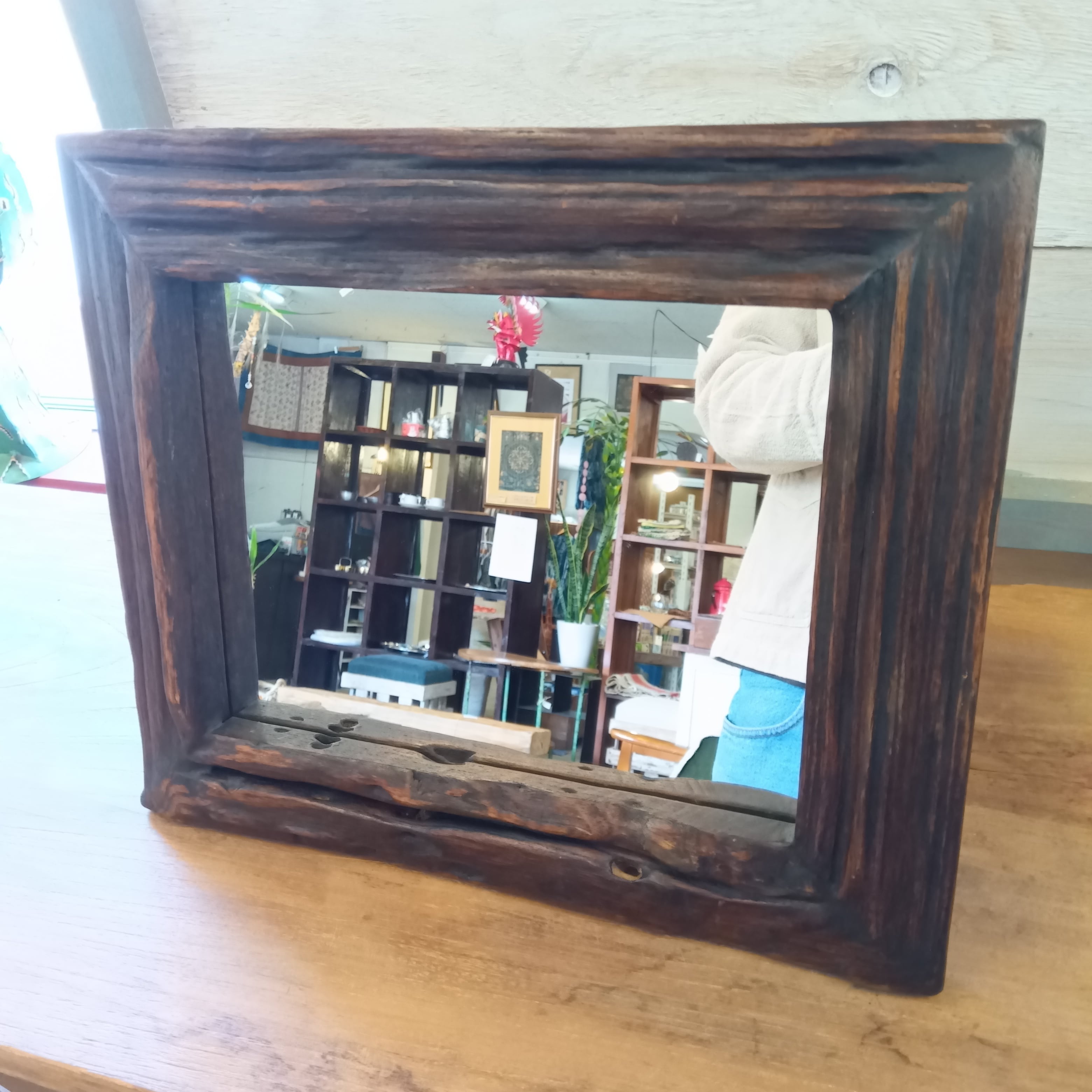 タイ直輸入・廃材チークウッドのヴィンテージミラー 33×40cm