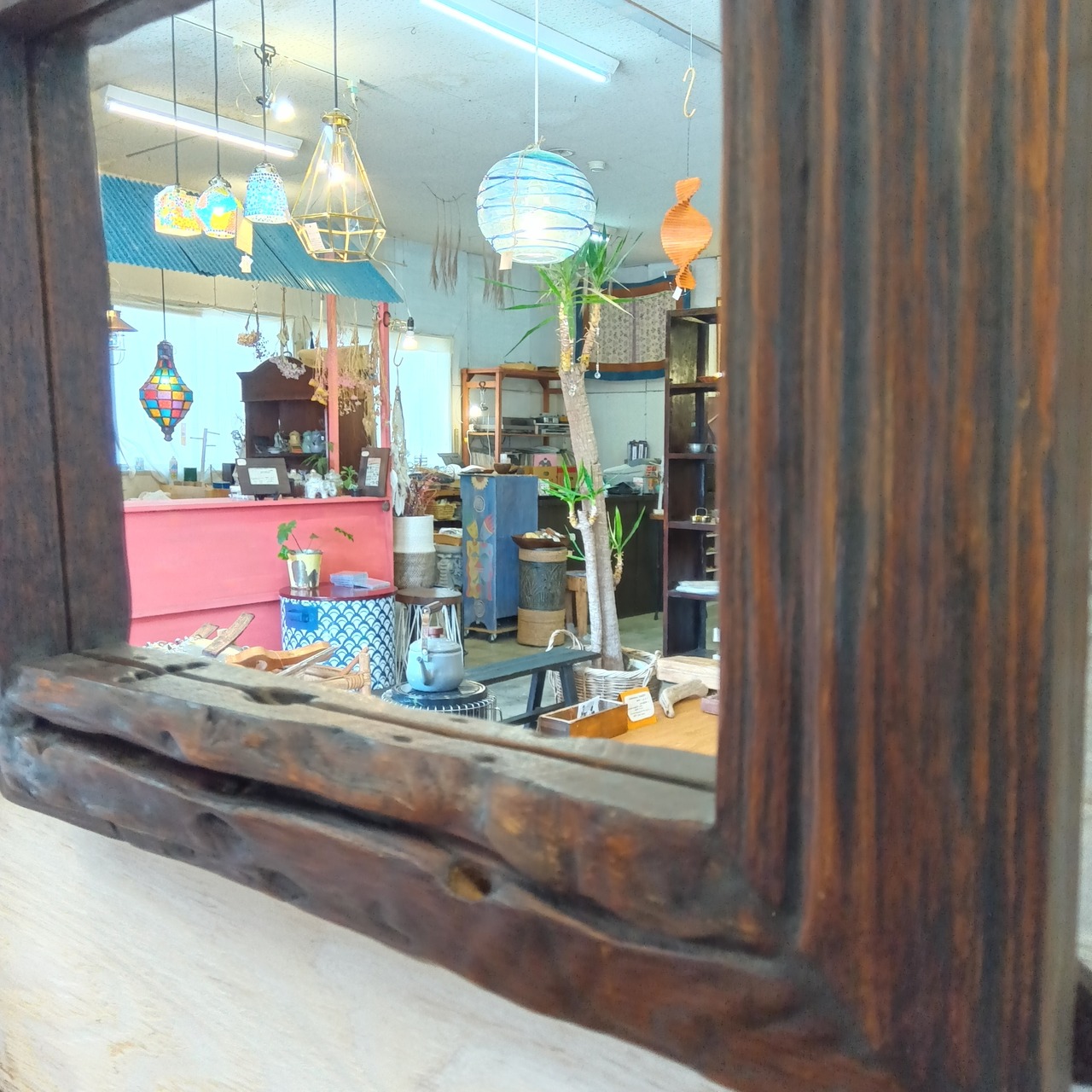 #ミラー #鏡 #壁掛けミラー #チーク材 #古材家具 #ヴィンテージインテリア #タイ雑貨 #サステナブル #アップサイクル #アジアン雑貨 #エスニックインテリア #木のぬくもり #一点もの #模様替え #玄関インテリア #古道具 #手仕事 #ナチュラルインテリア