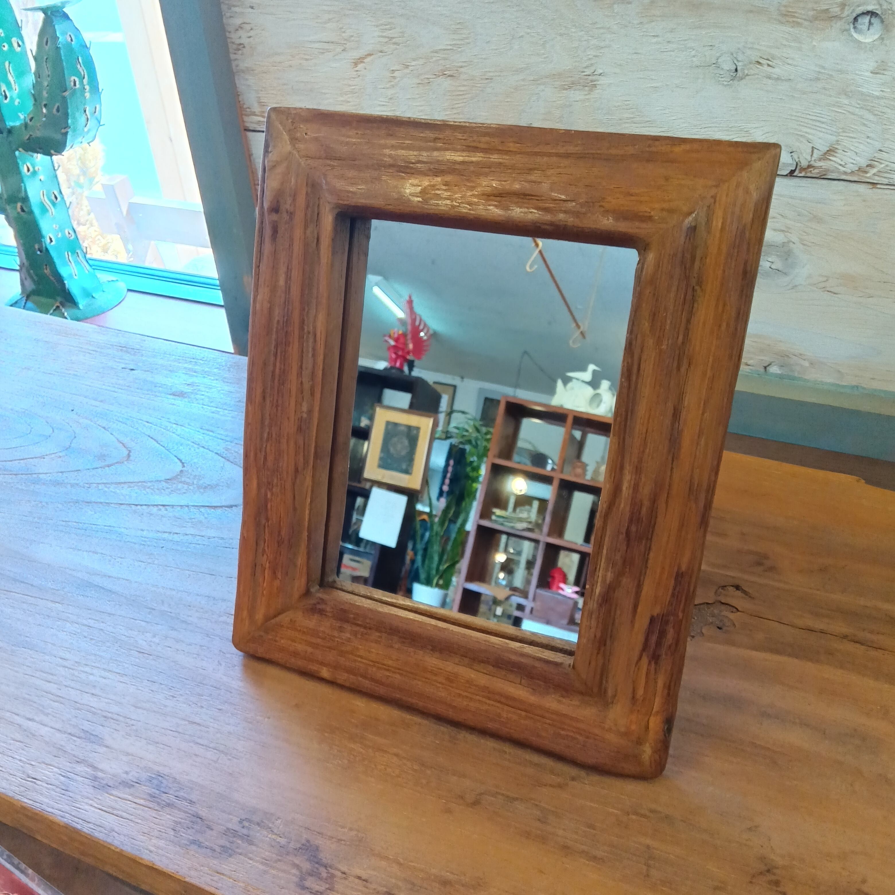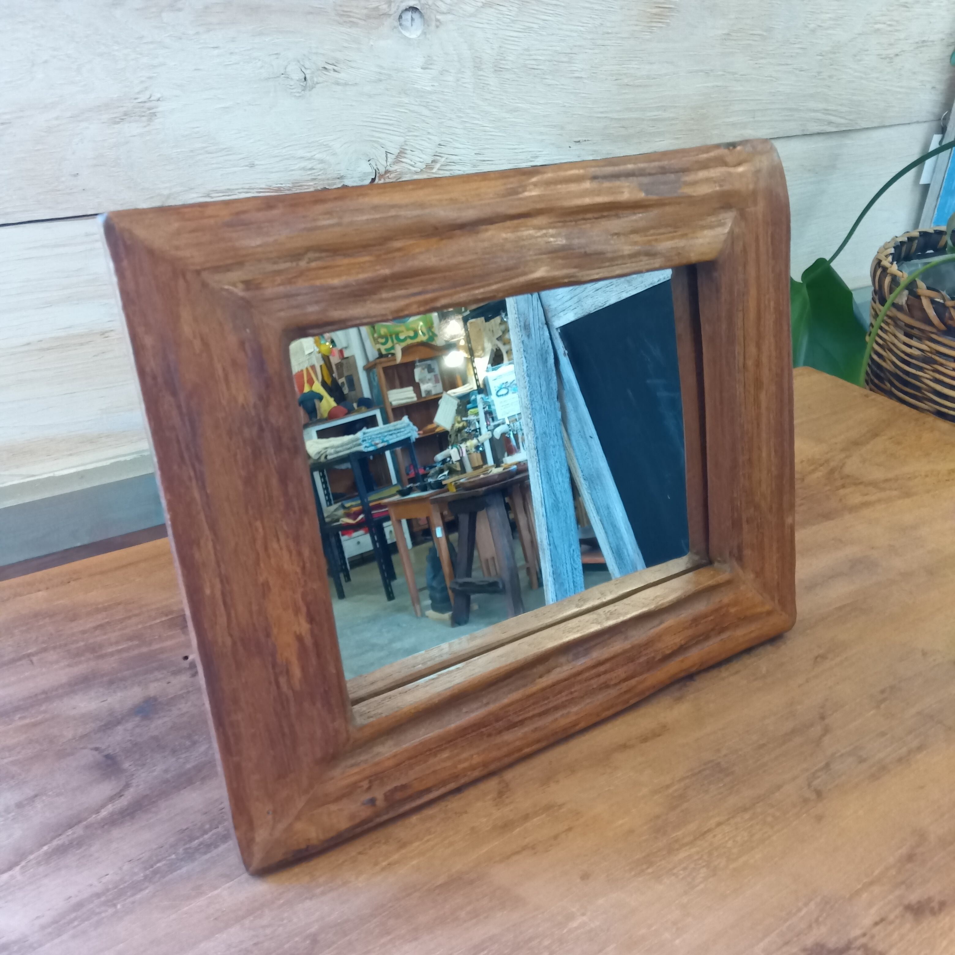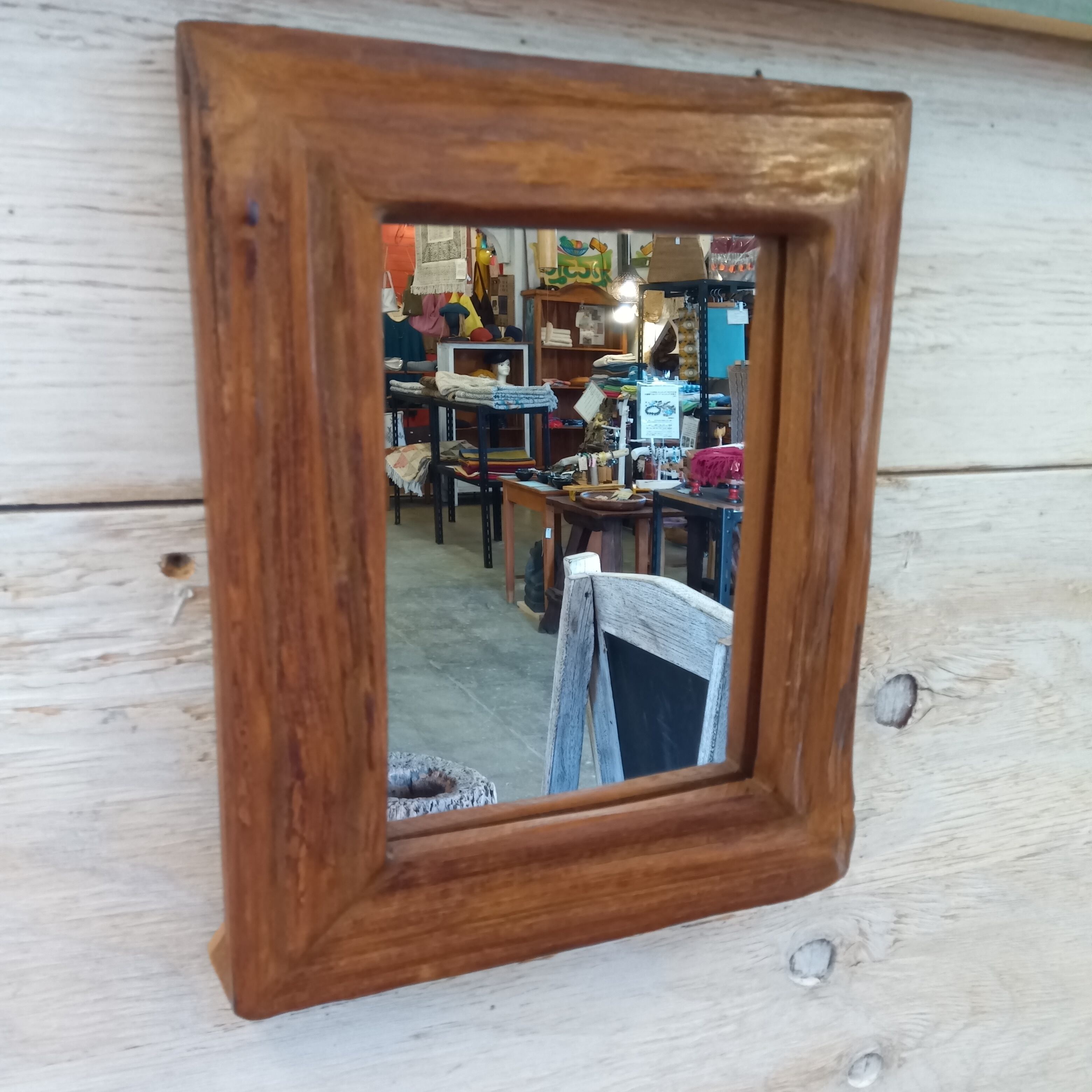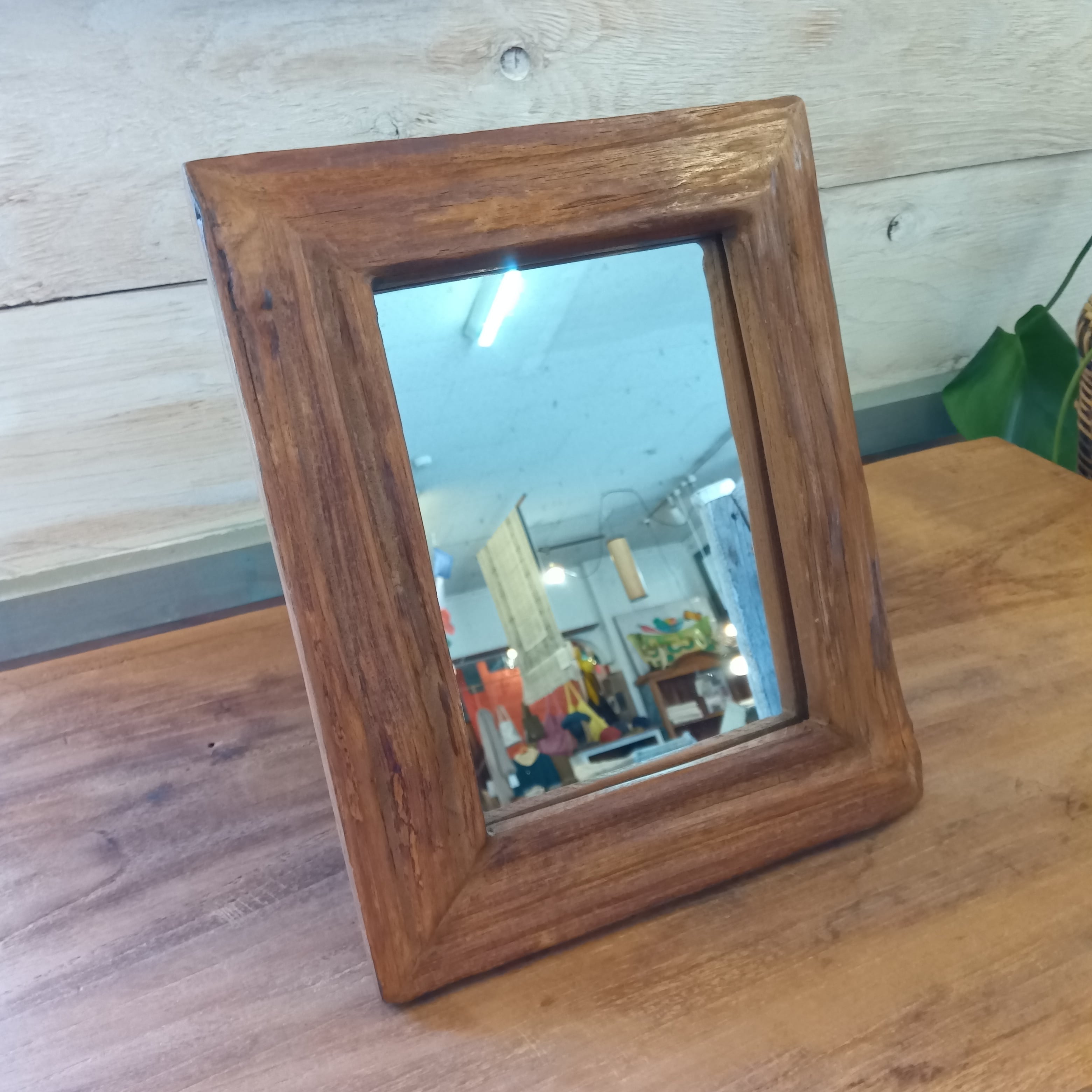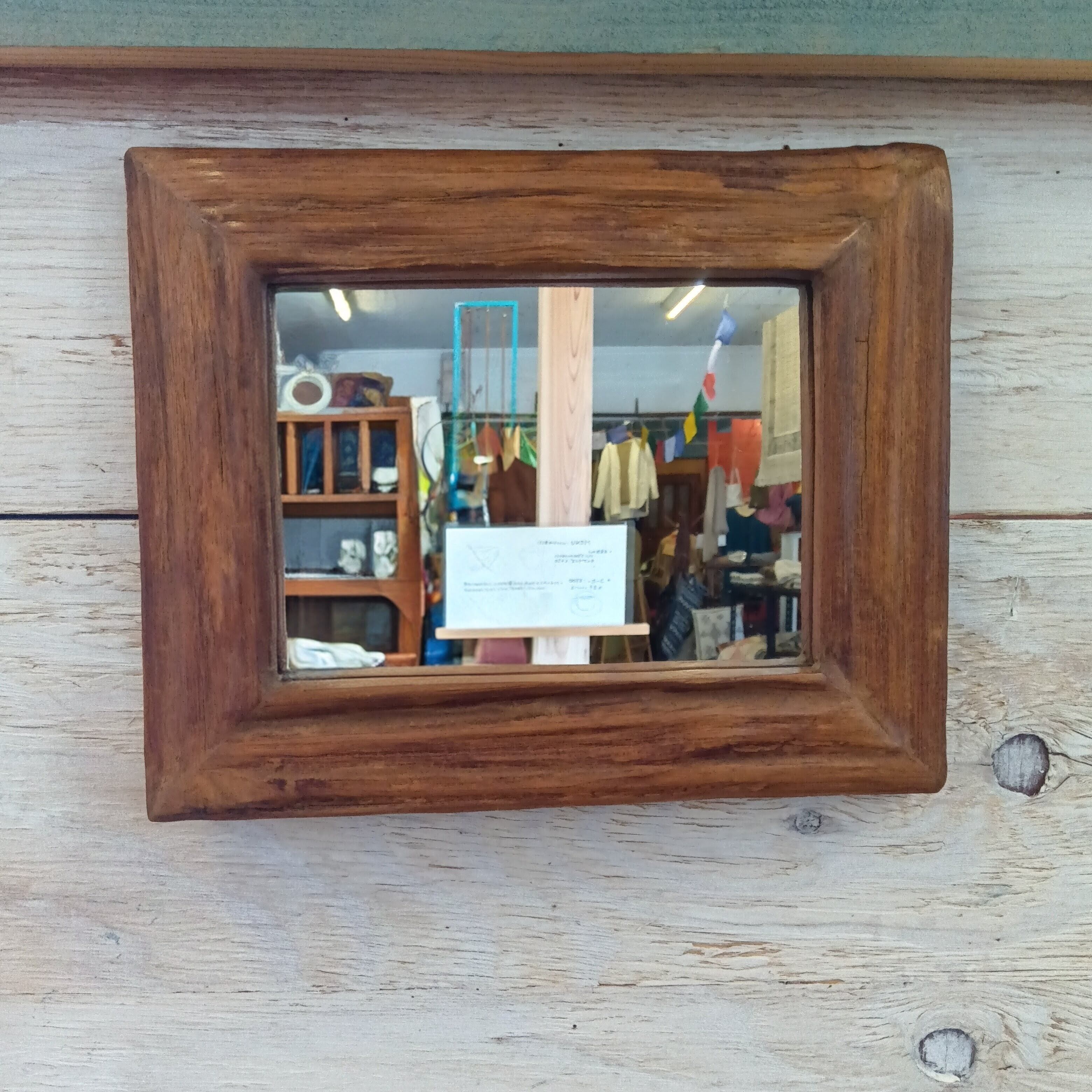タイ直輸入・廃材チークウッドのヴィンテージミラー 22.5×38cm