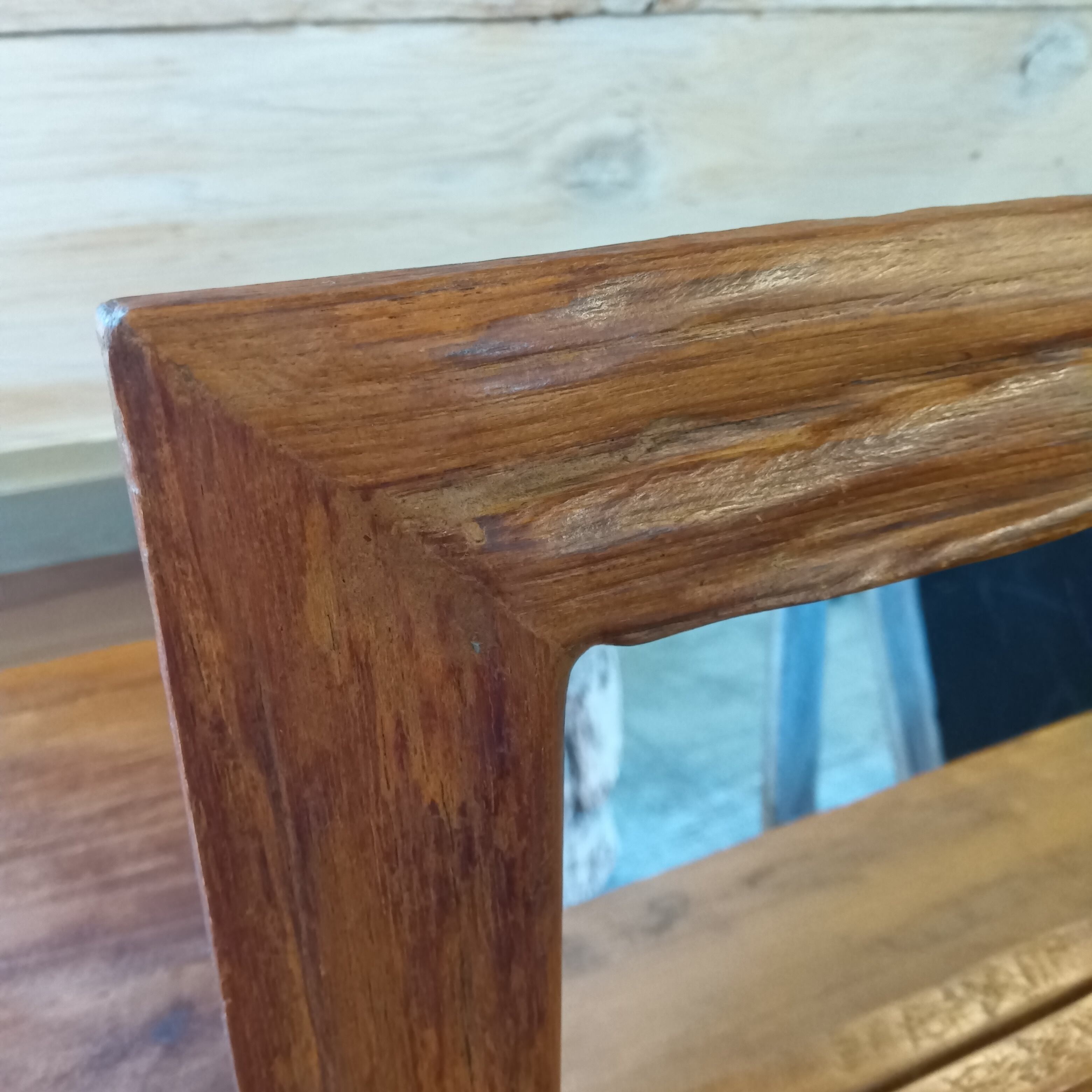 #ミラー #鏡 #壁掛けミラー #チーク材 #古材家具 #ヴィンテージインテリア #タイ雑貨 #サステナブル #アップサイクル #アジアン雑貨 #エスニックインテリア #木のぬくもり #一点もの #模様替え #玄関インテリア #古道具 #手仕事 #ナチュラルインテリア #アンティーク調