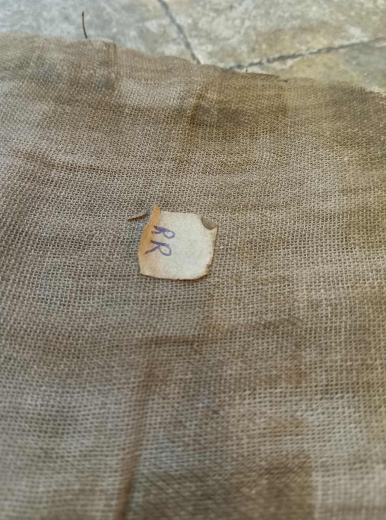 商品写真の後半には、解体前のペラクの姿を掲載しています。布地に直接縫い付けられた石や、当時の管理タグなど、ご参照ください。
