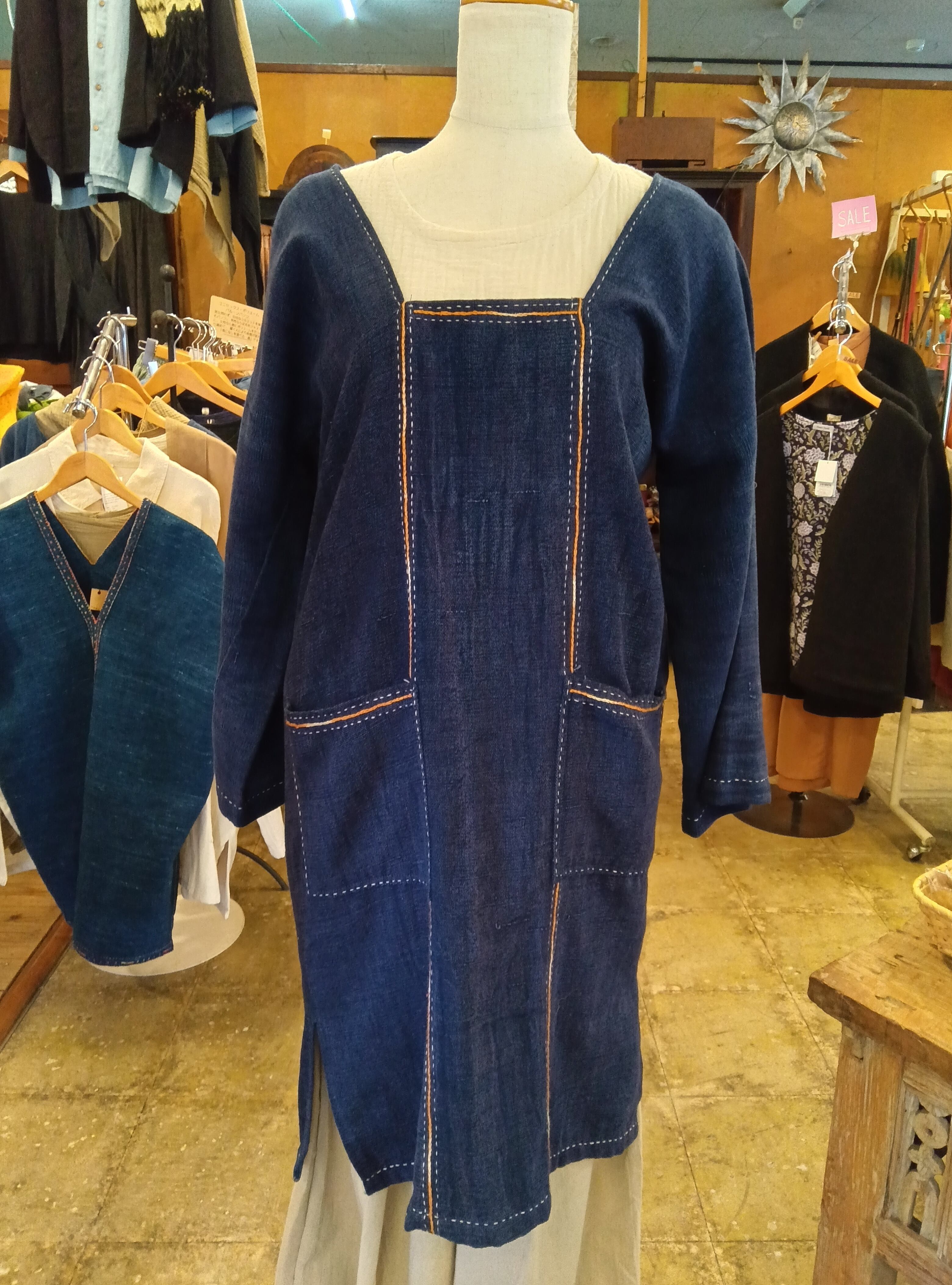 タイより届いた、深みのある藍色が美しい天然インディゴ染めのコットンワンピースです。