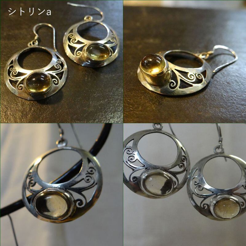 シルバー ピアス 天然石 ネパール アラベスク 透かし彫り ハンドメイド アクセサリー レトロ 大人 エスニック ムーンストーン シトリン オニキス 新生活