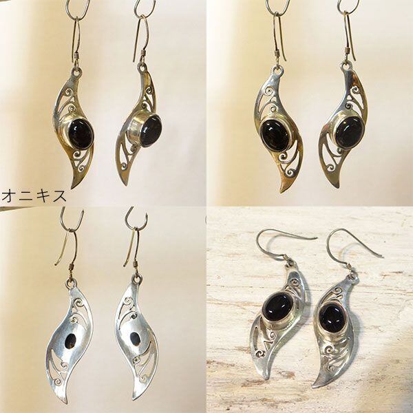 シルバー ピアス 天然石 ネパール アラベスク 透かし彫り ハンドメイド アクセサリー レトロ 大人 エスニック シトリン オニキス スモーキークォーツ 新生活