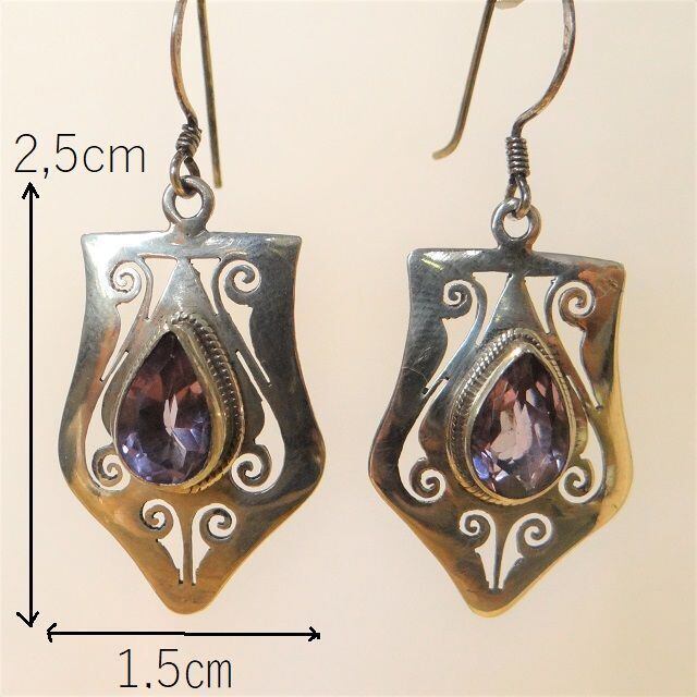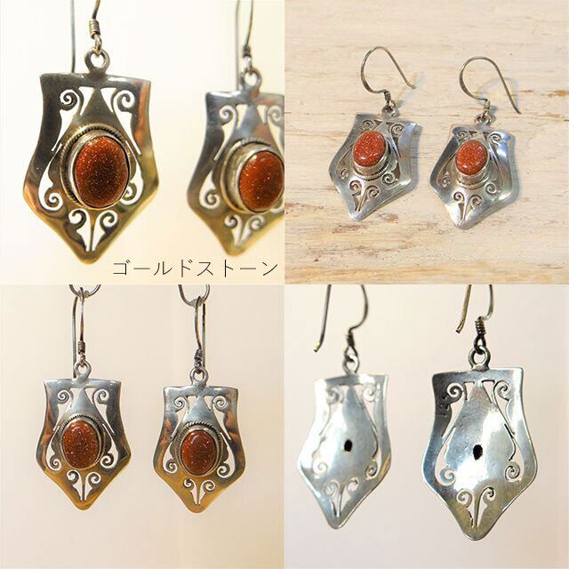 シルバー ピアス 天然石 ネパール アラベスク 透かし彫り ハンドメイド アクセサリー レトロ 大人 エスニック アメジスト ゴールドストーン 新生活