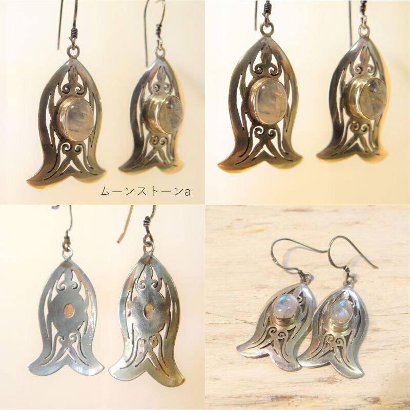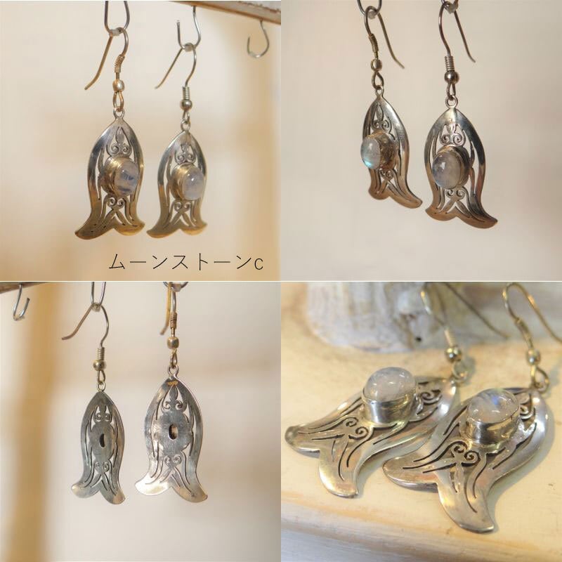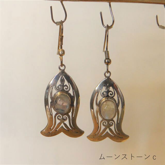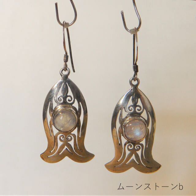 シルバー 925 ピアス 天然石 ネパール アラベスク 透かし彫り ハンドメイド アクセサリー レトロ 大人 エスニック ムーンストーン 新生活