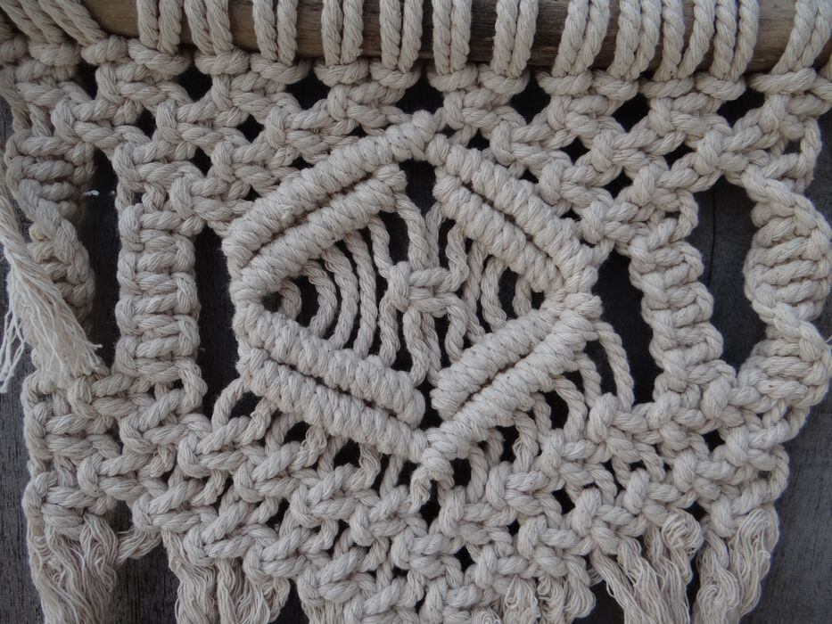 風合い豊かな生成りのコットンで編まれたハンドメイドのマクラメ編み。