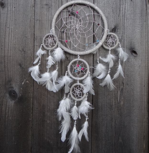 悪夢は網目でさえぎられ、良い夢だけが入るいう魔除けのお守り、ドリームキャッチャー。