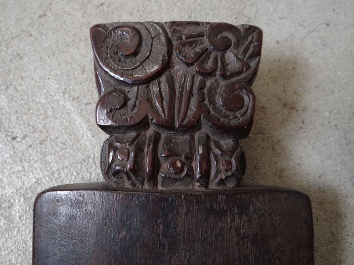 硬質で重量感のある木材で出来ており、持ち手には彫刻が施されています。