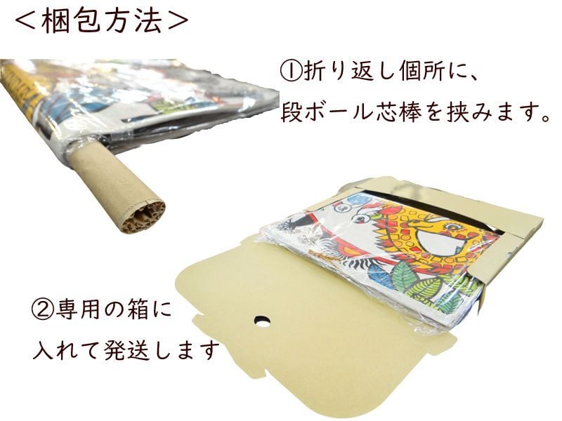 【配送サイズ、料金の関係上、芯棒を挟み二つ折りの状態で発送させていただきます】